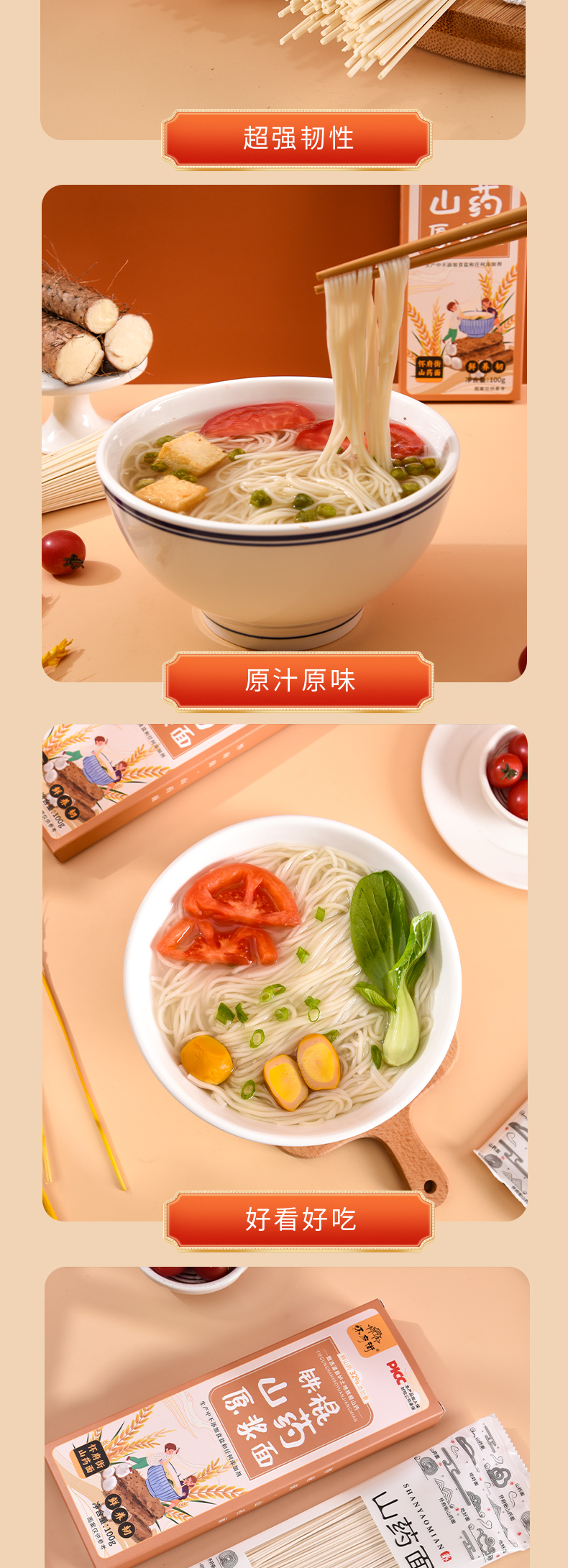 怀府街 | 铁棍山药原浆面100g*8盒 入口爽滑面质劲道Q弹 独立包装(喜悦分享)