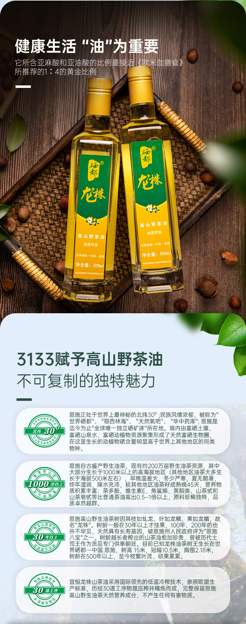 茂森缘 湖北硒都恩施八宝之硒都龙株山茶油 500ml/盒