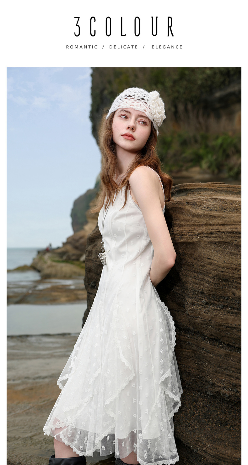 【三彩仙女裙】独醒2025夏季新款小雏菊蕾丝吊带裙初恋裙仙女风连衣裙F