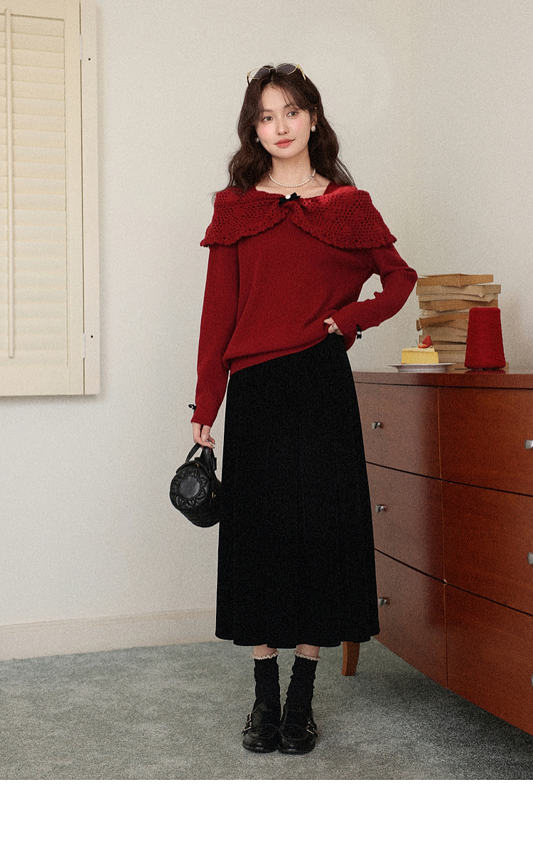 鹿向南【1220/20:00新品前1小时7折限量100件】复古红毛衣