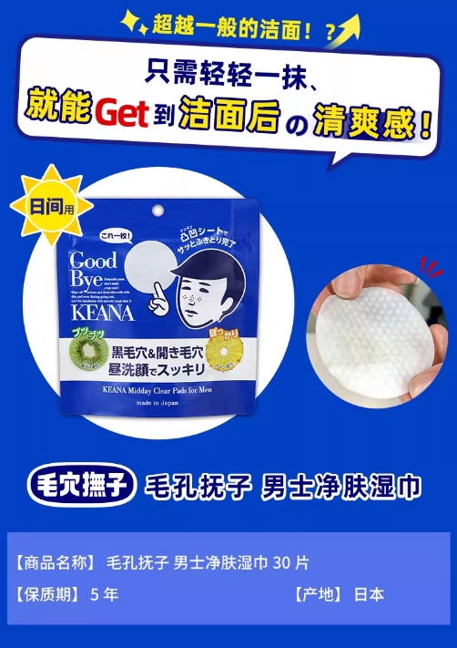 ★毛孔抚子 男士净肤湿巾 30片装l★
