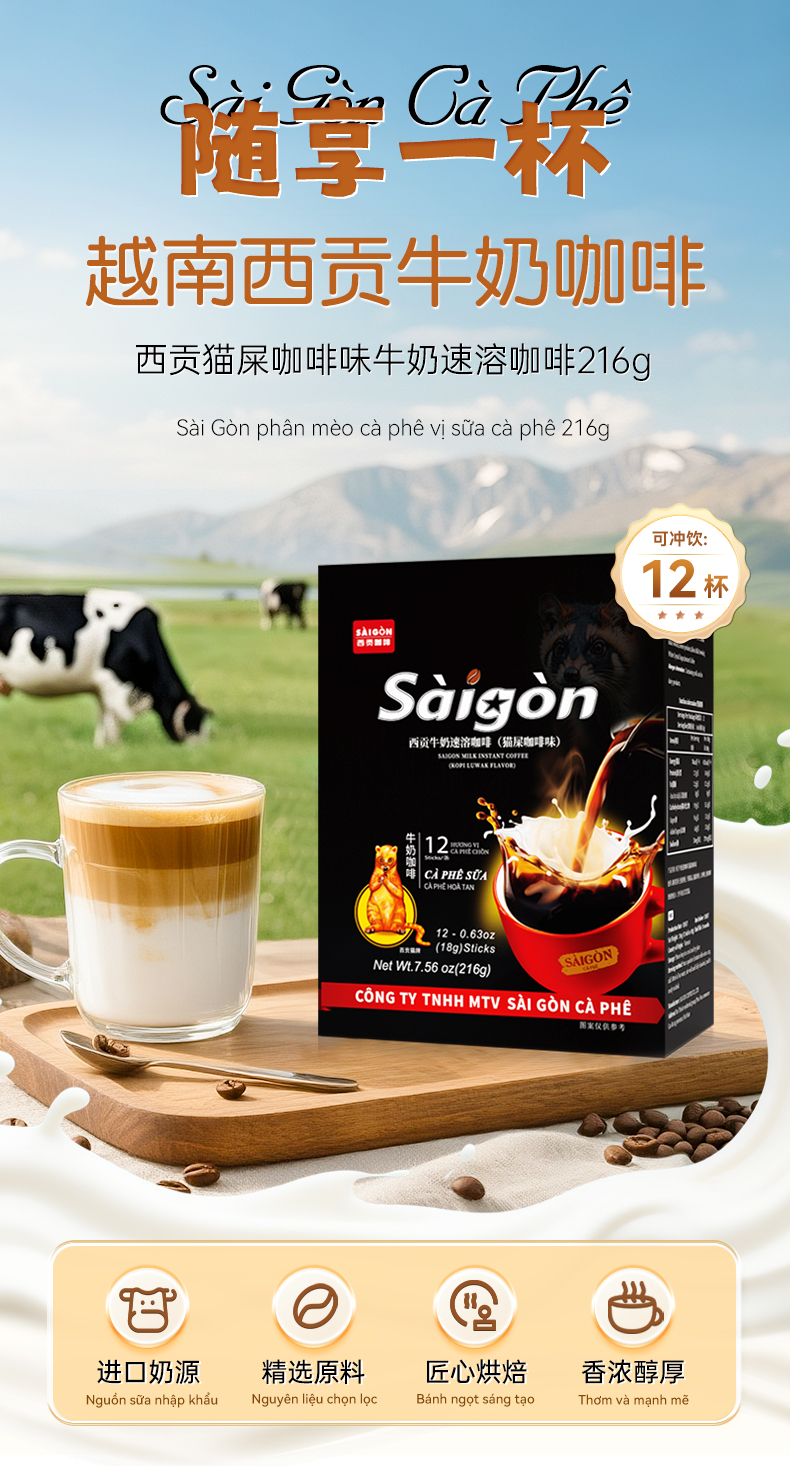 猫屎咖啡味牛奶速溶咖啡216g(18g*12条)