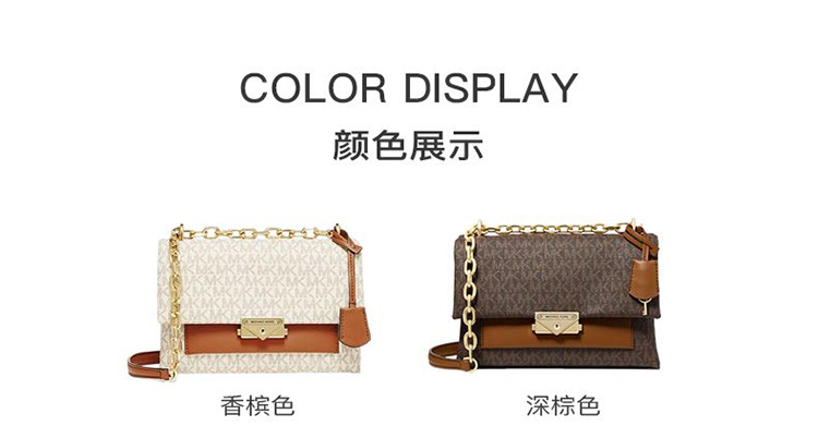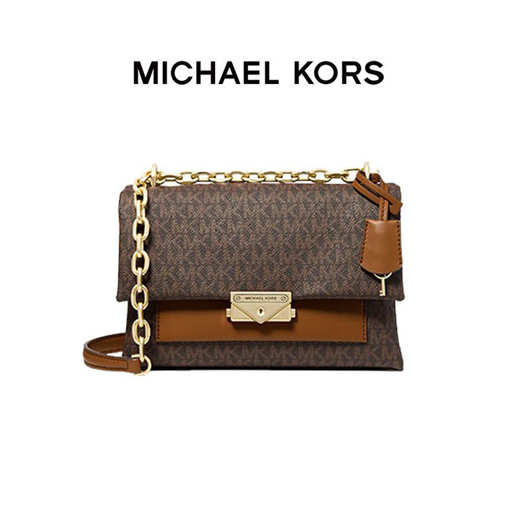 【品牌】MK Cece 中号金属老花单肩斜挎链条信封女包深棕/橡果棕