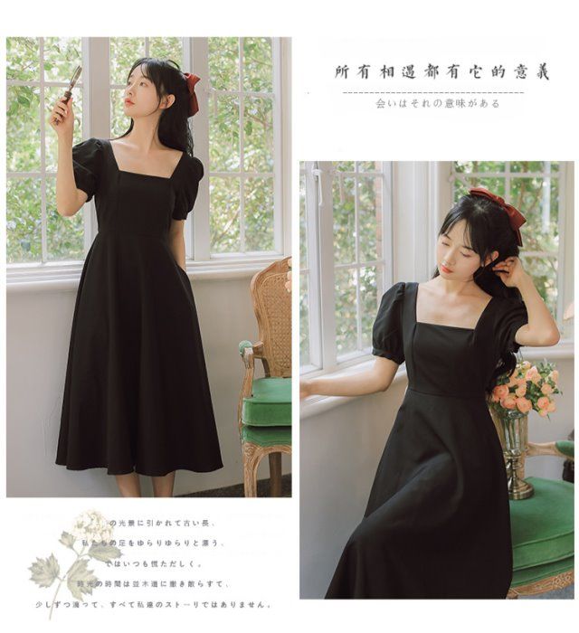 【超显气质!法式小众连衣裙】洋气显瘦,优雅宫廷泡泡袖,收腰设计,轻松打造小蛮腰,时尚修身仙女吊带,优雅复古赫本小黑裙子
