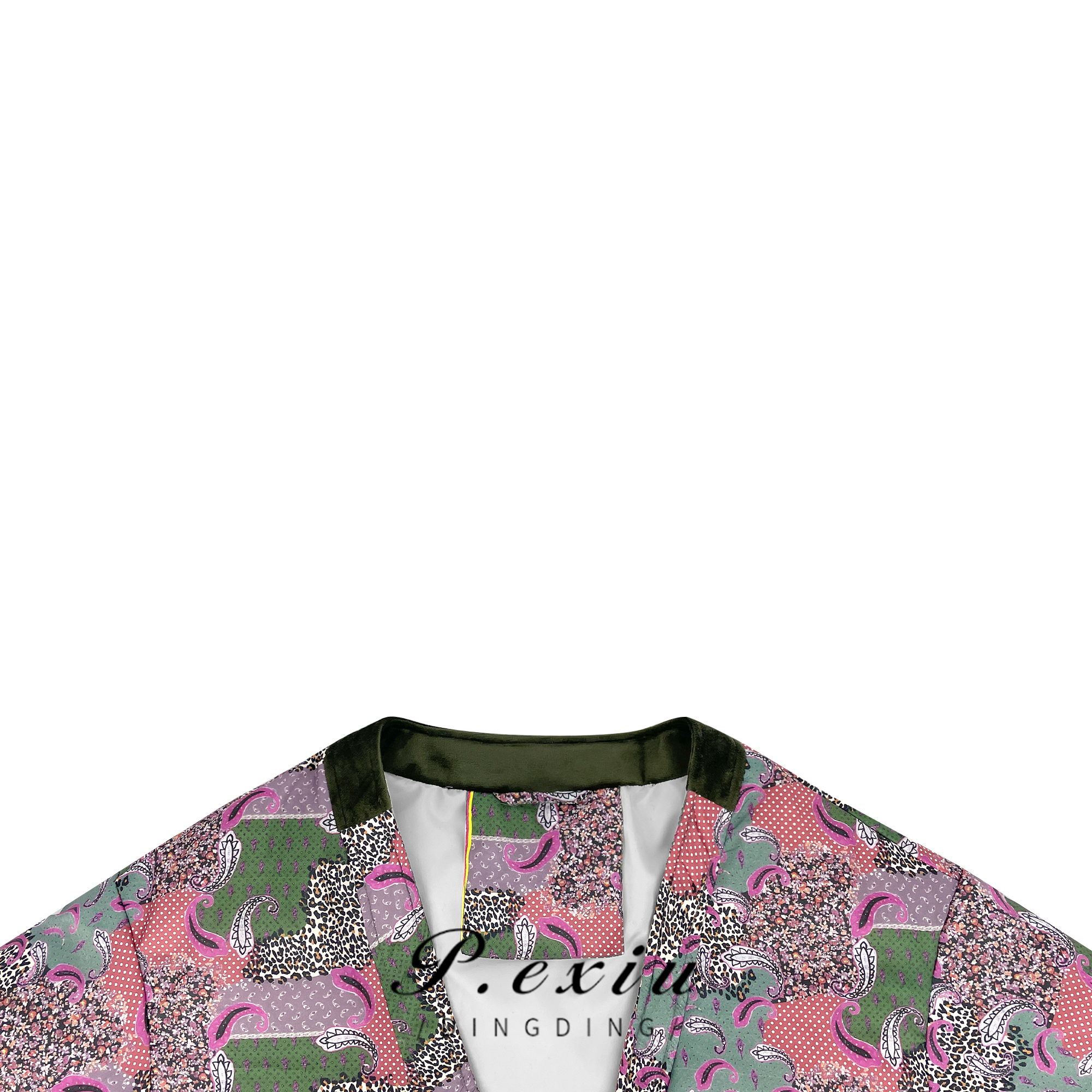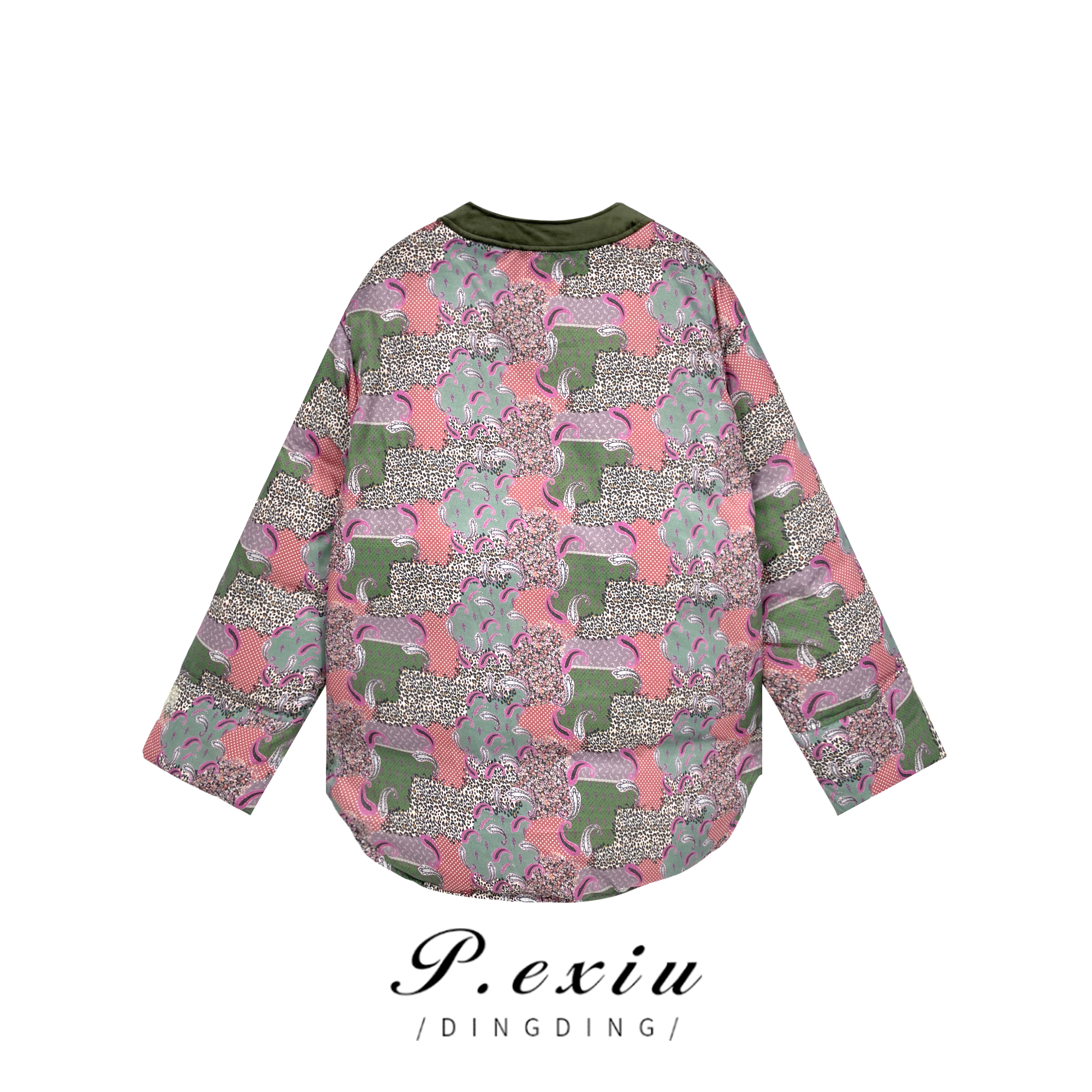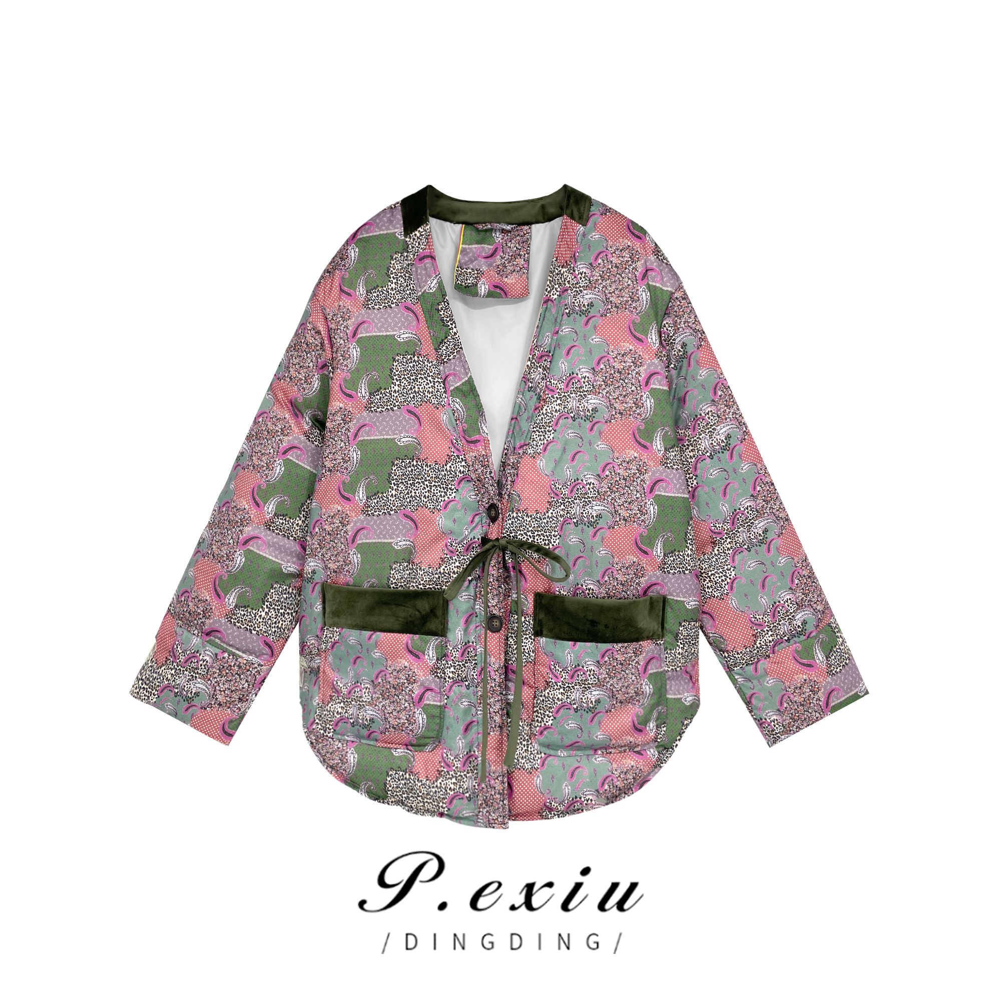 潘依绣丁丁宠粉PanYiXiu/潘依绣【花罗】新中式国风V领撞色外套 MJ917