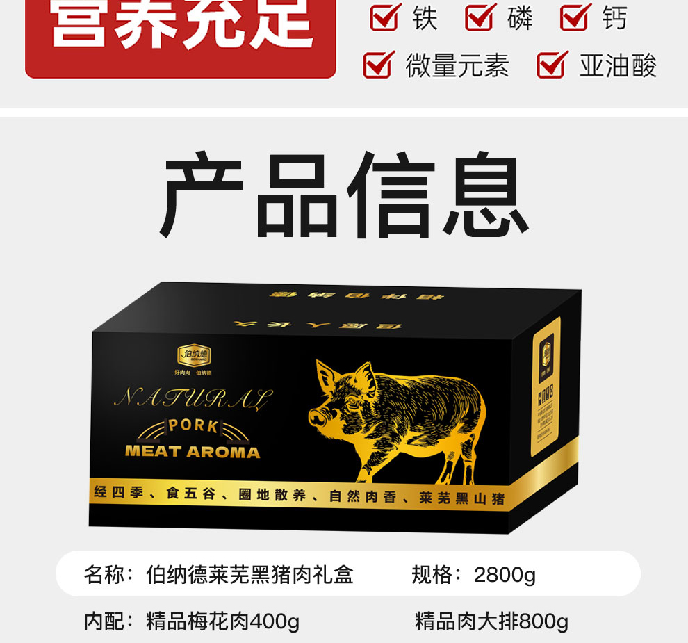 伯纳德精品莱芜黑山猪肉礼盒2800g
