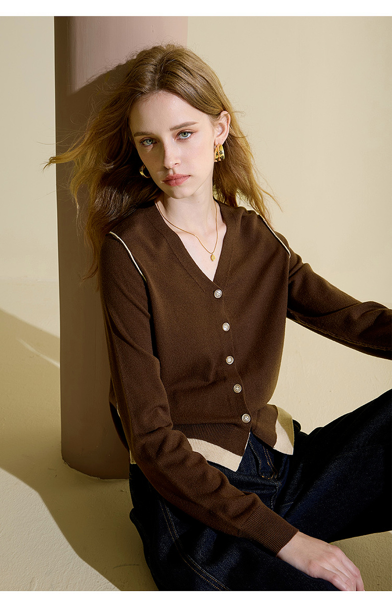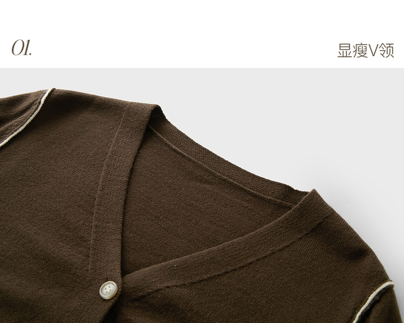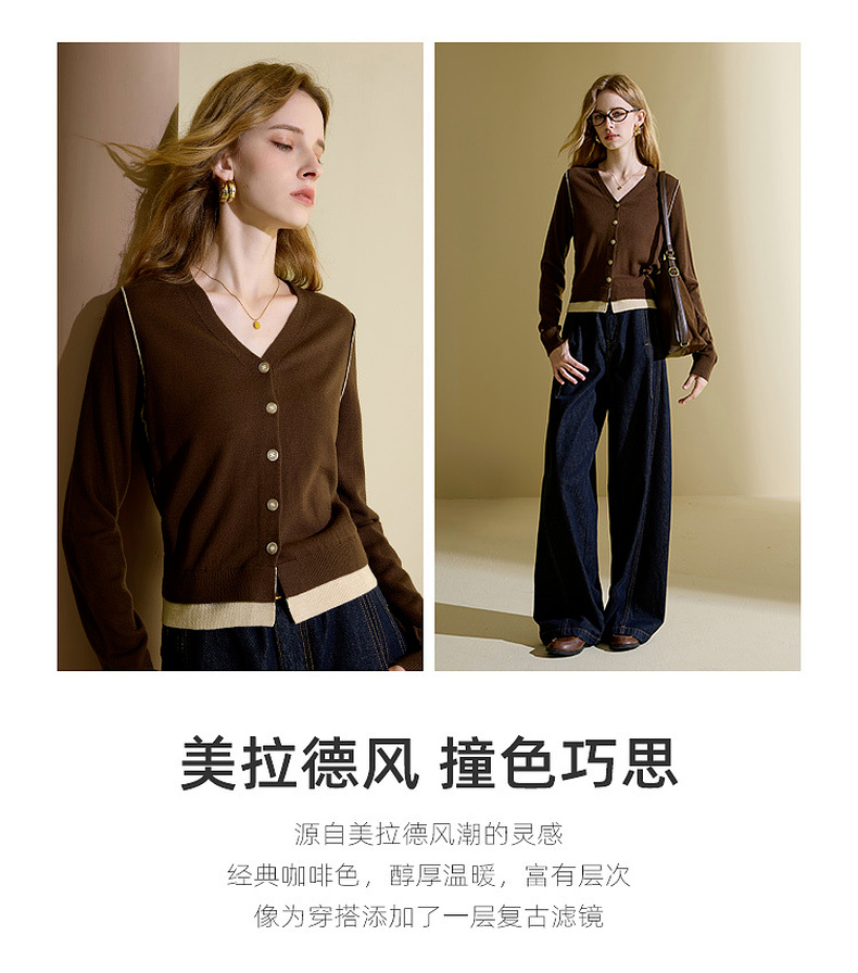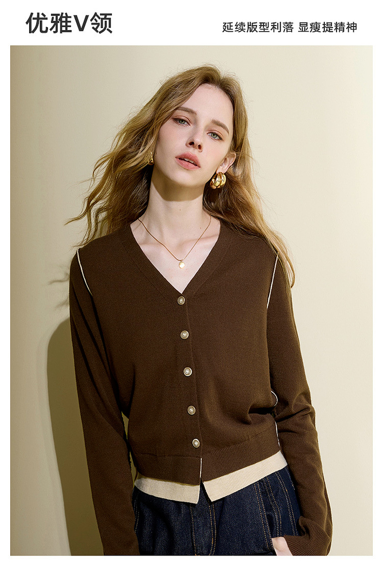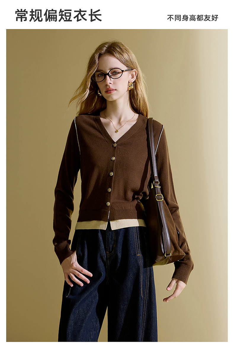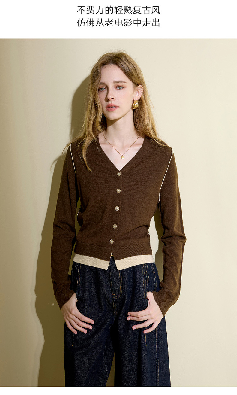 三彩2025秋季新款长袖针织衫V领开衫外套复古百搭小个子M