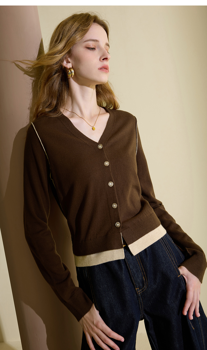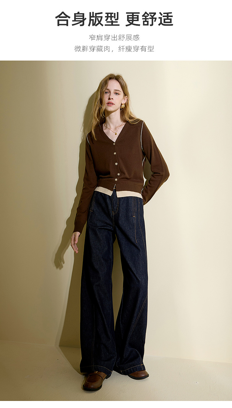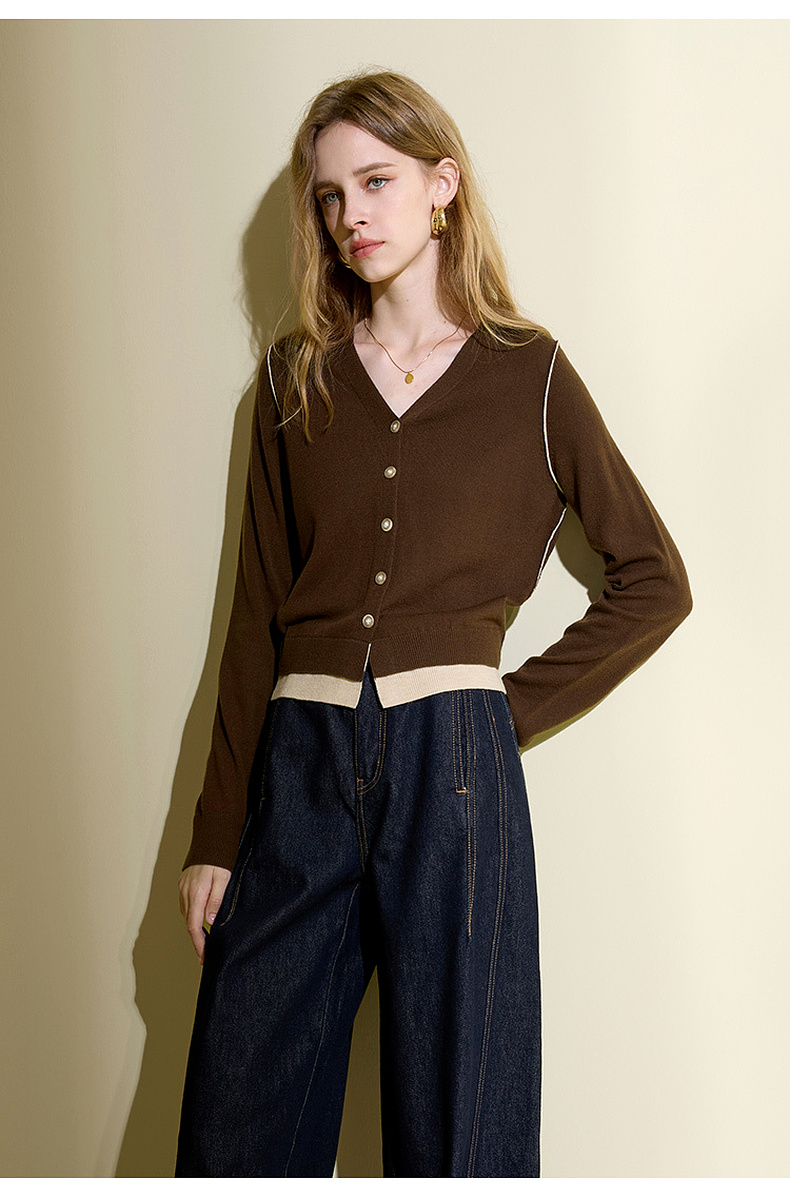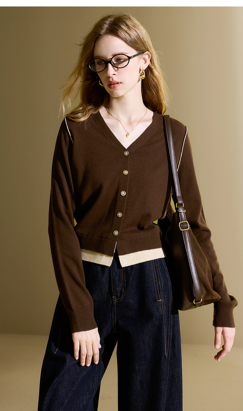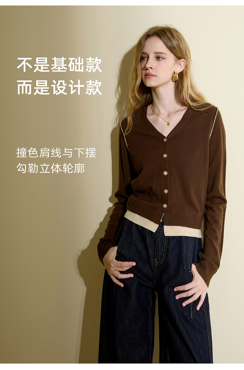 三彩2025秋季新款长袖针织衫V领开衫外套复古百搭小个子M