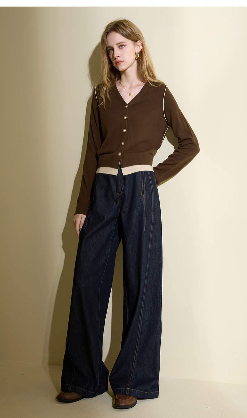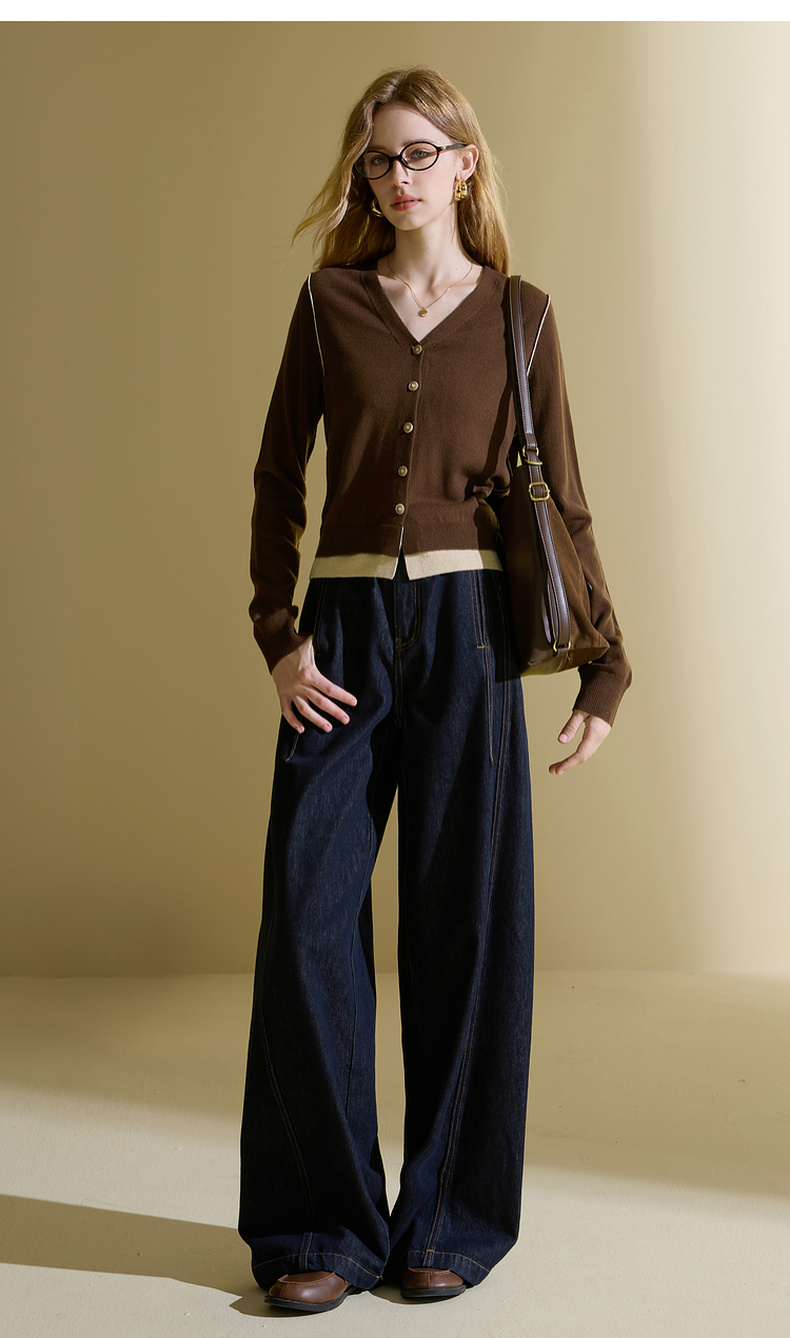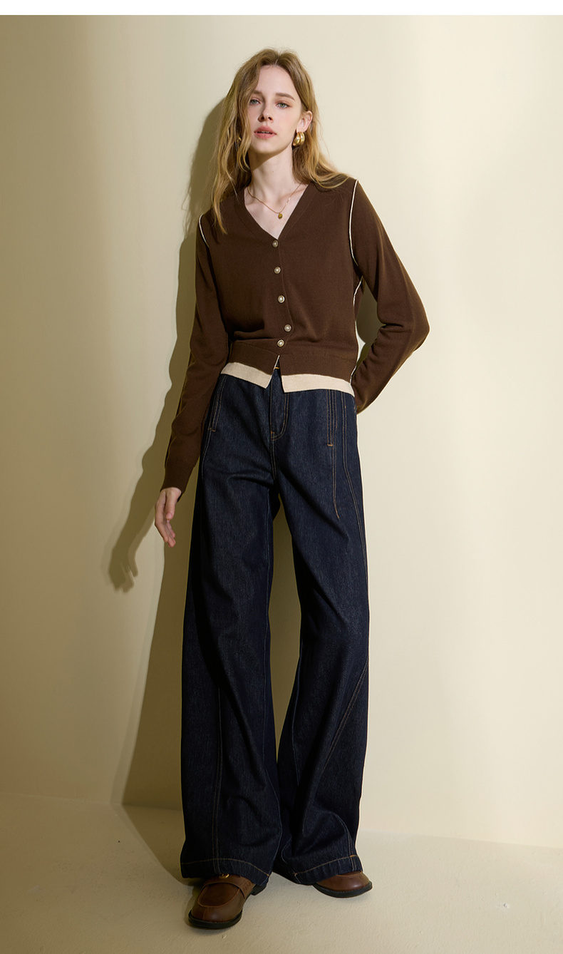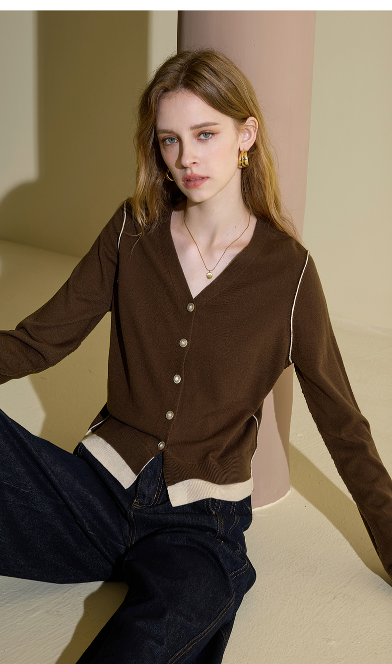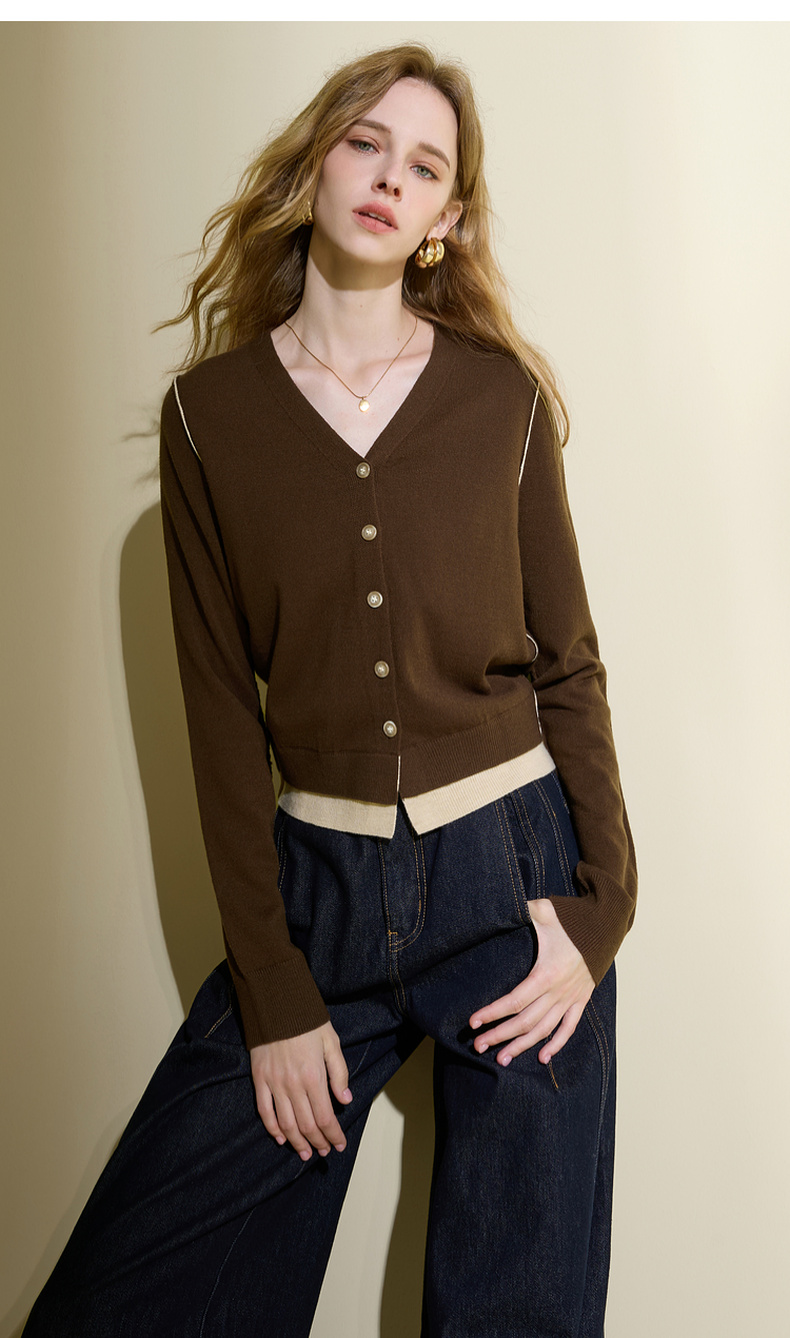 三彩2025秋季新款长袖针织衫V领开衫外套复古百搭小个子M