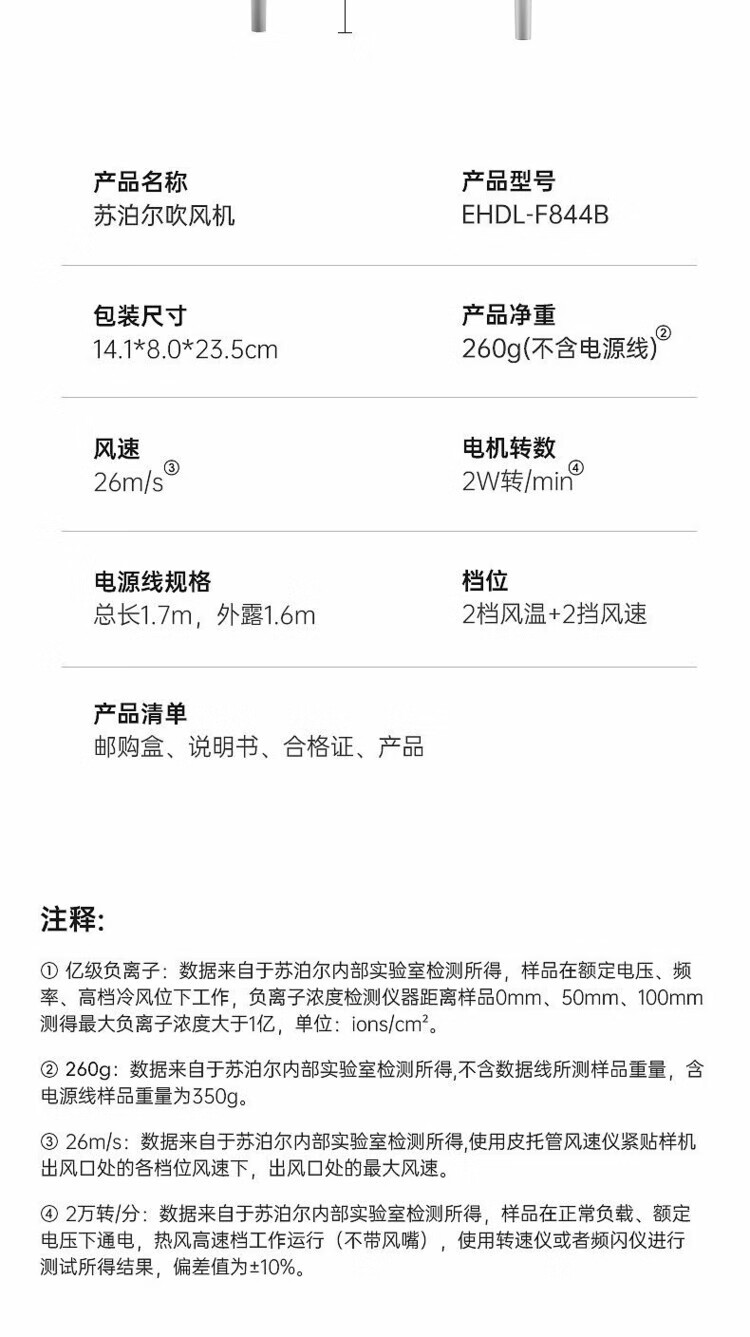 苏泊尔(SUPOR)电吹风家用吹风负离子护发大功率-F844
