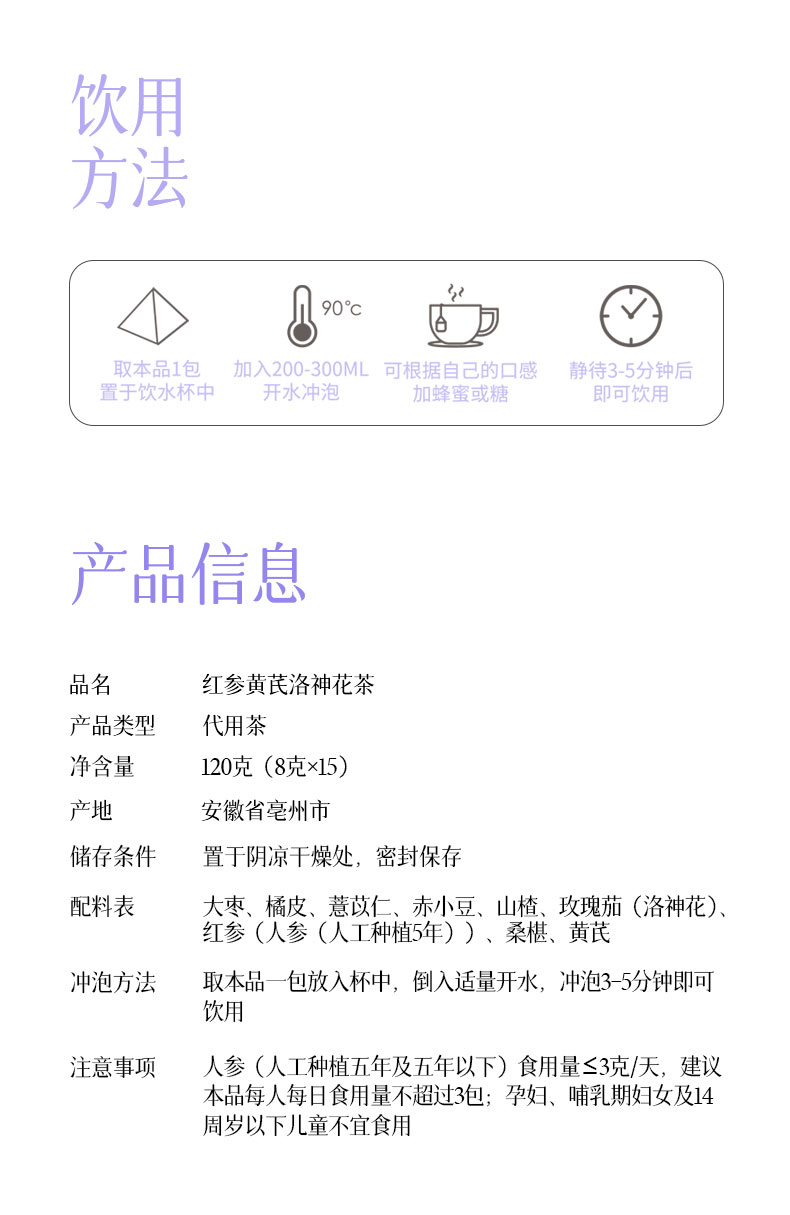 3袋红参黄芪洛神花茶/小吊梨汤120克(8克*15)