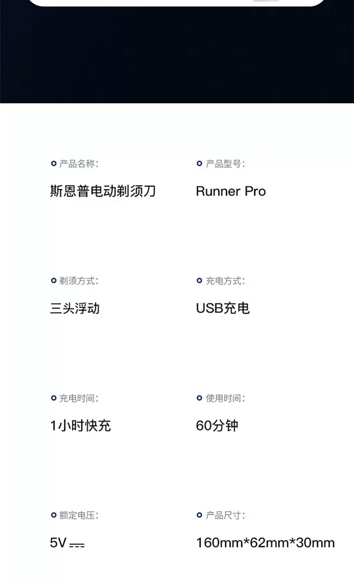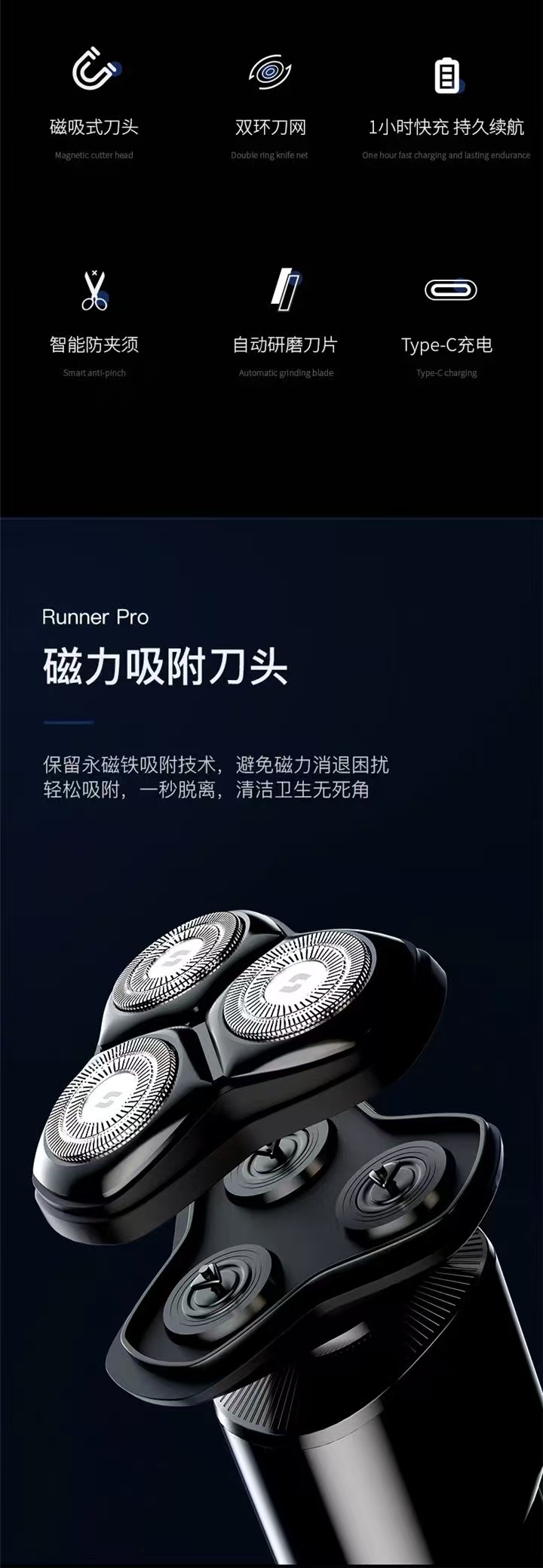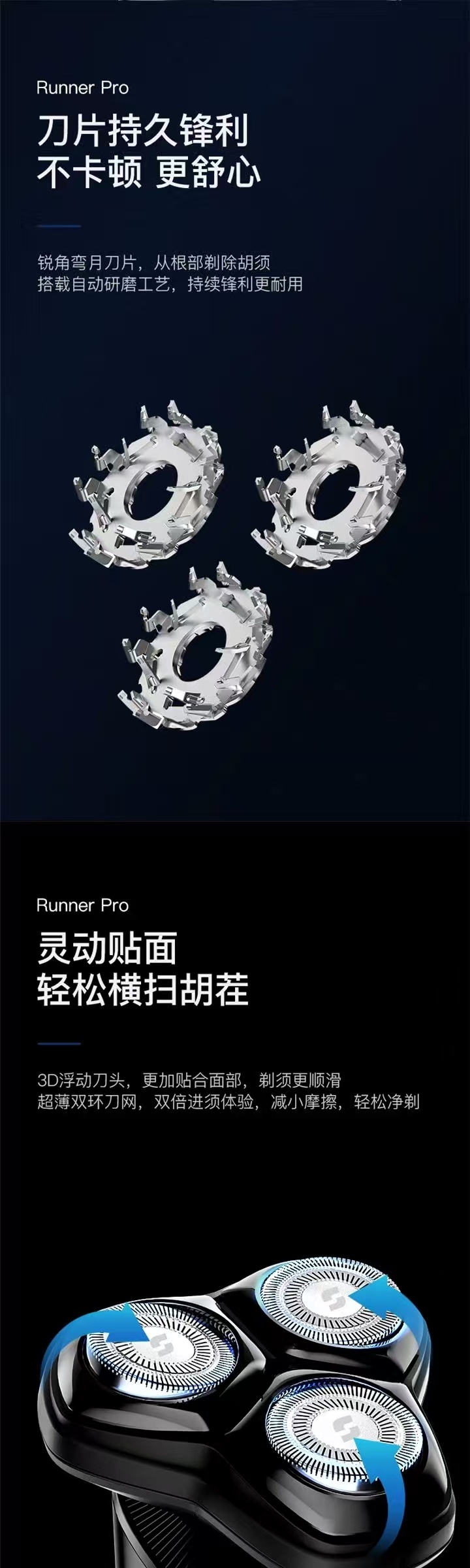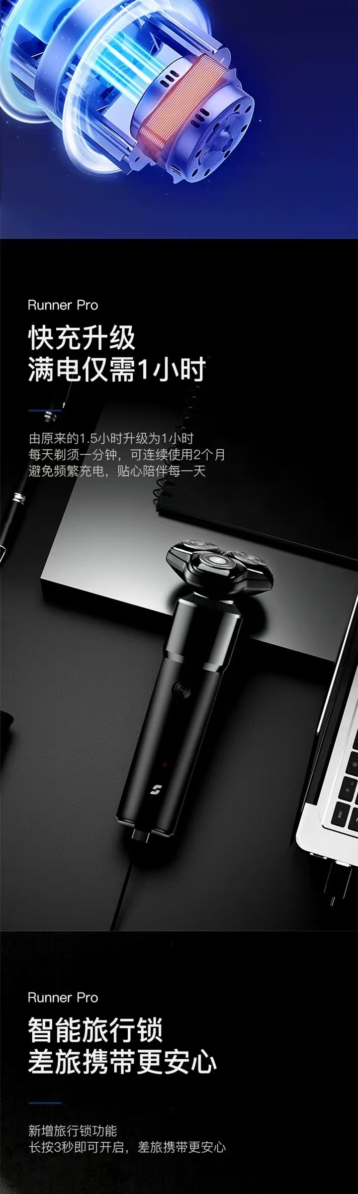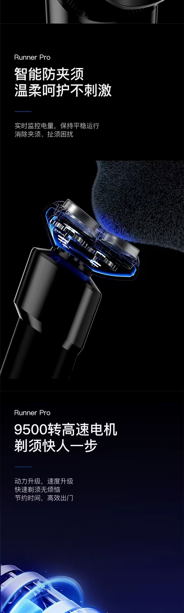 【小米代工厂】高端品质 斯恩普RUNNER PRO高速电动男士刮胡刀 防水充电式三刀头