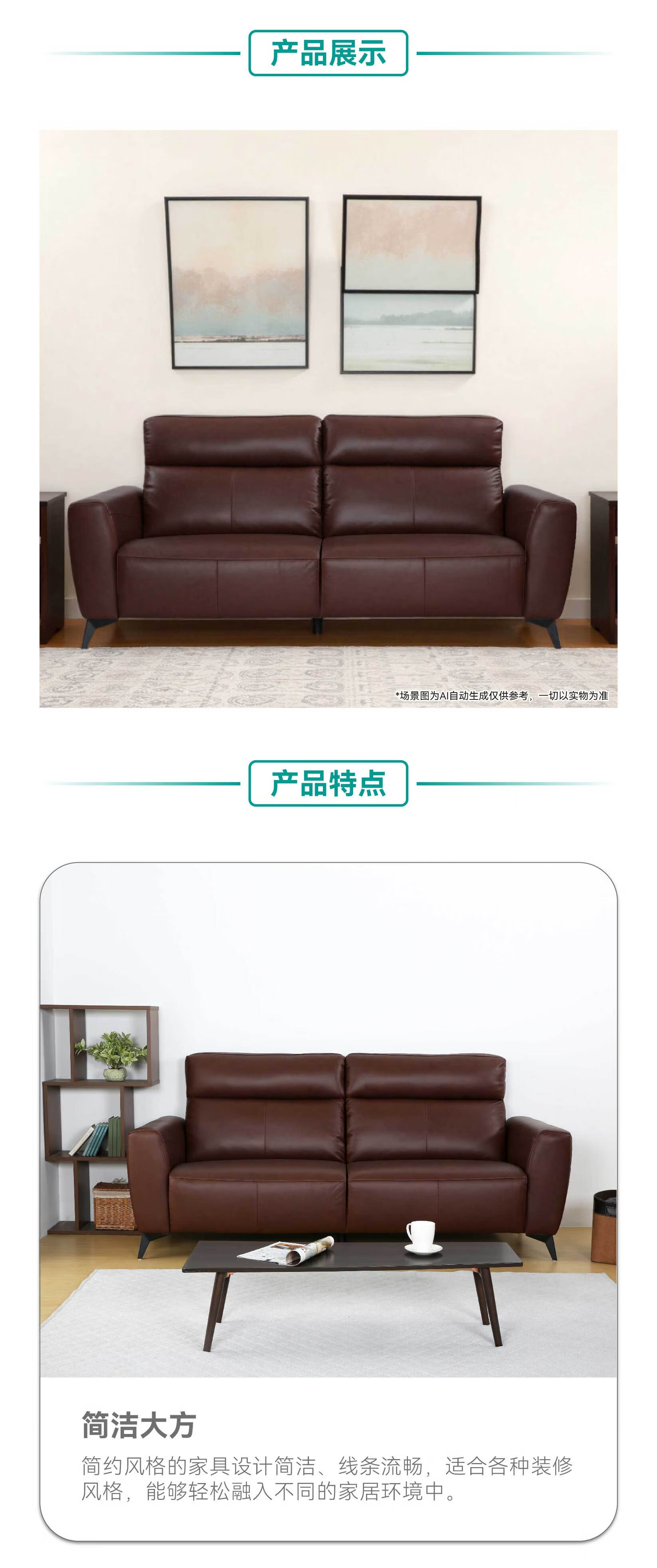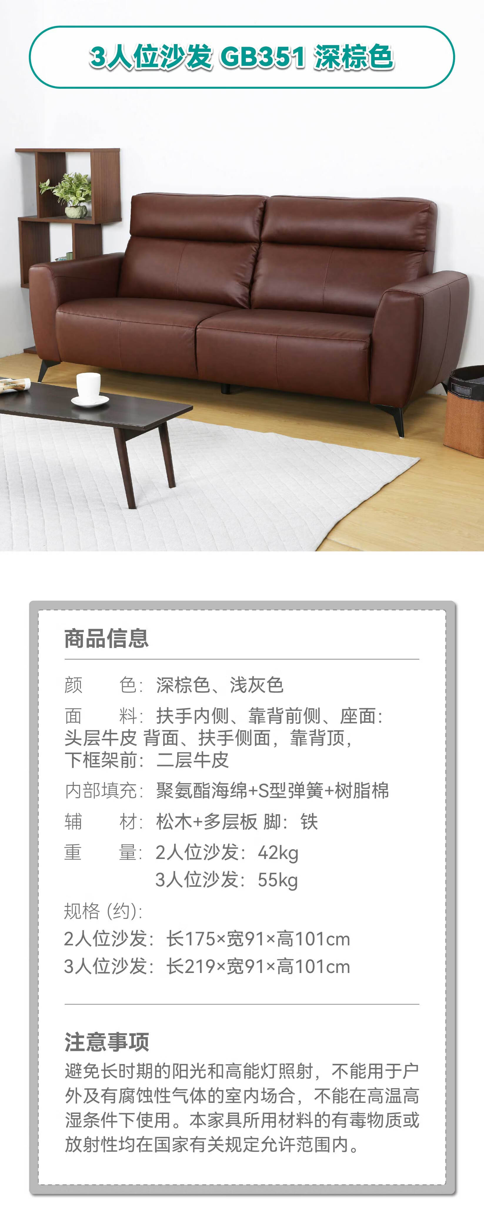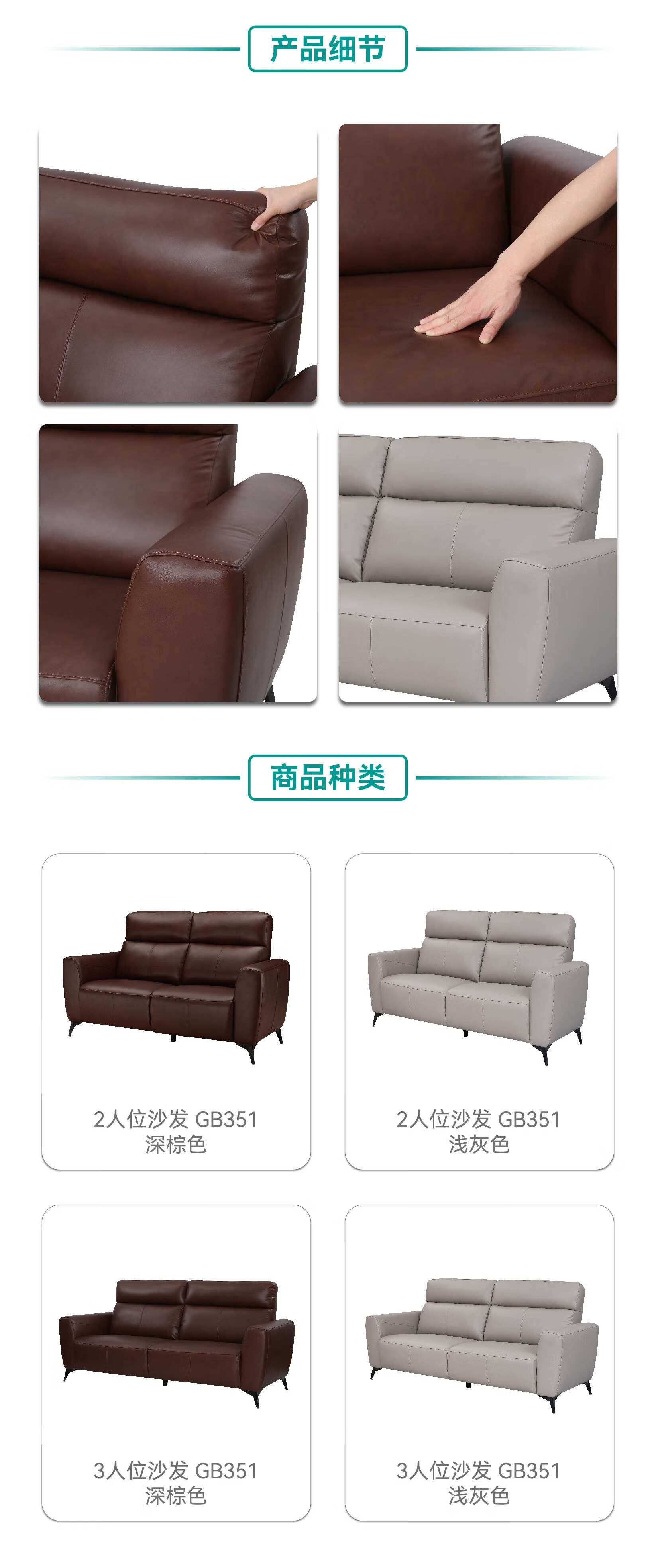 【家具】 客厅简约舒适皮沙发二人位三人位真皮沙发GB351