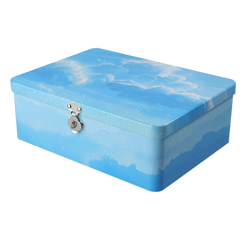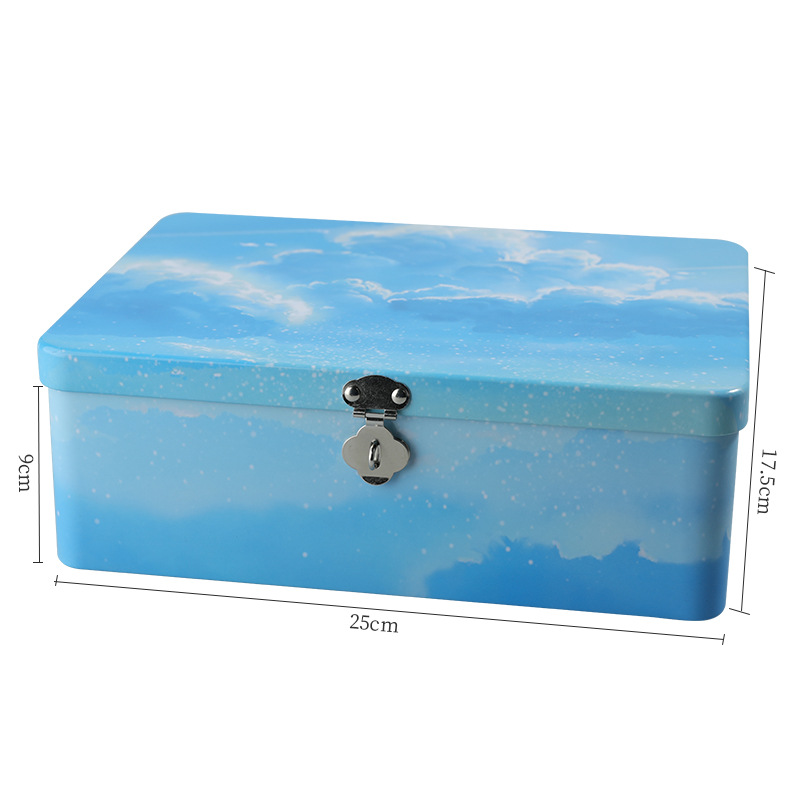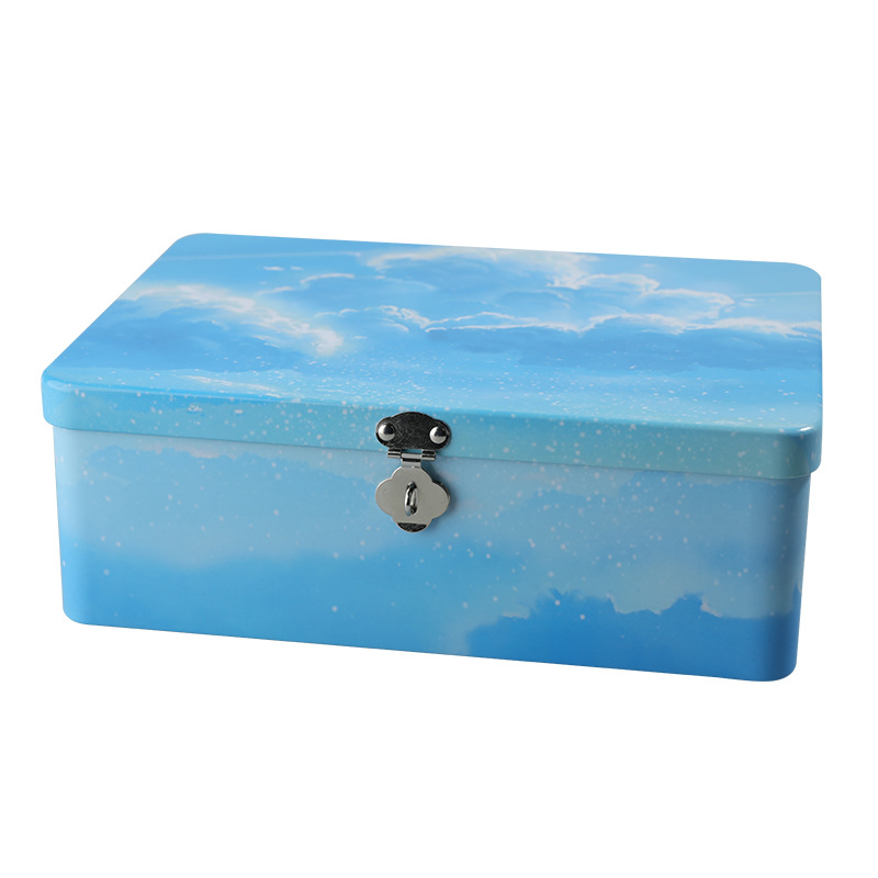 【谜姬】 连体翻盖收纳铁盒通用包装铁盒 长方形大翻盖铁盒