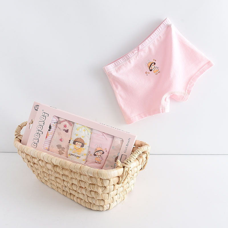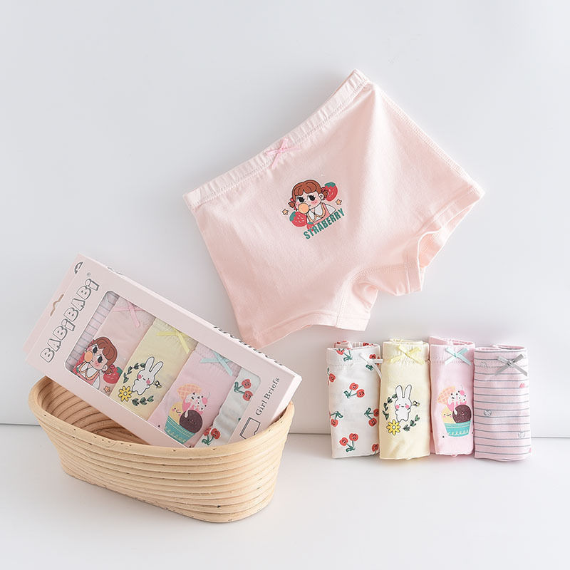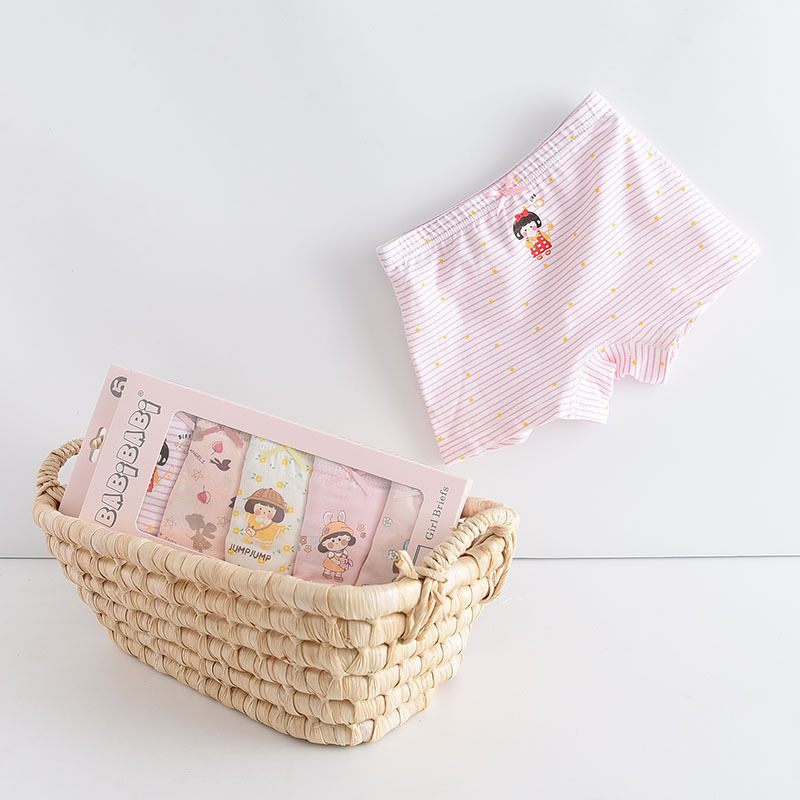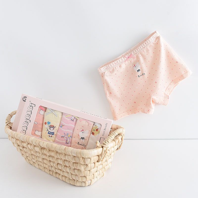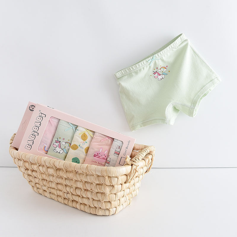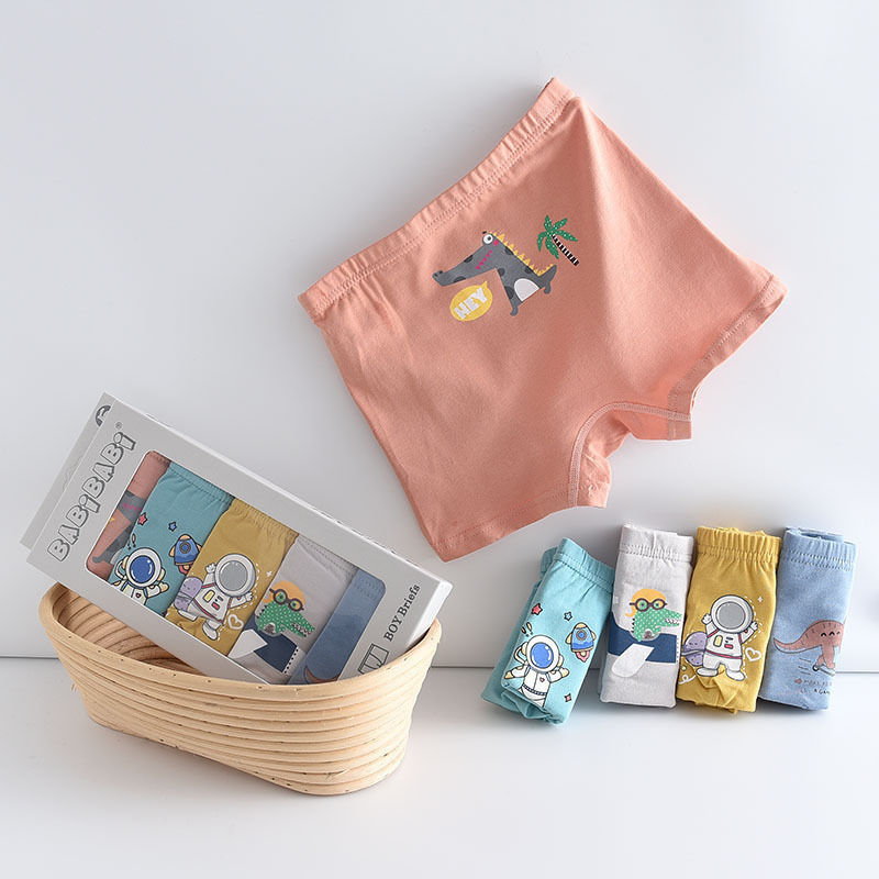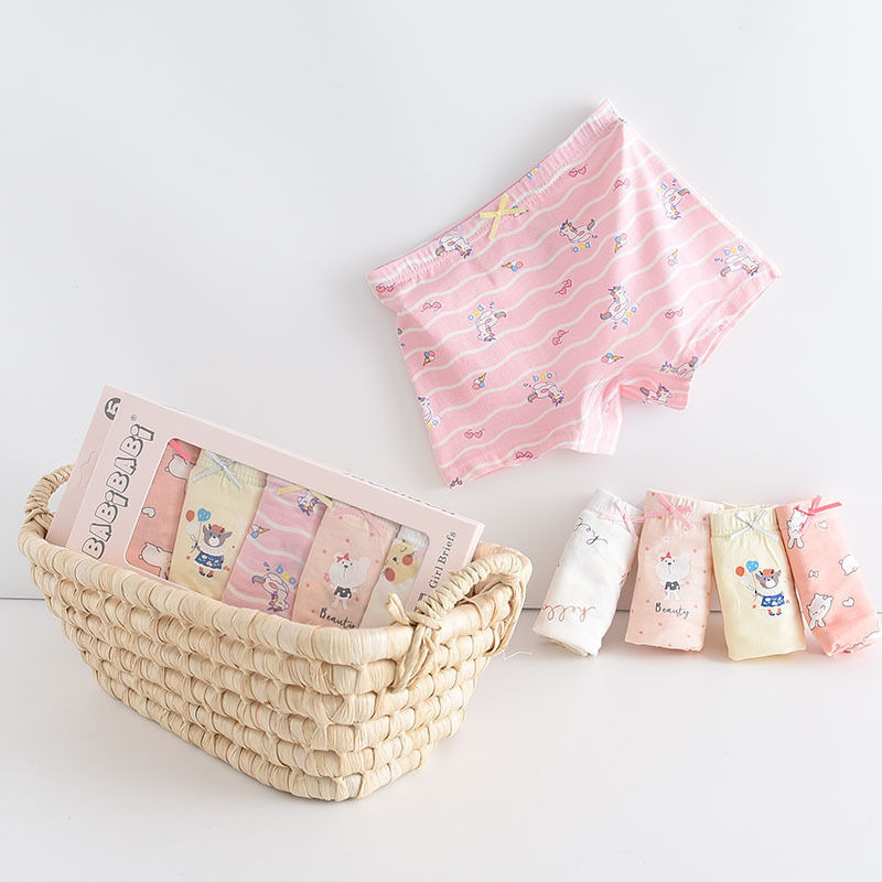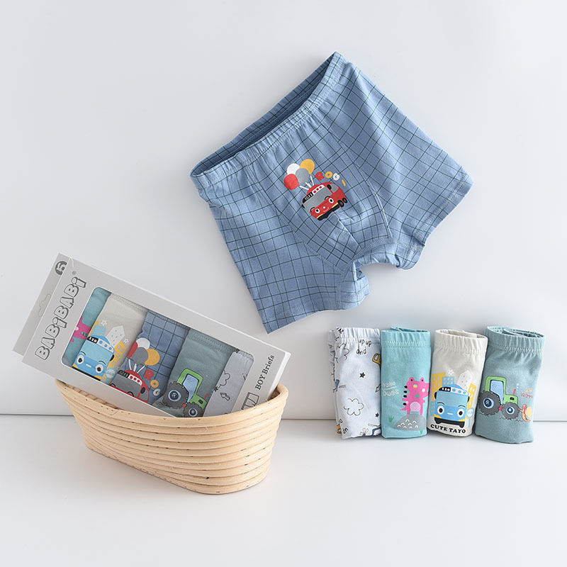 黛唯梵五条盒装儿童内裤95棉男女童平角裤卡通韩版平角内裤