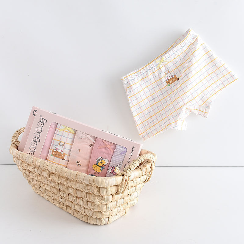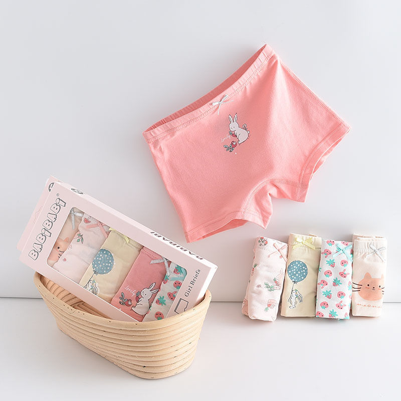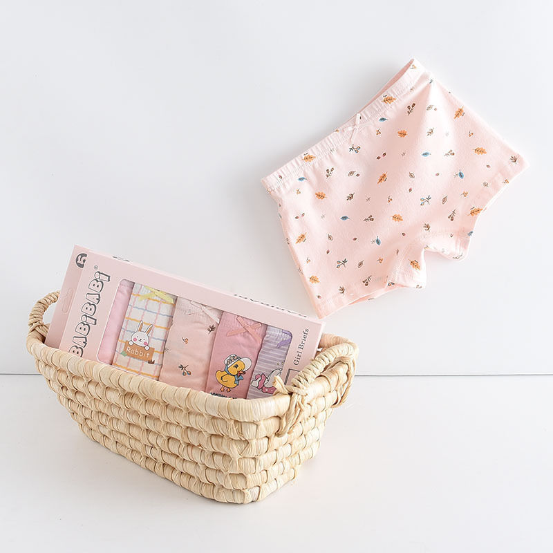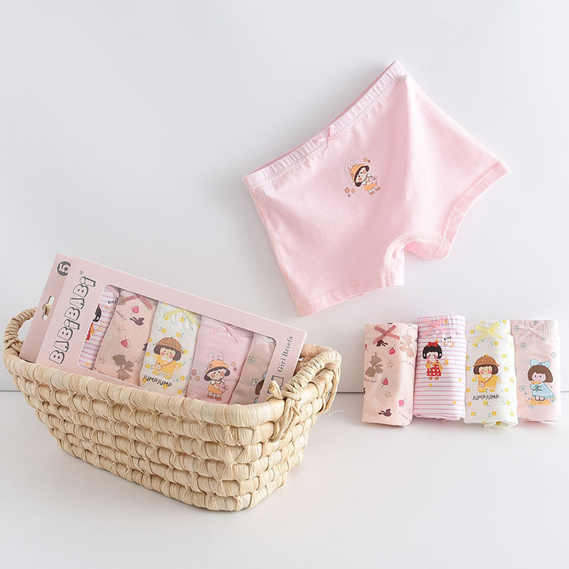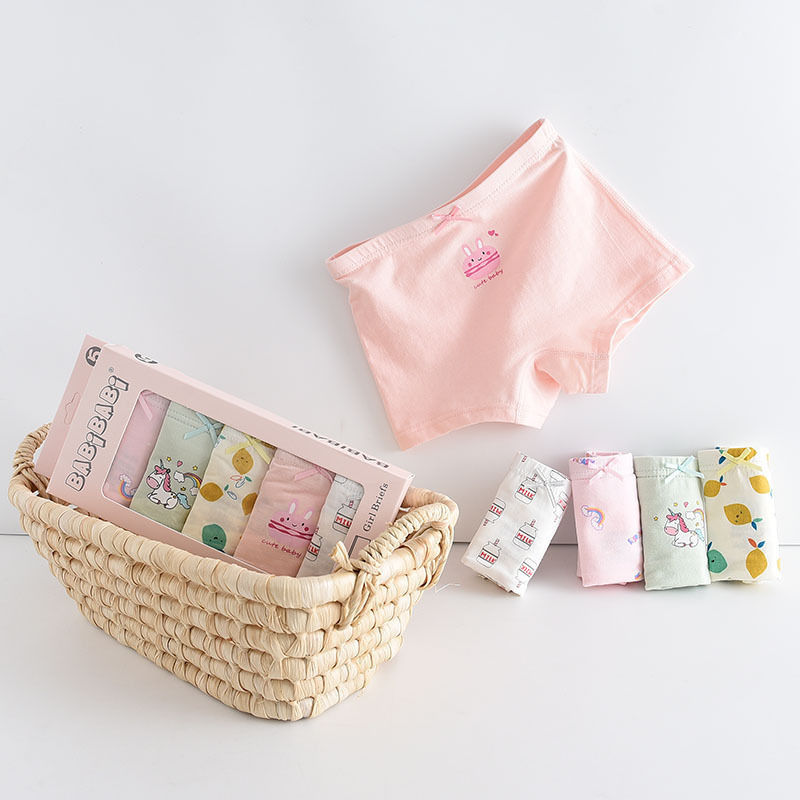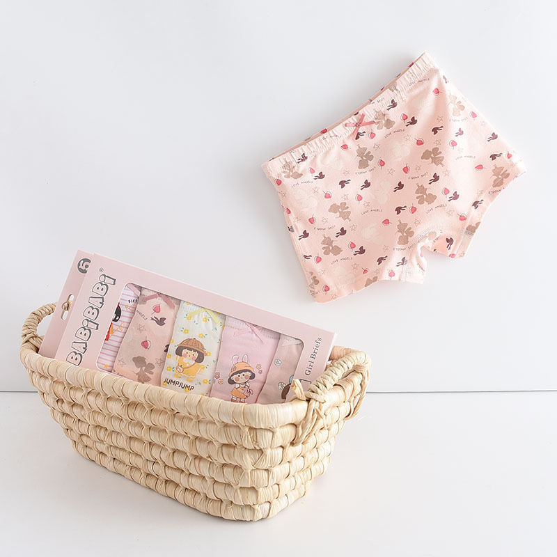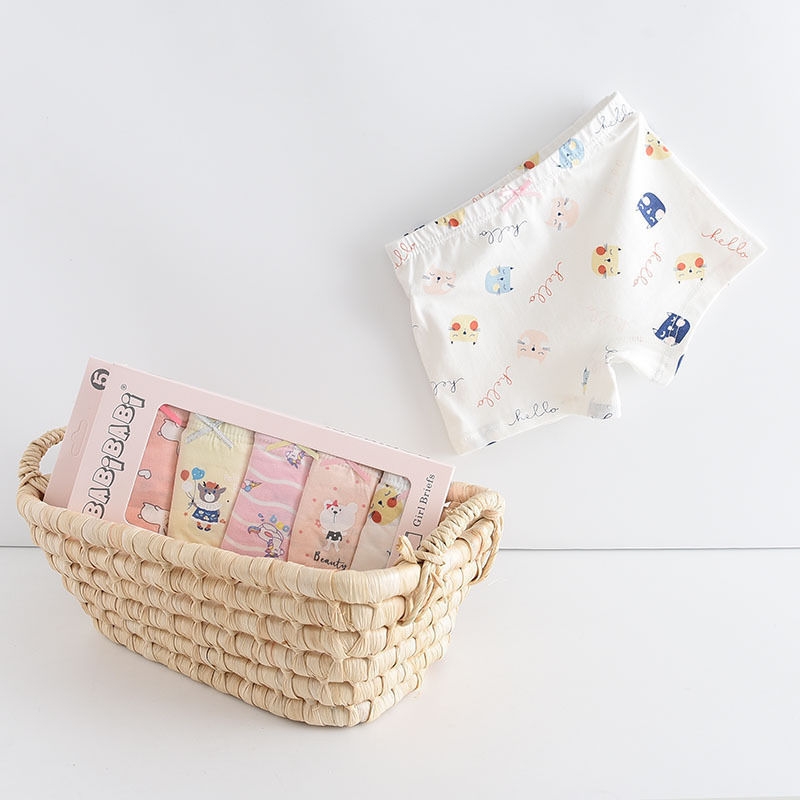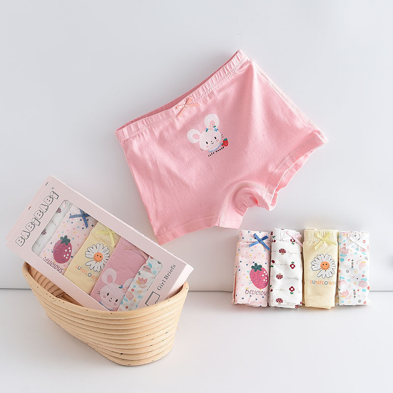 黛唯梵五条盒装儿童内裤95棉男女童平角裤卡通韩版平角内裤