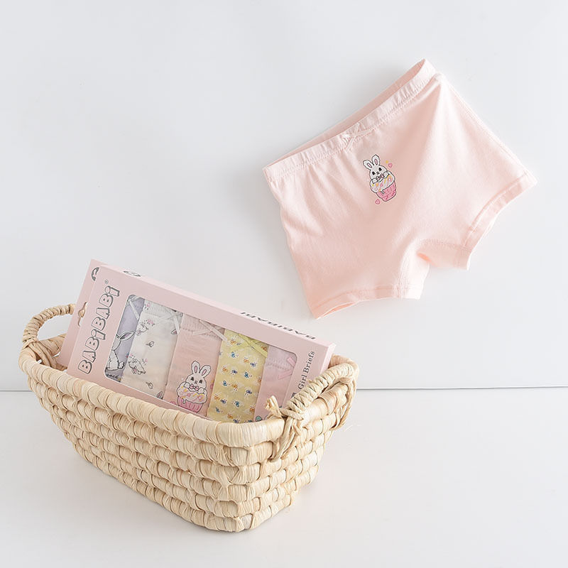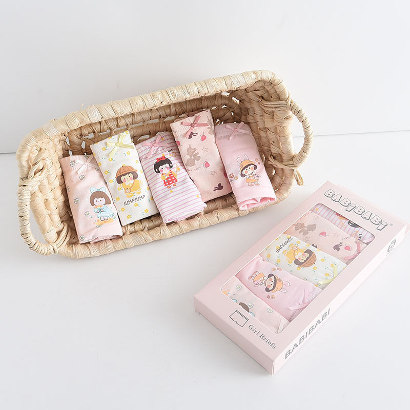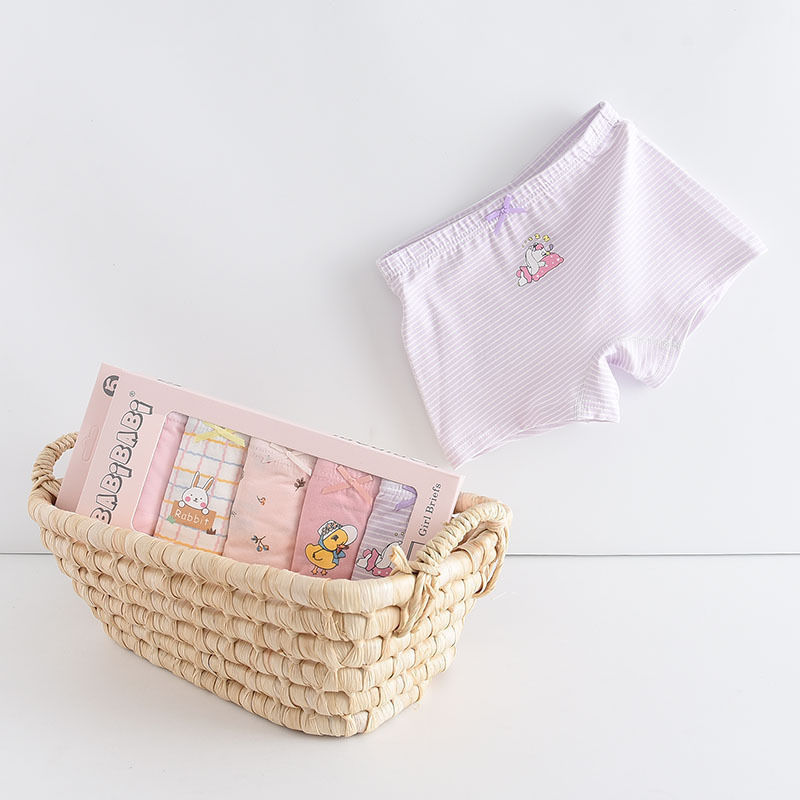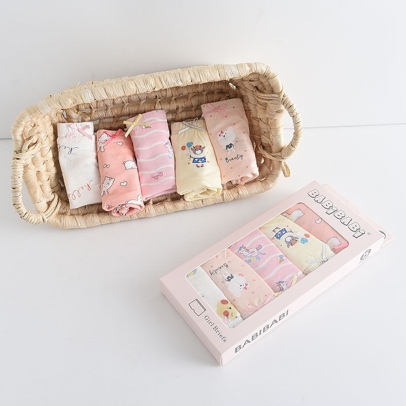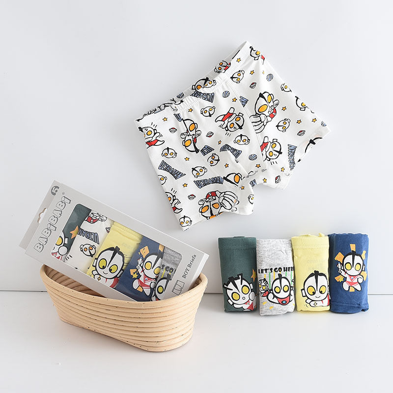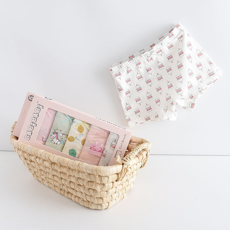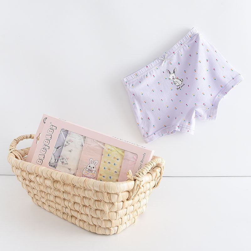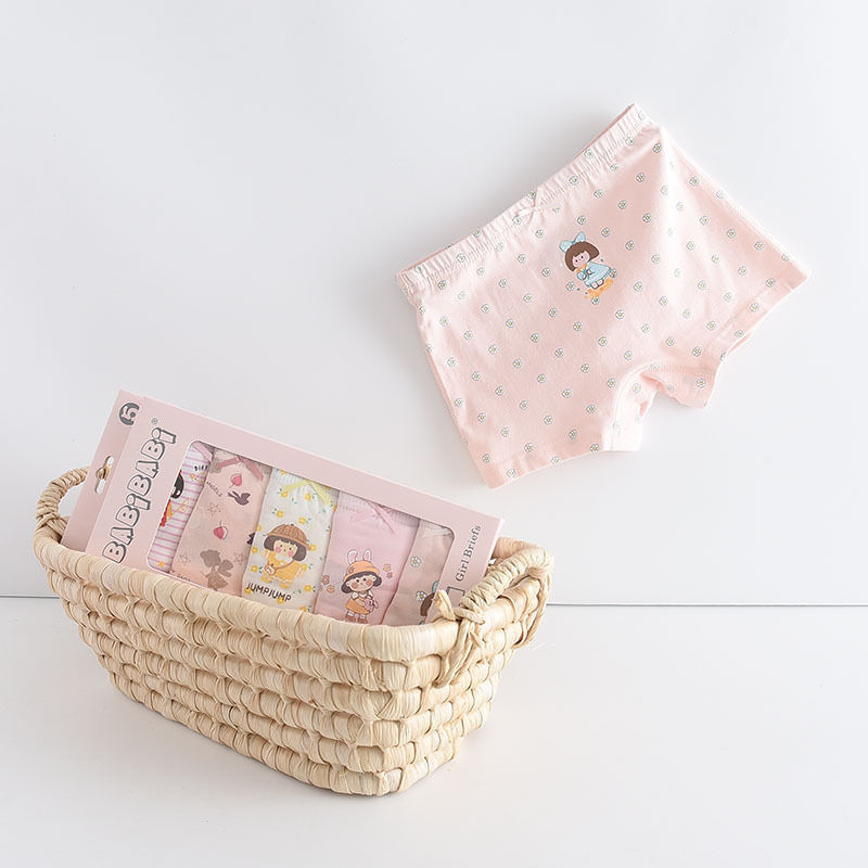 黛唯梵五条盒装儿童内裤95棉男女童平角裤卡通韩版平角内裤
