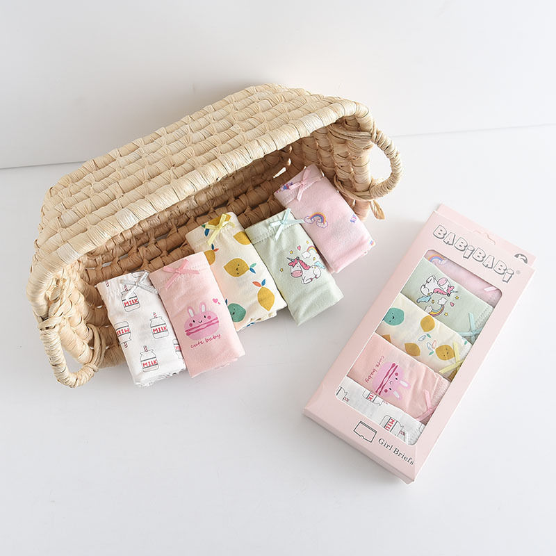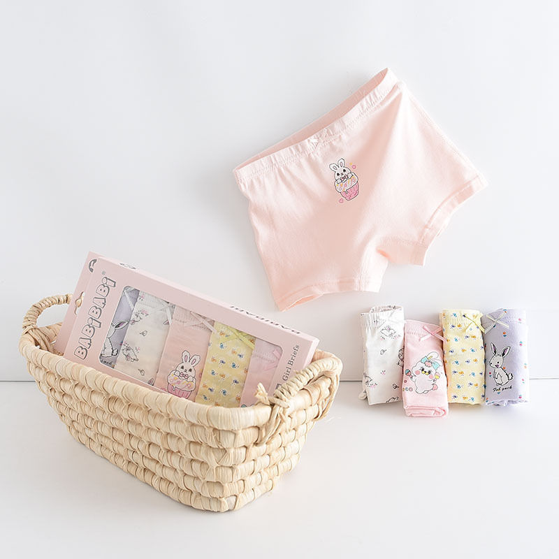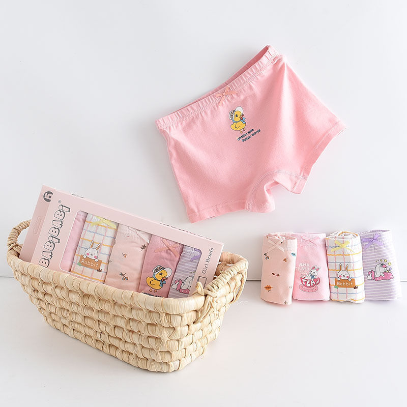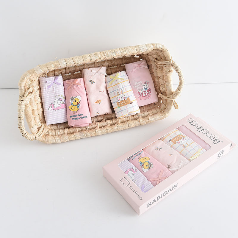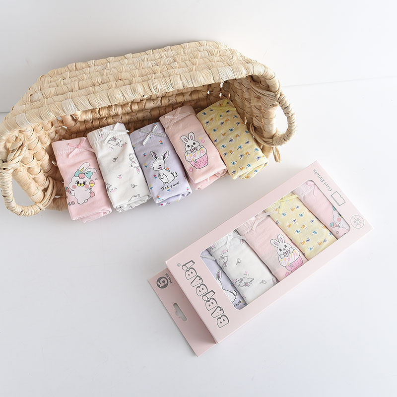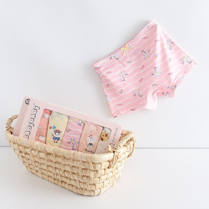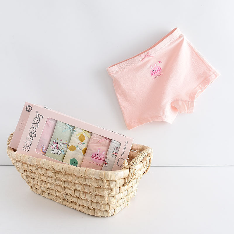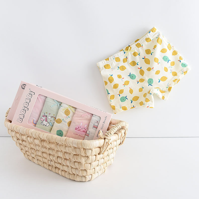 黛唯梵五条盒装儿童内裤95棉男女童平角裤卡通韩版平角内裤