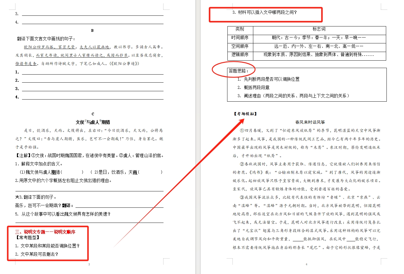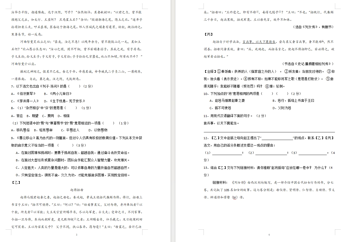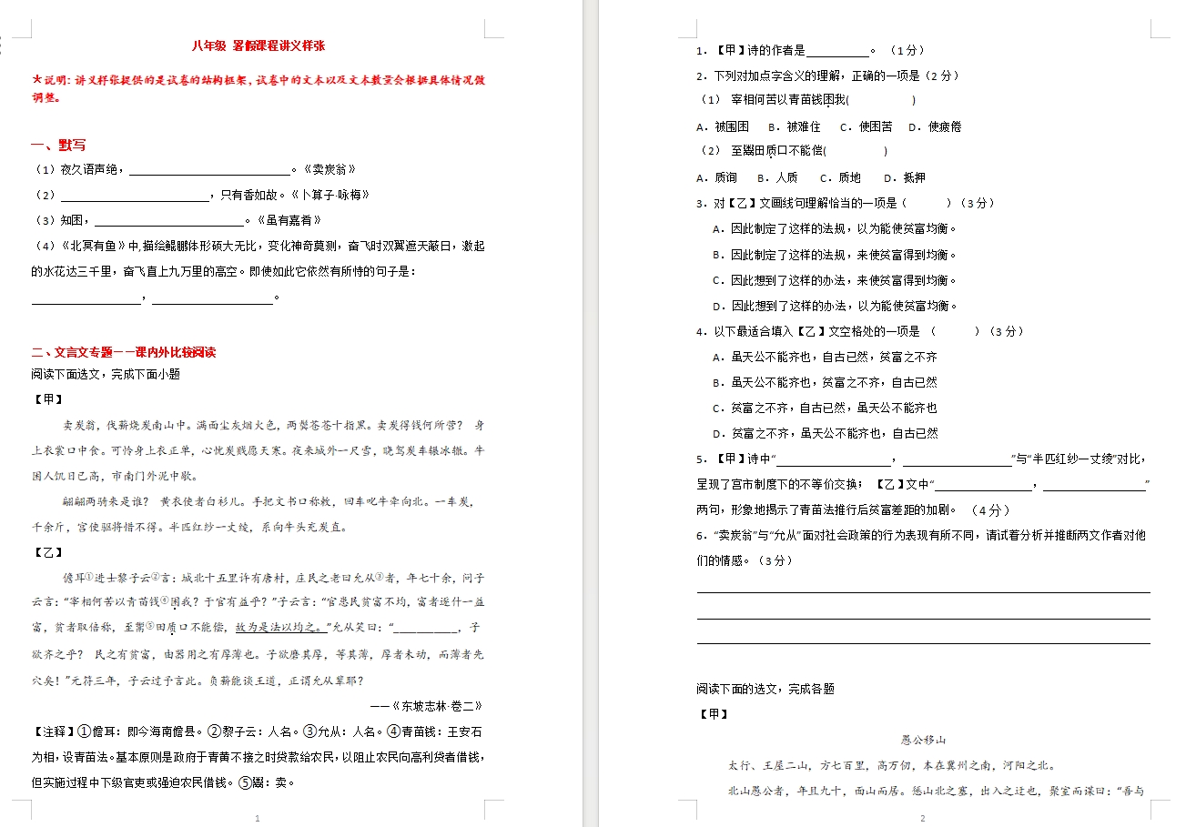 🎏文言文阅读专题(六~八年级课内外古文比较阅读)
