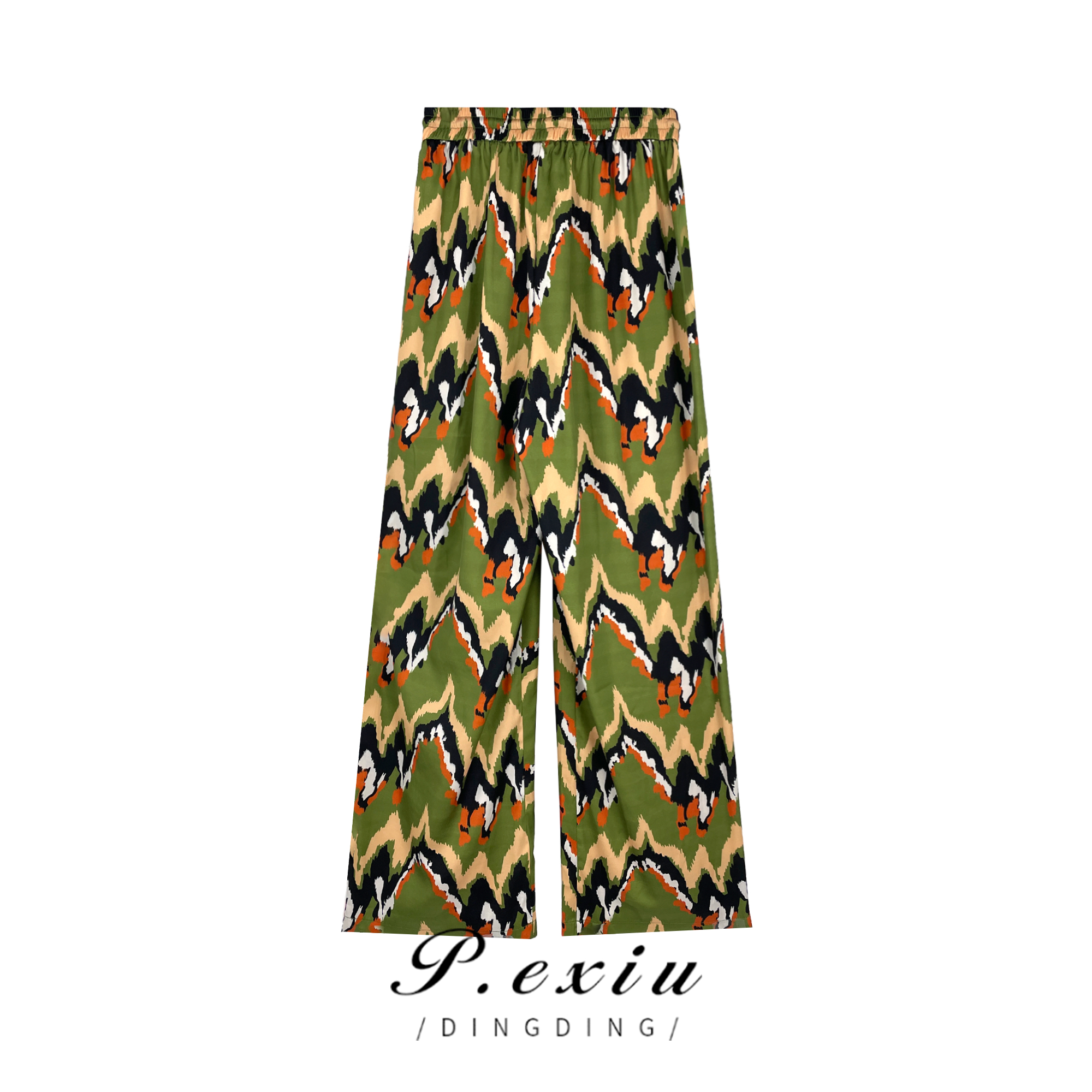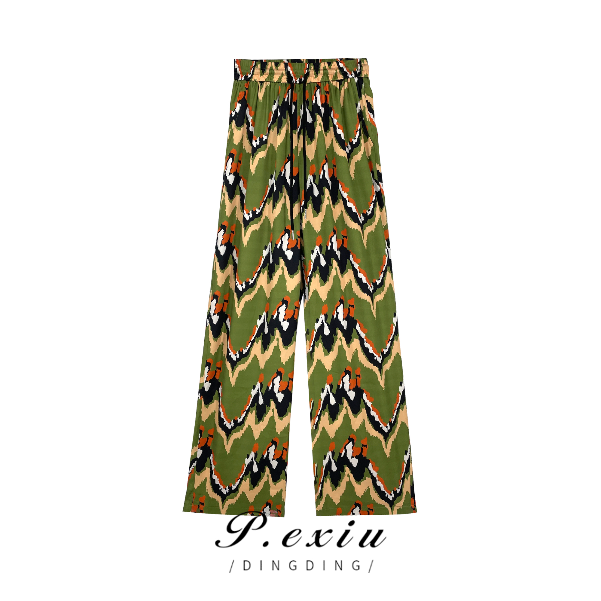 04-6潘依绣丁丁宠粉【迷醉森林】宽松复古松紧腰直筒休闲裤 W-61196