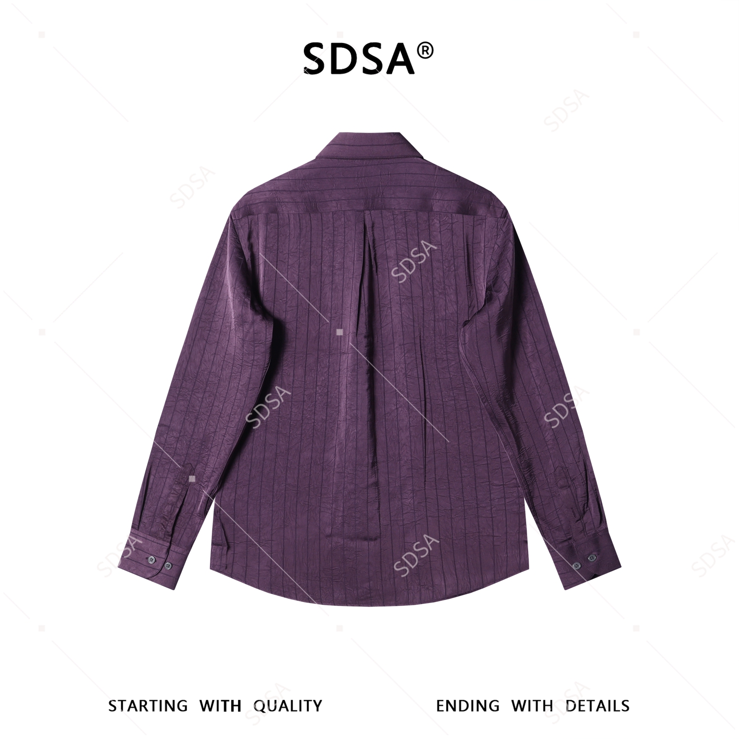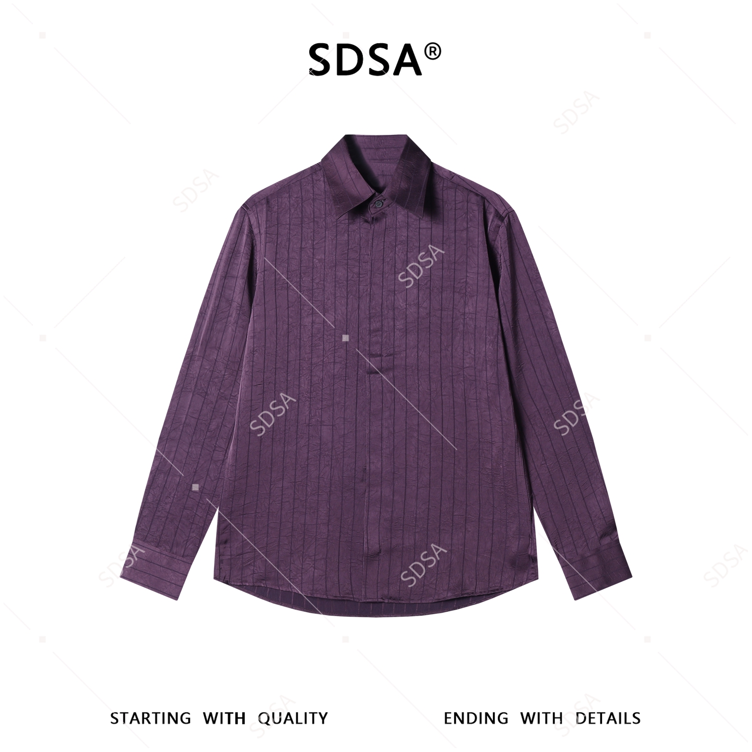 SDSA男装2026新款高贵轻奢韩版简约竖纹褶皱长袖衬衫百搭时尚衬衣