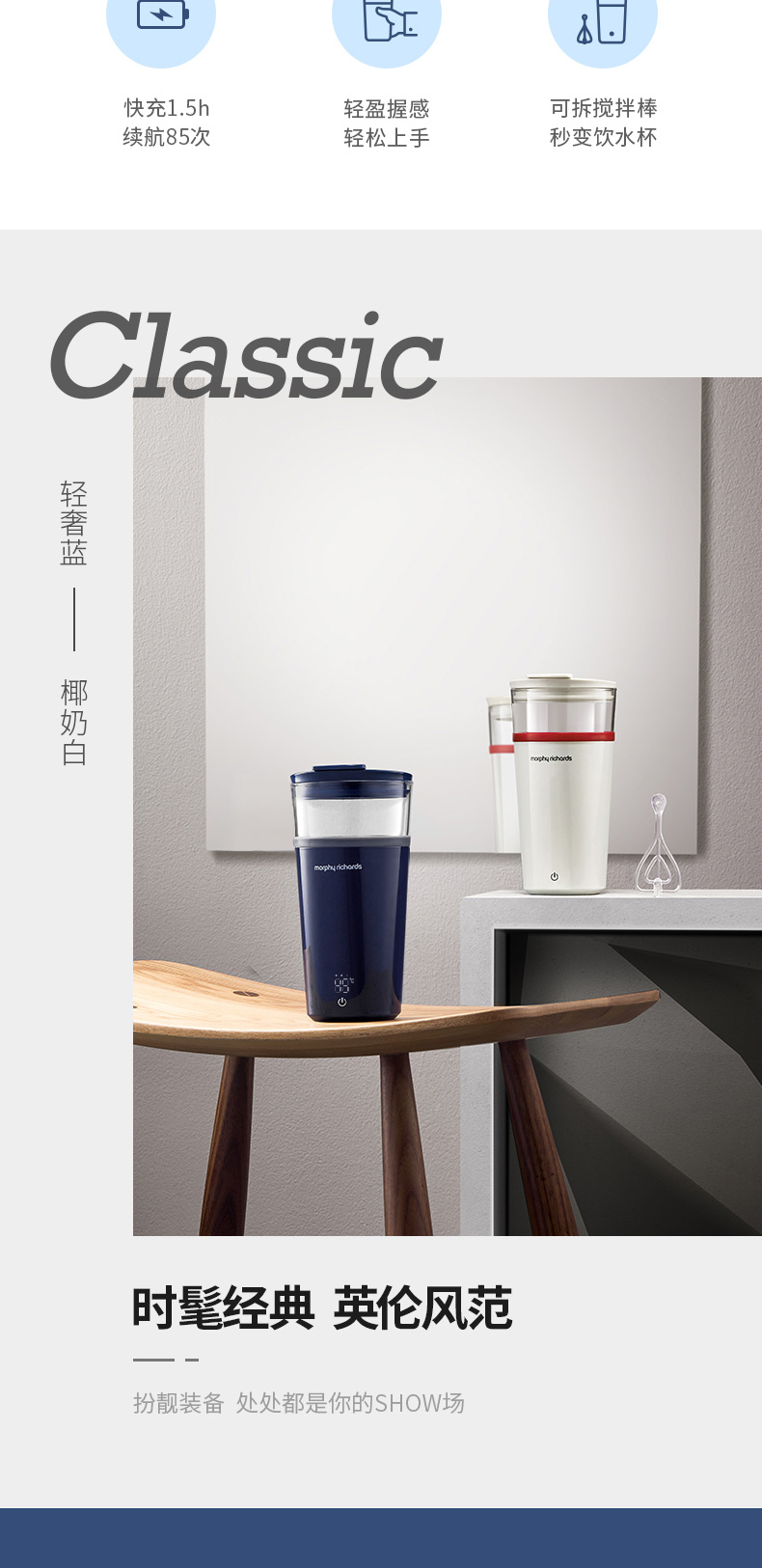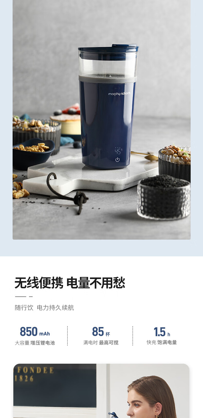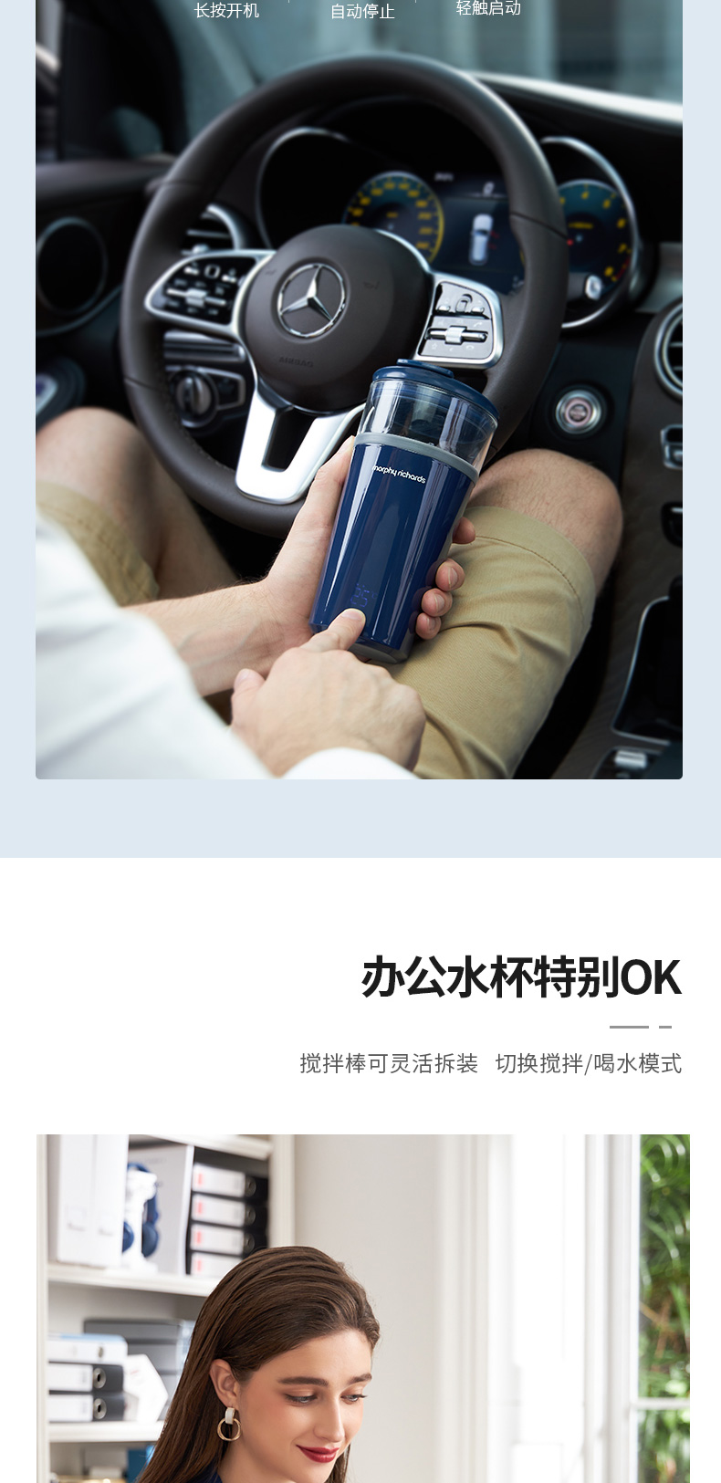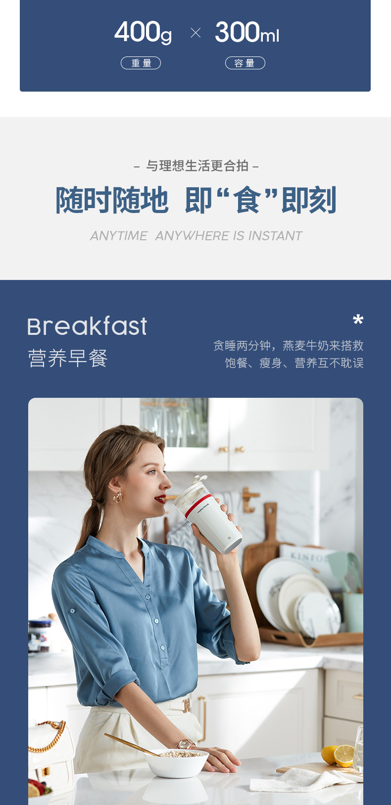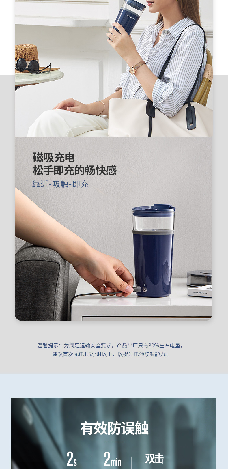 摩飞电器(Morphyrichards) 搅拌杯便携式料理机无线搅拌机奶昔冲奶果汁咖啡杯健身摇摇杯 MR9000轻奢蓝