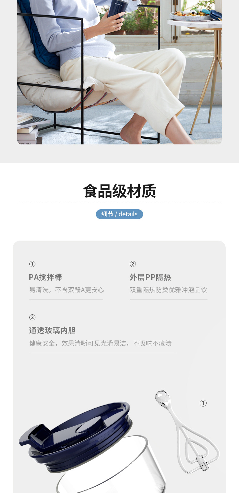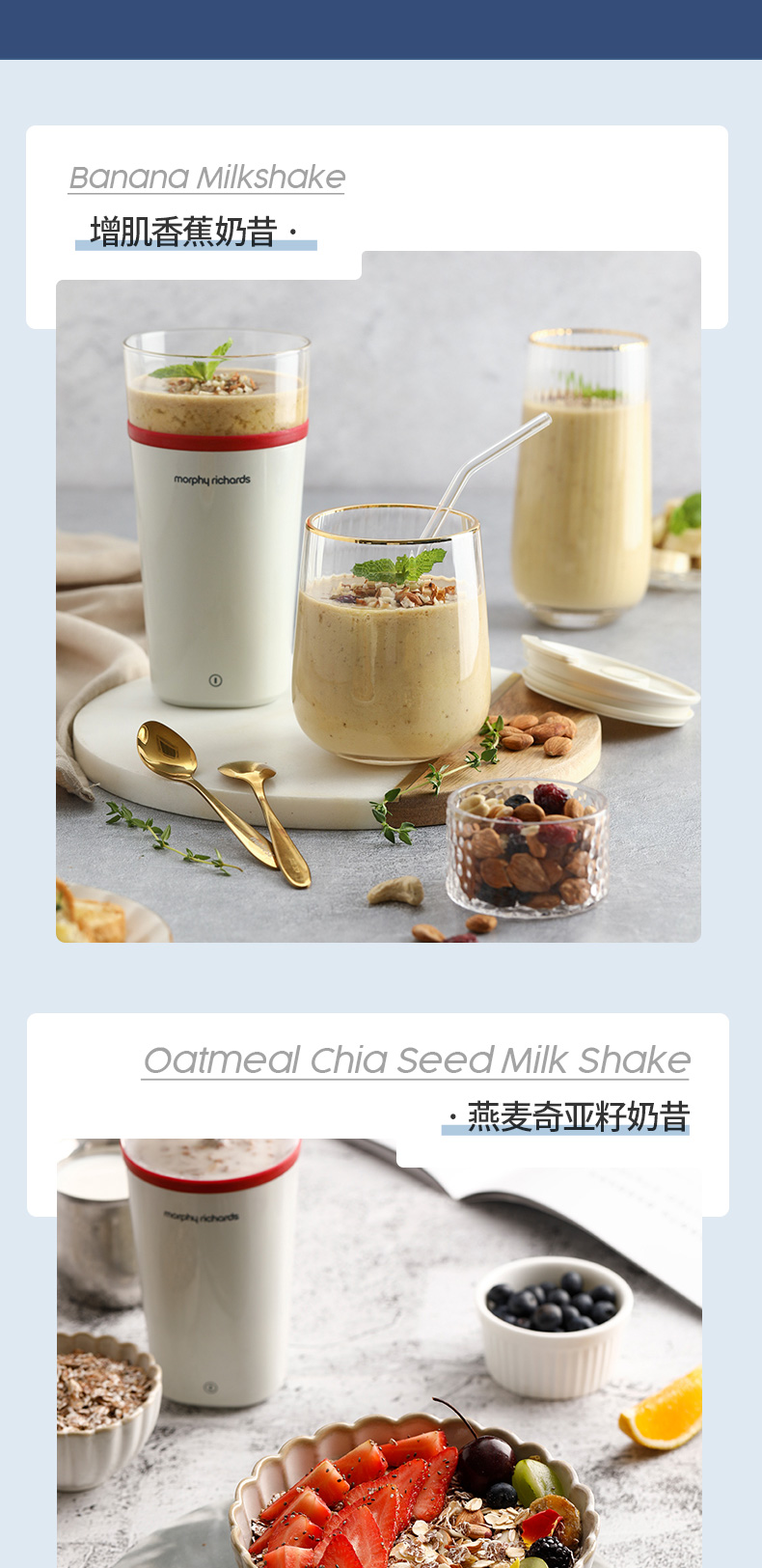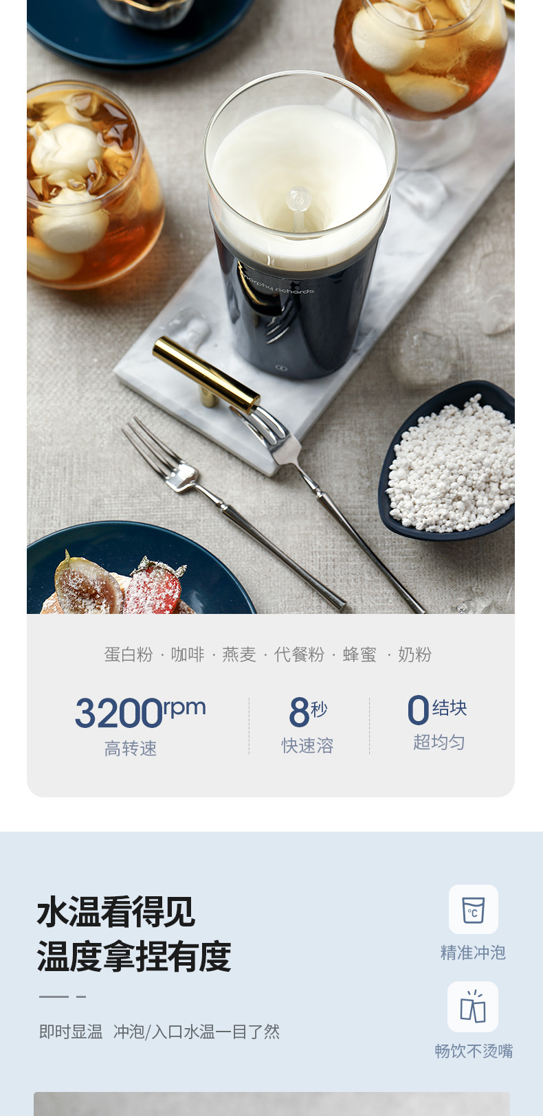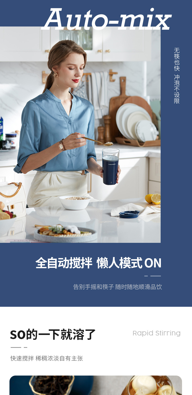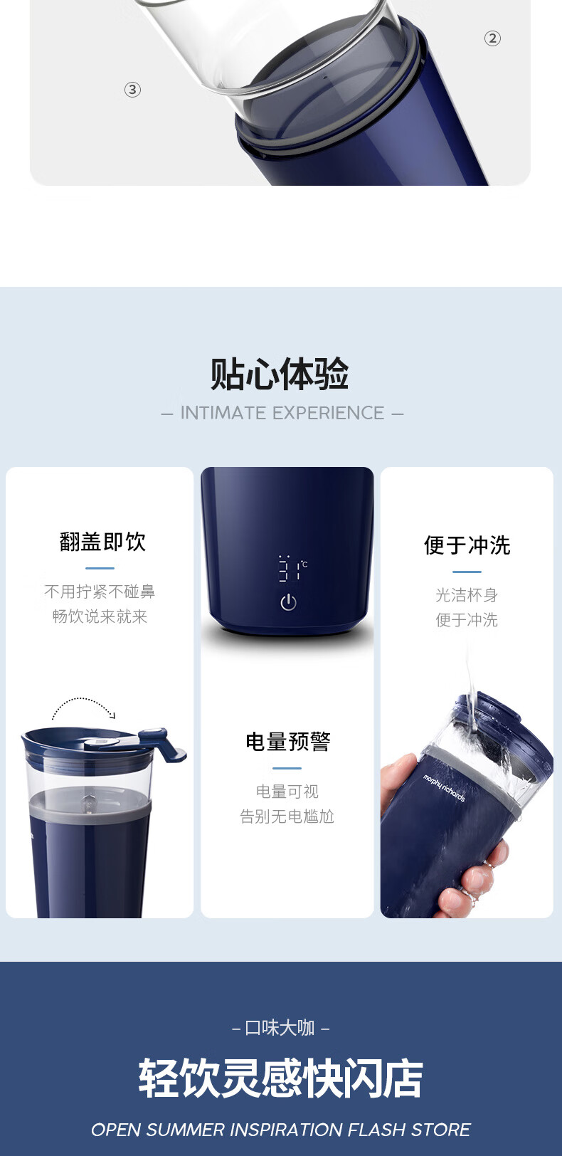 摩飞电器(Morphyrichards) 搅拌杯便携式料理机无线搅拌机奶昔冲奶果汁咖啡杯健身摇摇杯 MR9000轻奢蓝