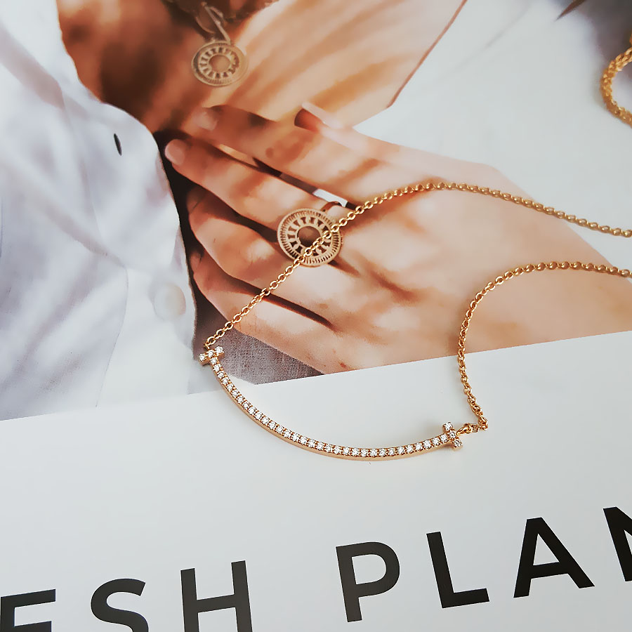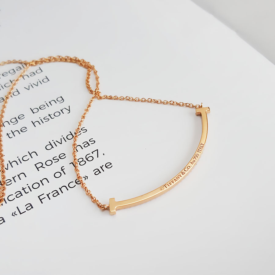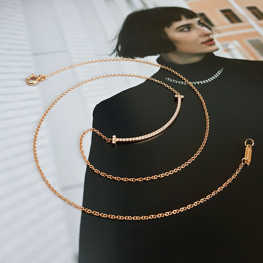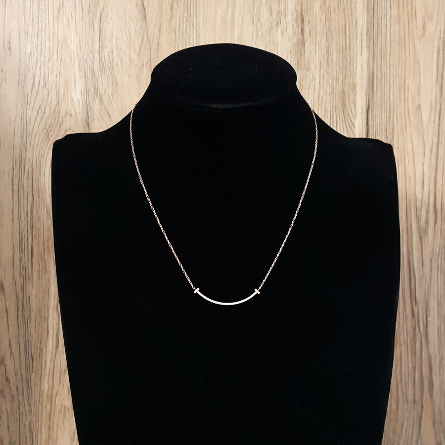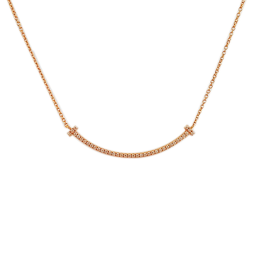 【95新】Tiffany & Co.蒂芙尼Tiffany T 系列小号18K玫瑰金满钻笑脸Smile项链链长约41cm女士101125NJS52
