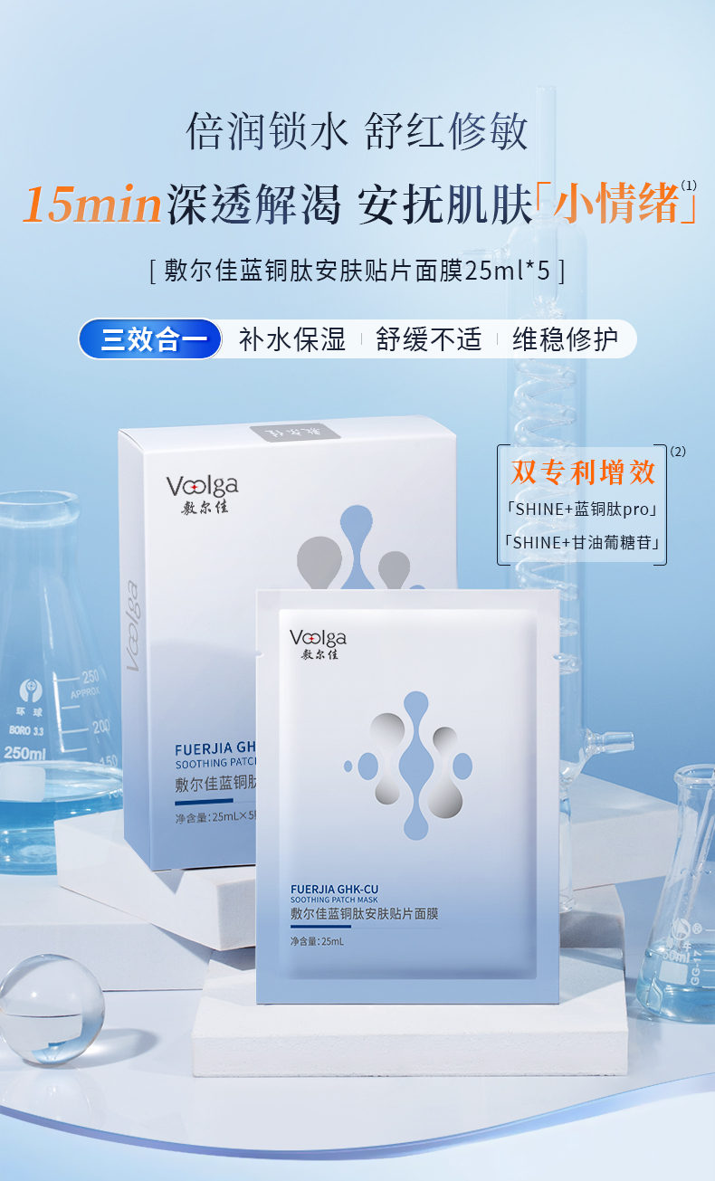 敷尔佳蓝铜肽安肤贴片面膜 25ml*5贴/盒