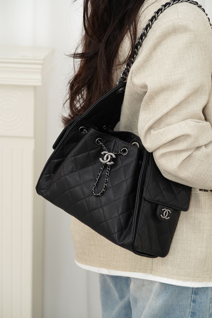 𝐂𝐡𝐚𝐧𝐞𝐥 𝟐𝟔𝐜新款 𝟐𝟓𝐛𝐚𝐠 黑色古银鱼子酱 小号✔️ 最新升级版出货🔥🔥🔥本季爆款一眼心动的𝐇𝐨𝐛𝐨✨ 预计又是一匹黑马🐎!鱼子酱皮质细腻有光泽🤩 搭配古银色五金超独特‼️ 多口袋的设计简直将随性慵懒感拉满👏🏻开口可调节的抽绳设计很实用〰️ 直接变身水桶包 尺寸大小适中✌🏻酷𝐠𝐢𝐫𝐥必备单品 爱惨了!!小个子也能轻松驾驭✨ 尺寸:𝟑𝟎𝐱𝟐𝟔𝐱𝟏𝟒𝐜𝐦 🔍:24650871