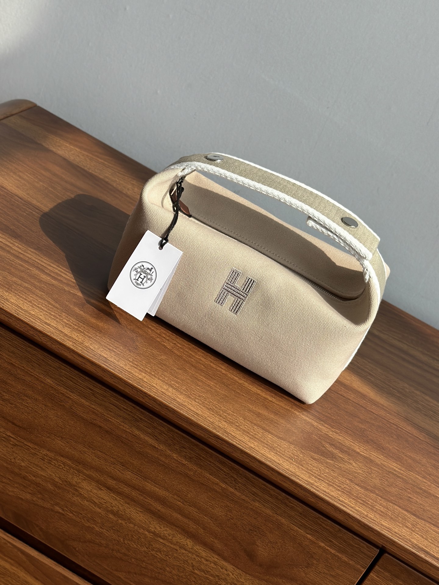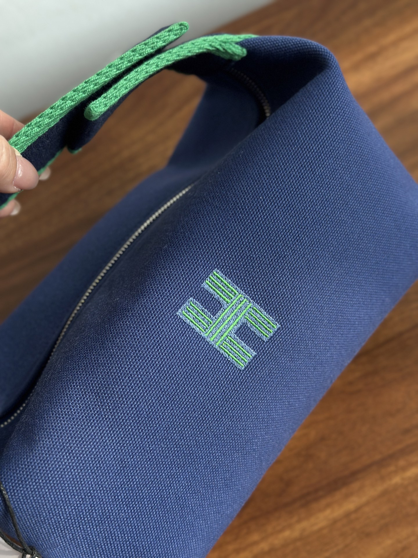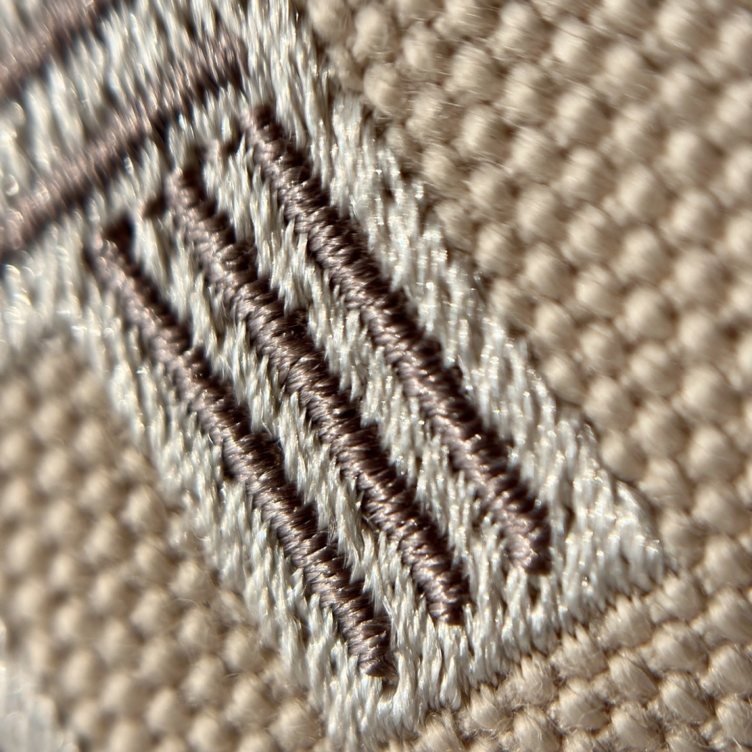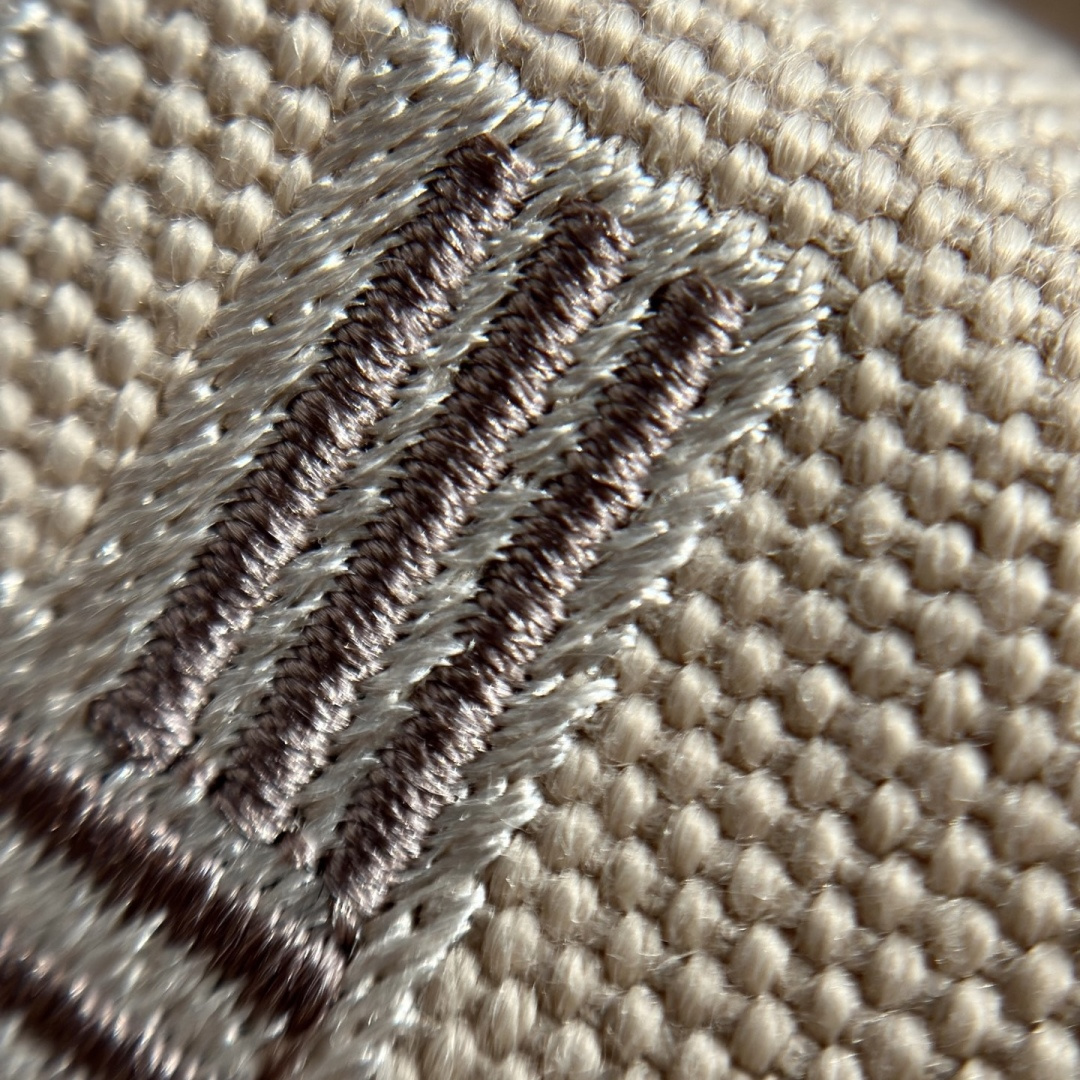 面料:日本进口H Plume帆布 特点是低调简约,包身整体是纯色或简单的条纹,上面印有小小的“H”字母图案,整体风格偏向现代、休闲和“老钱风”。 它没有大面积的标志性 logo,更显克制和高级! 手感与耐用性:由100%棉制成,手感柔软轻盈。 它的耐用性不错,但相比人字纹,表面相对光滑,没有粗犷的纹理感! ❗️这种材料需要特殊对纹 所以这里的每一只Bride-a-Brac洗漱包都是纯手工开料…配件 缝制工艺:爱马家的精髓就是纯手工制作的工匠精神! 你看似一个简单的布包 实则产量极低,真正的人工费也不比材料便宜! 这就是为何柜子售价¥6500 还如此受欢迎!!!