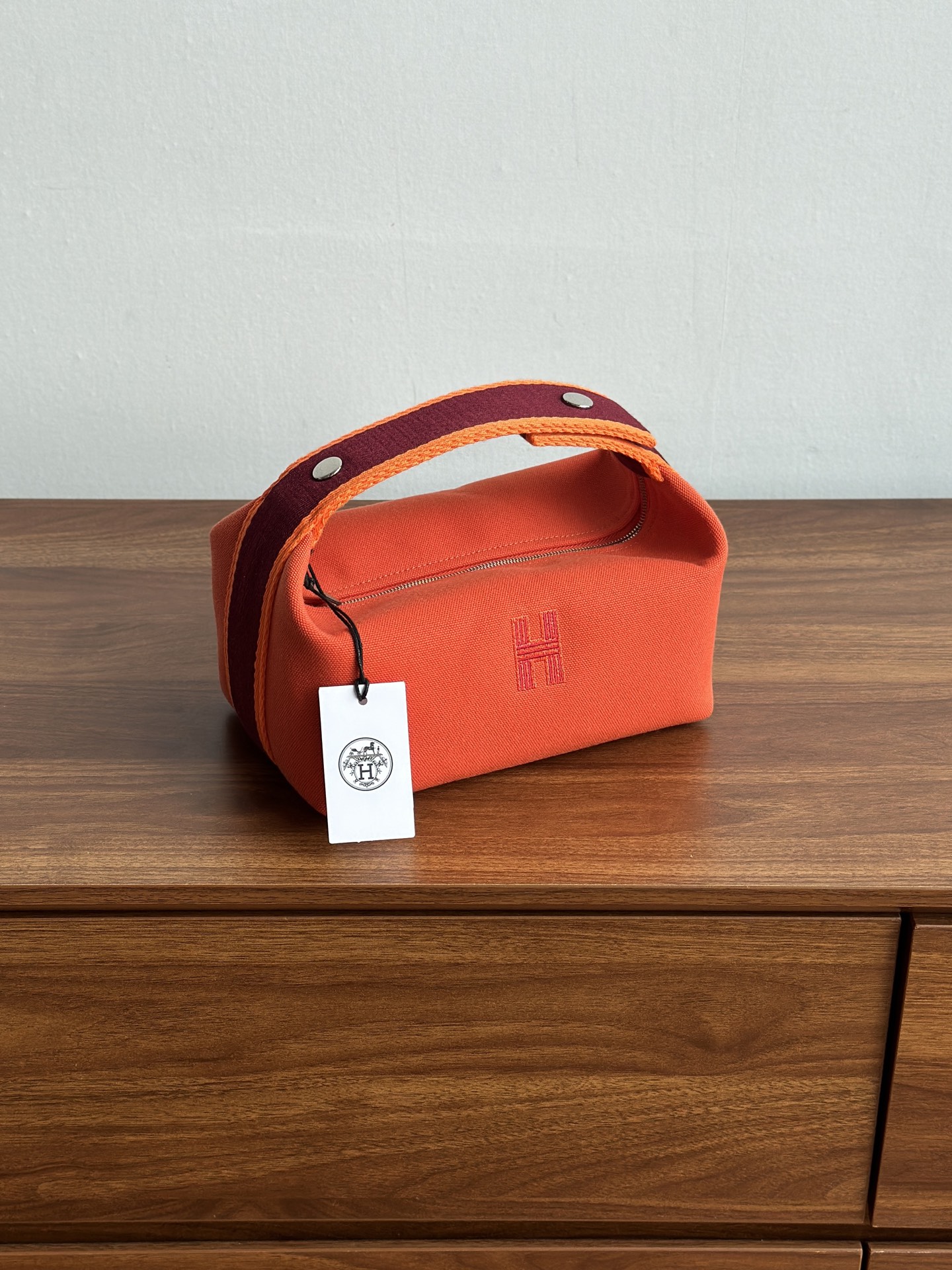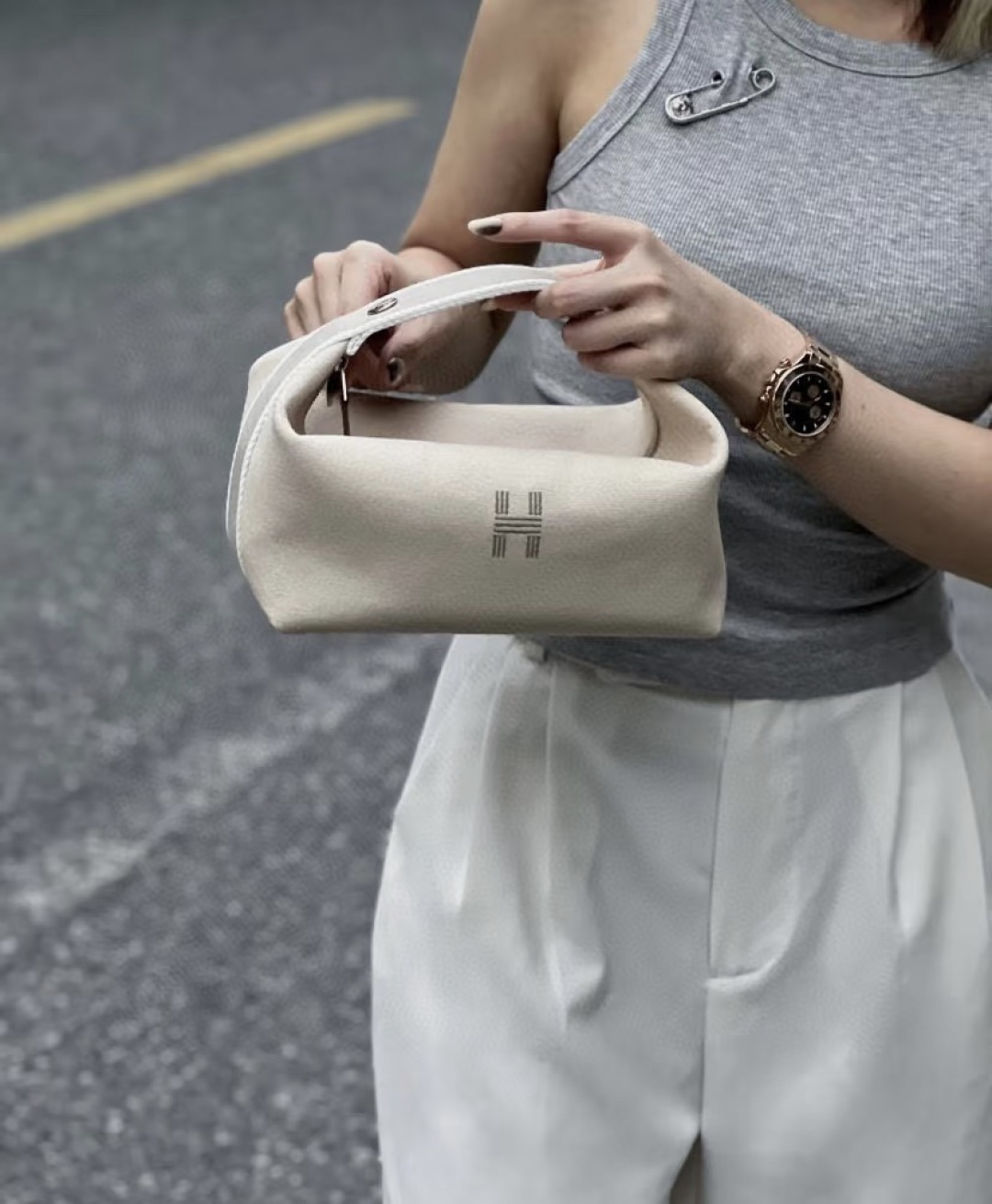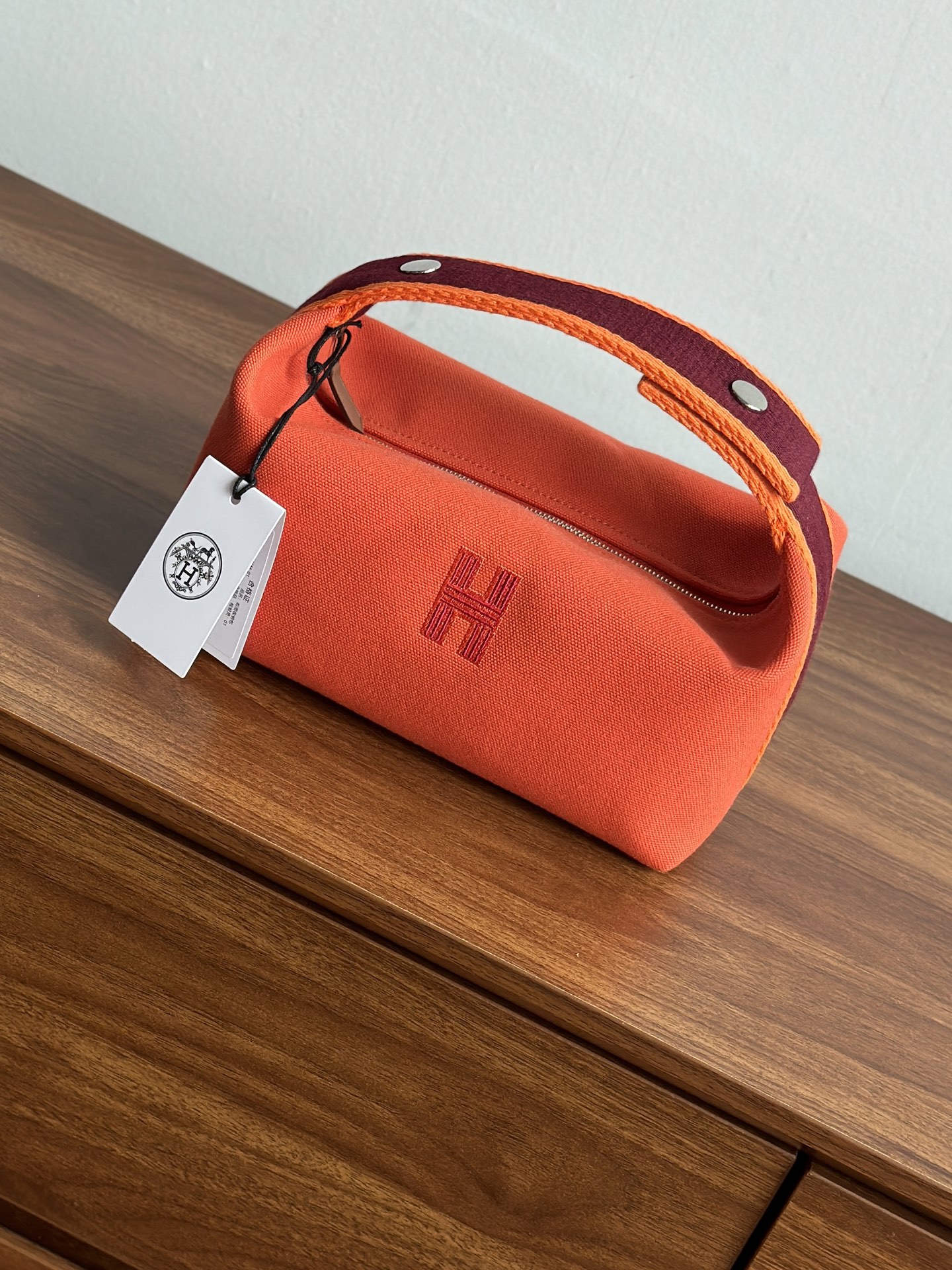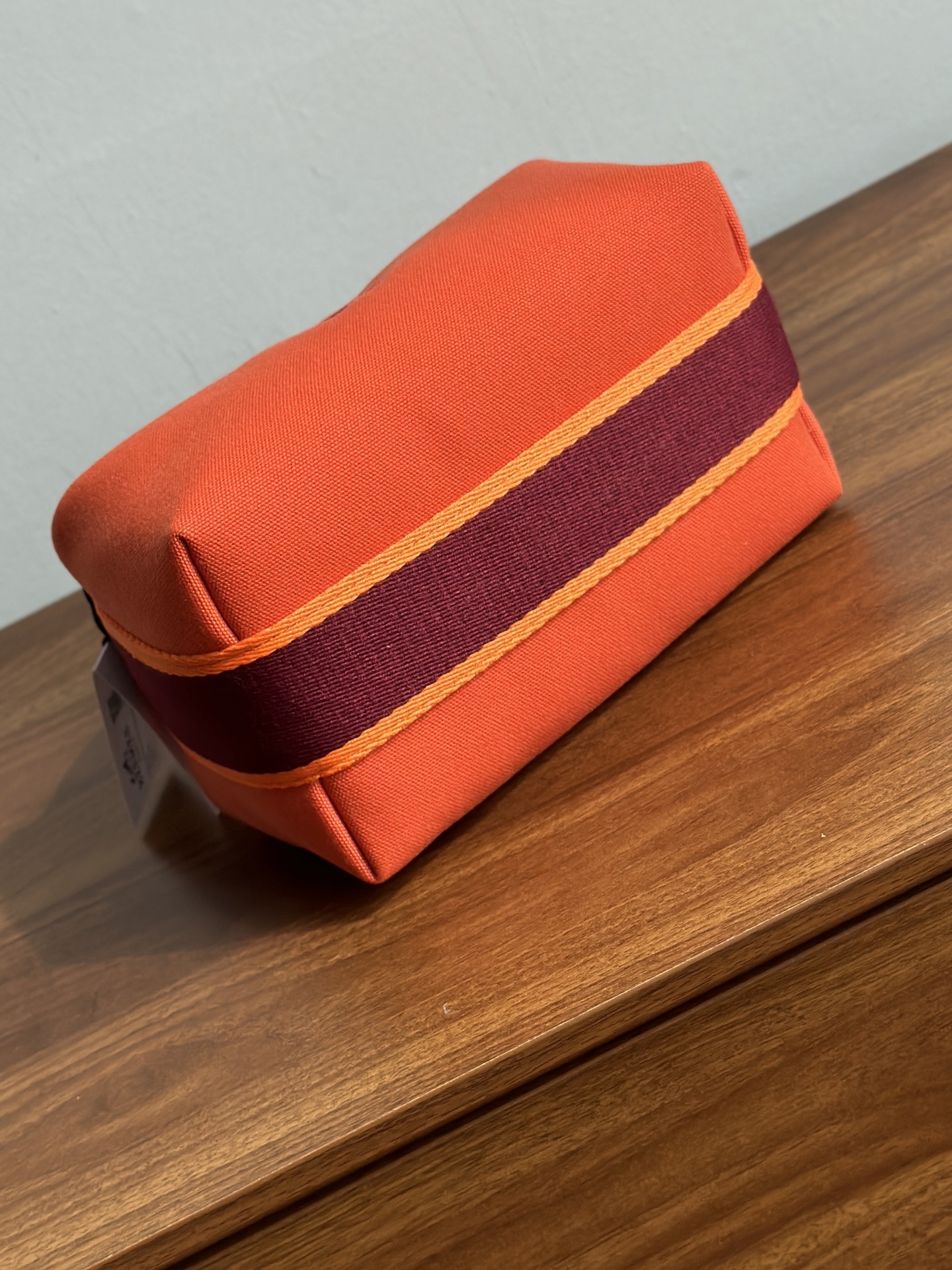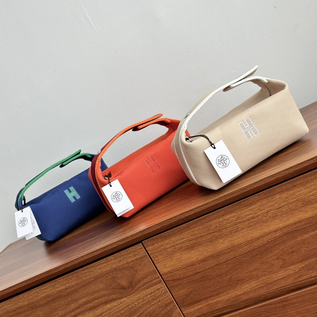 这款爱马仕饭盒包也叫洗漱包 日本进口H Plume帆布 低调简约 包身整体是纯色或简单的条纹 上面印有小小的“H”字母图案,整体风格偏向现代、休闲和“老钱风”它没有大面积的标志性 logo!更显克制和高级!