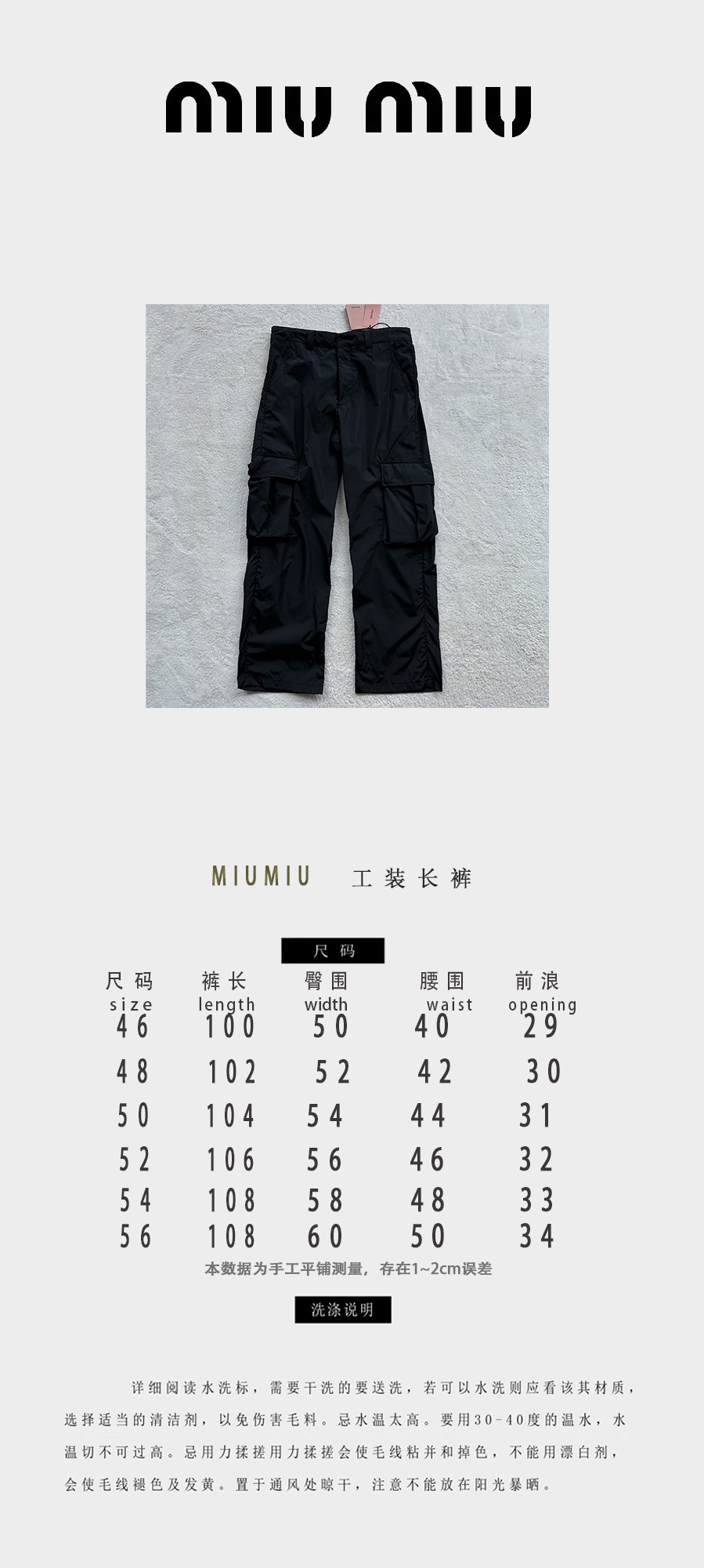 MIU家 新款 科技织物工厂长裤(JN)