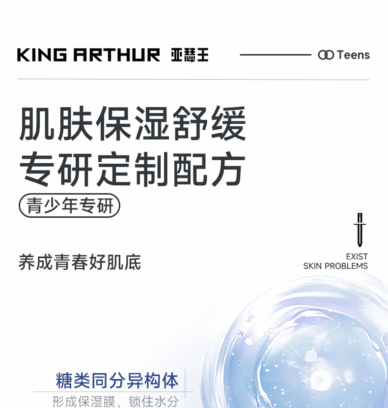 【红石榴】亚瑟王保湿舒缓光源水 光源乳 补水保湿护肤品青少年专研