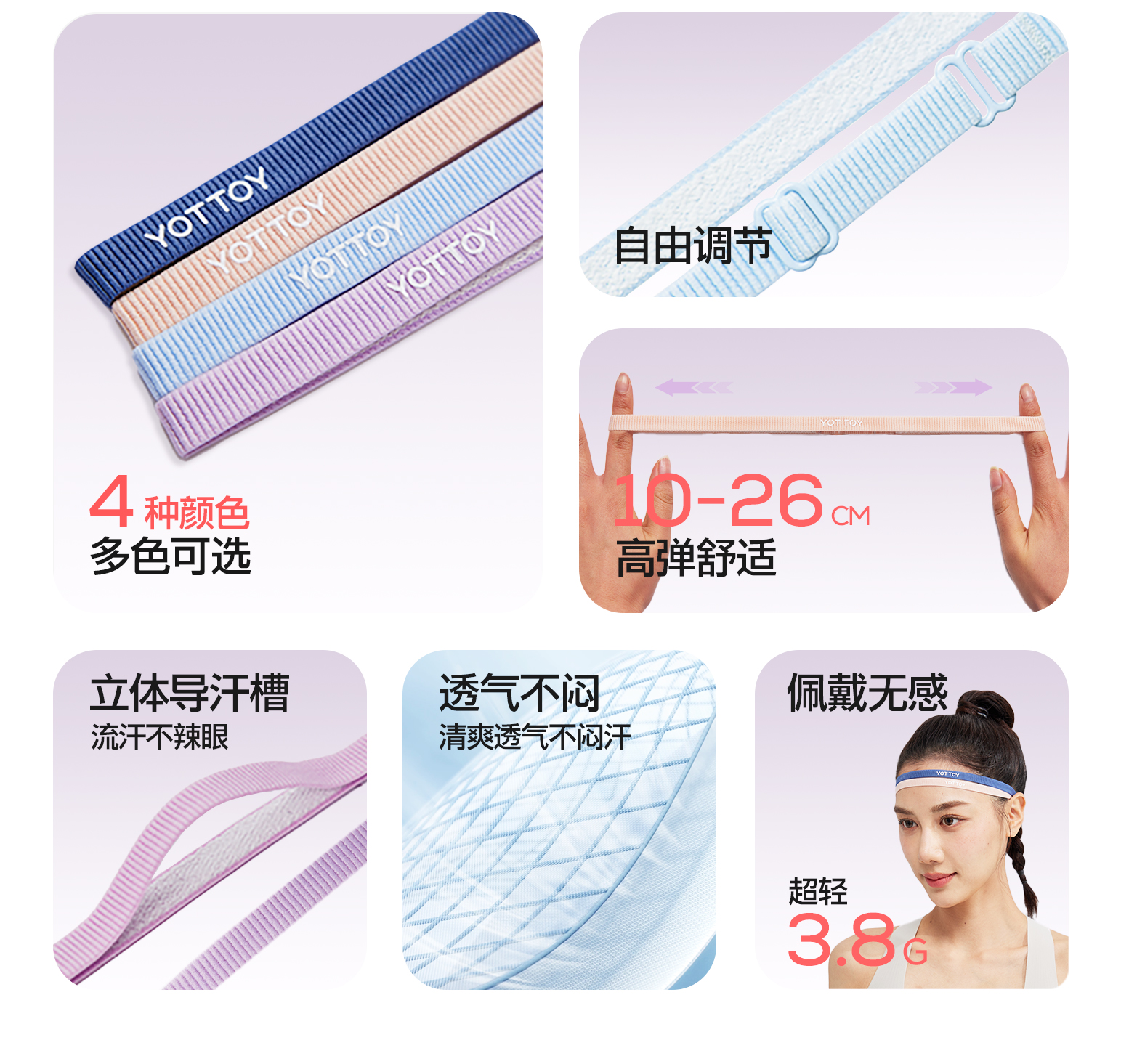 止汗带【YOTTOY】运动发带女止汗带专业健身篮球跑步瑜伽羽毛球防滑吸汗导汗带头带