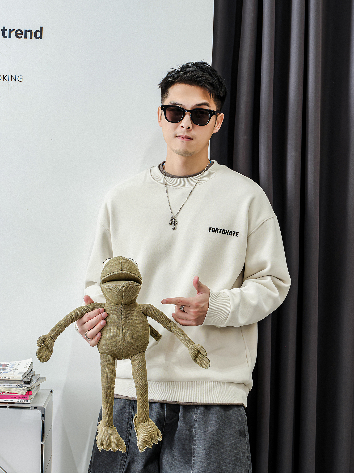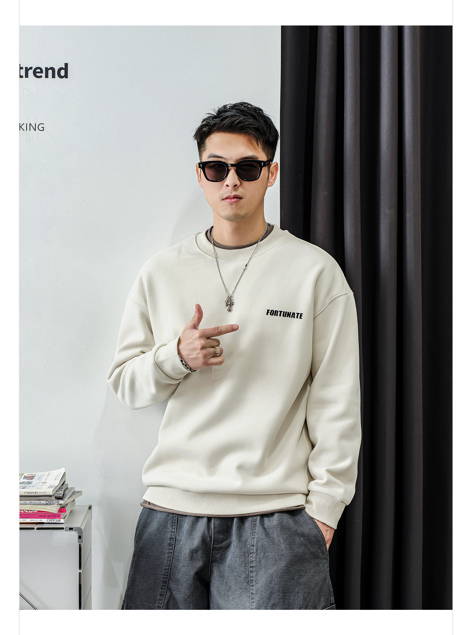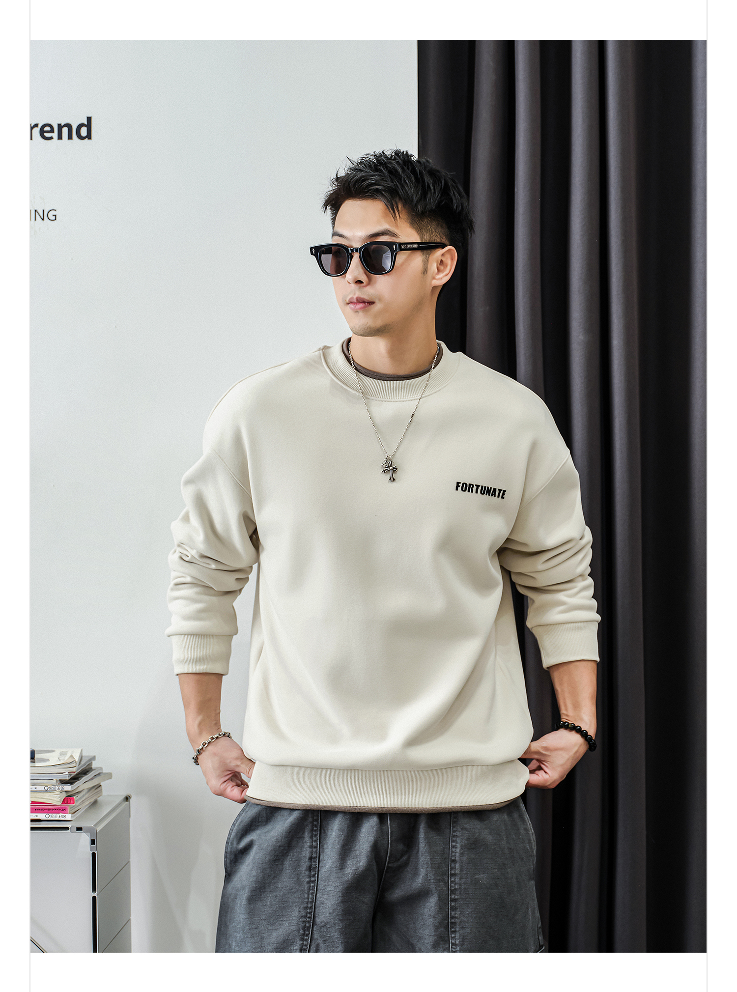 徐太浪【螺纹圆领 字母印花】加绒卫衣男秋冬款休闲内搭打底上衣