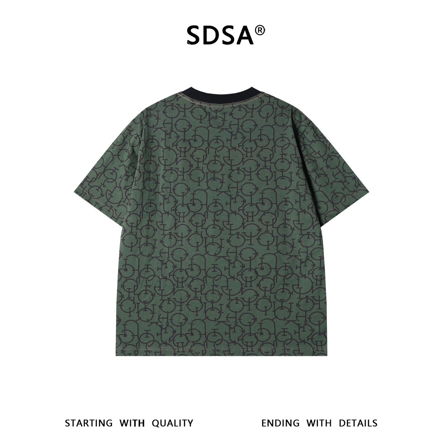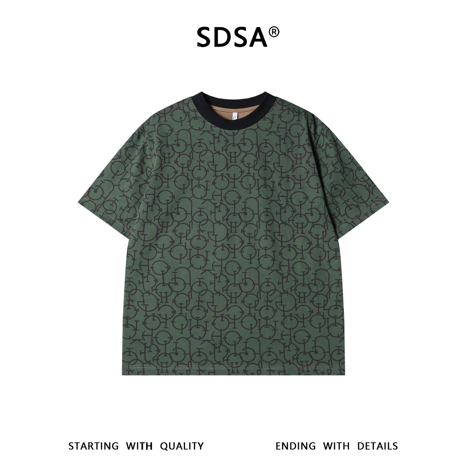 SDSA男装2026新款高贵轻奢美式复古几何链条满印短袖T恤百搭时尚