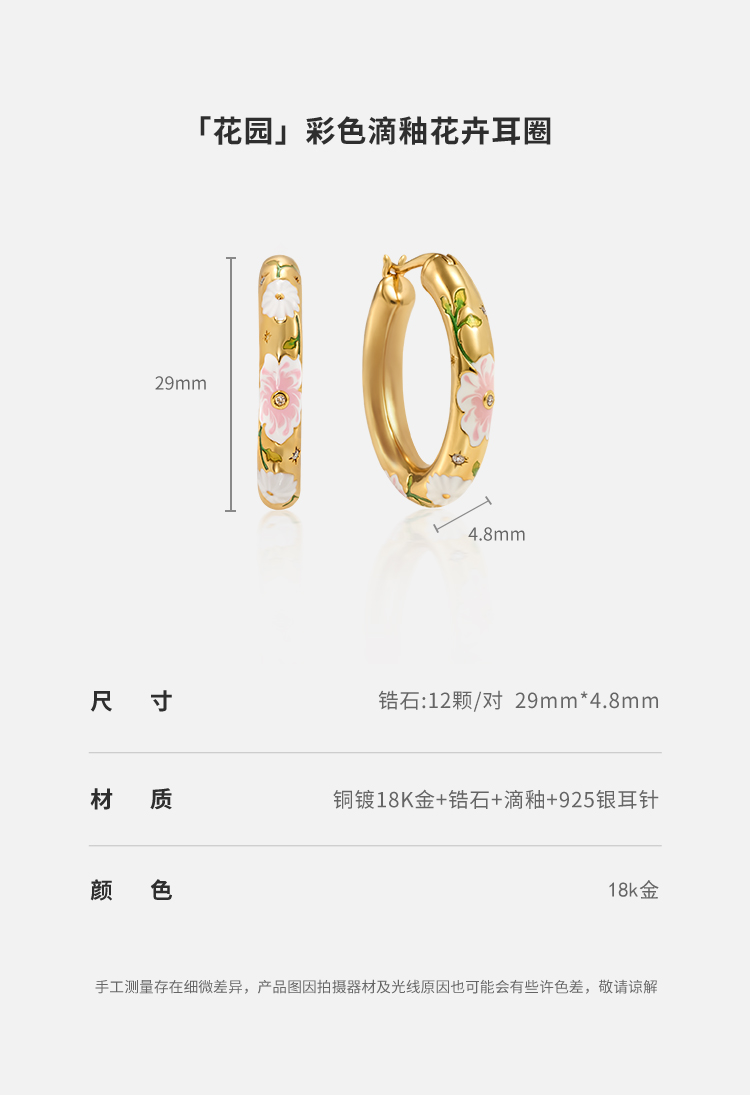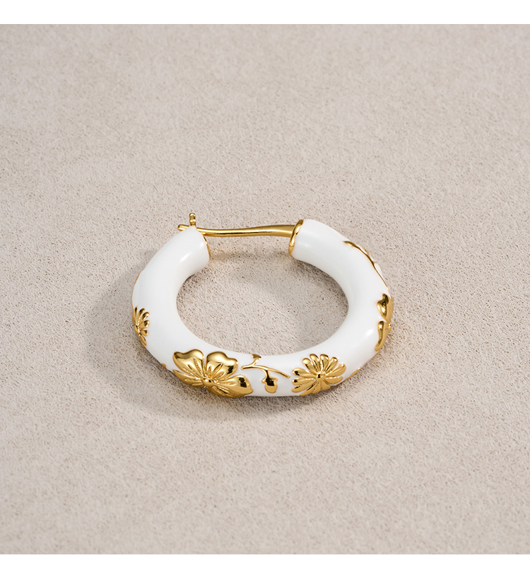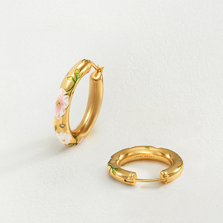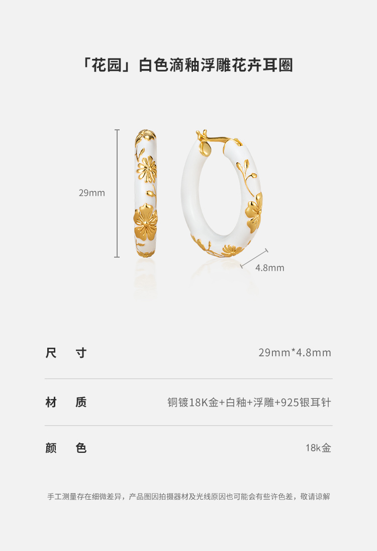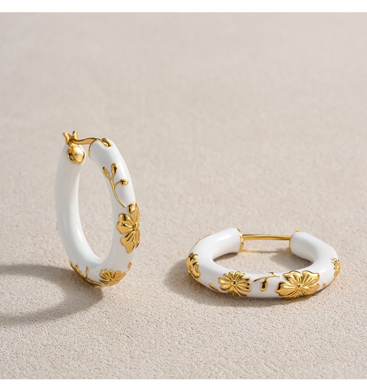 ANGEL ISLAND 「花园」彩色白色滴釉浮雕花卉耳圈气质古典耳环