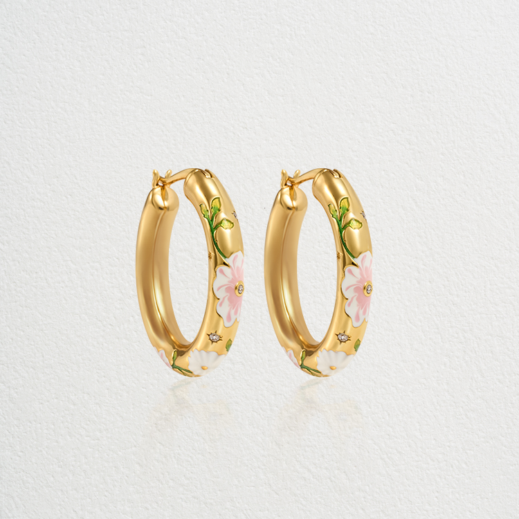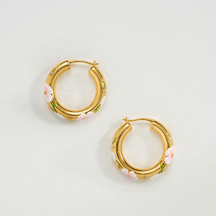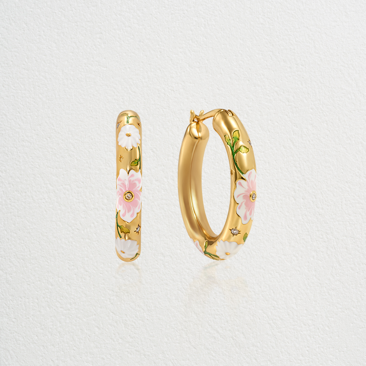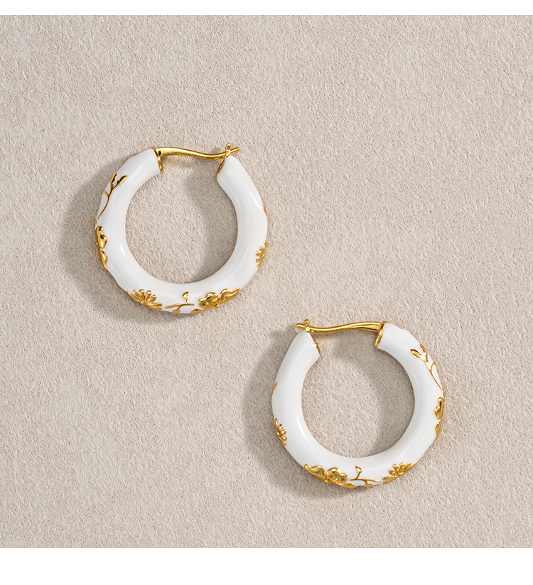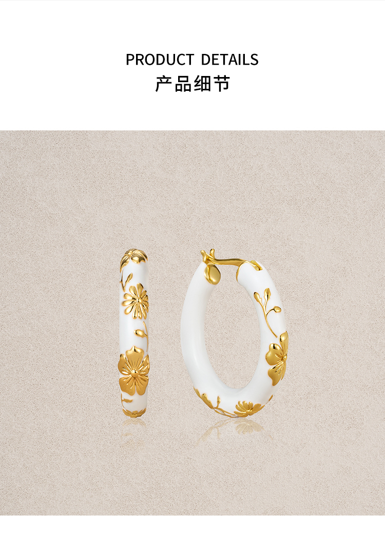 ANGEL ISLAND 「花园」彩色白色滴釉浮雕花卉耳圈气质古典耳环