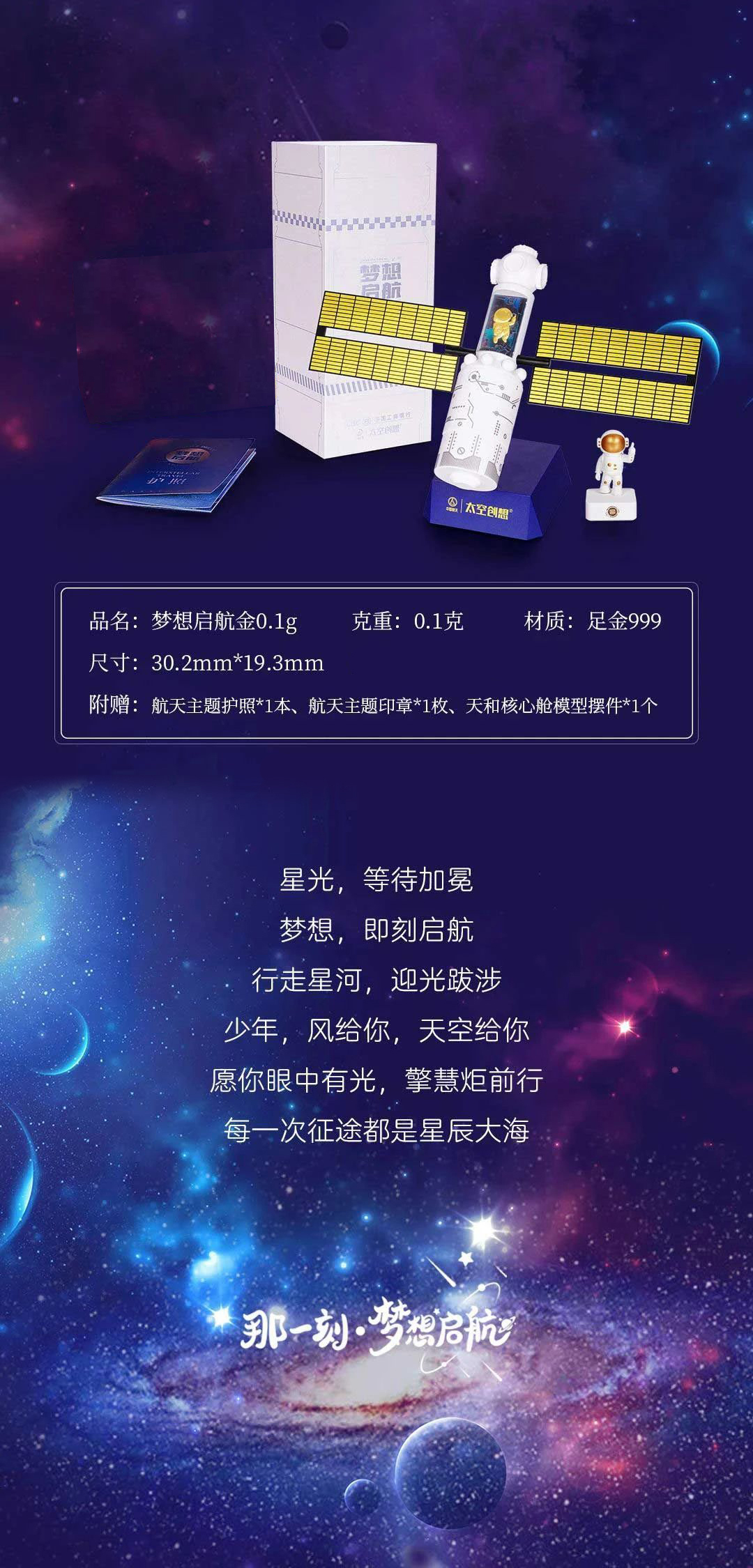 梦想启航 航天模型摆件 含足金0.1克