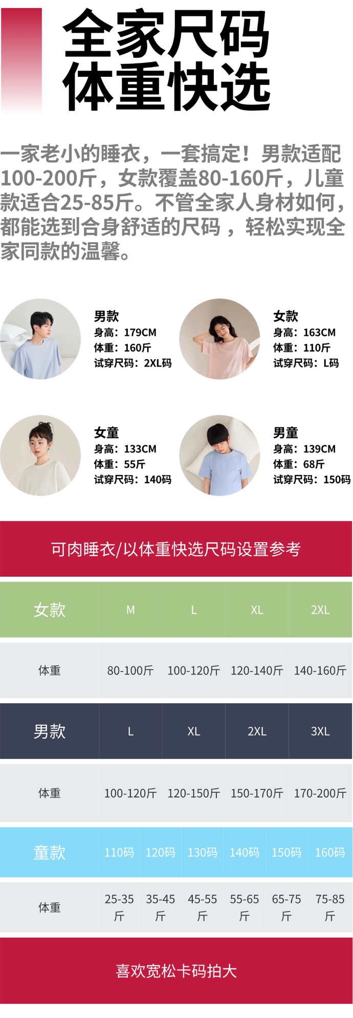 一家老小的睡衣,一套搞定!男款适配100-200斤,女款覆盖80-160斤,儿童款适合25-85斤