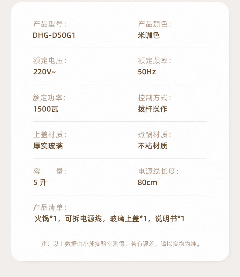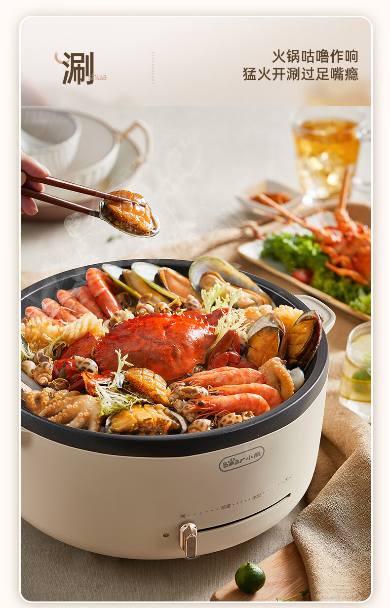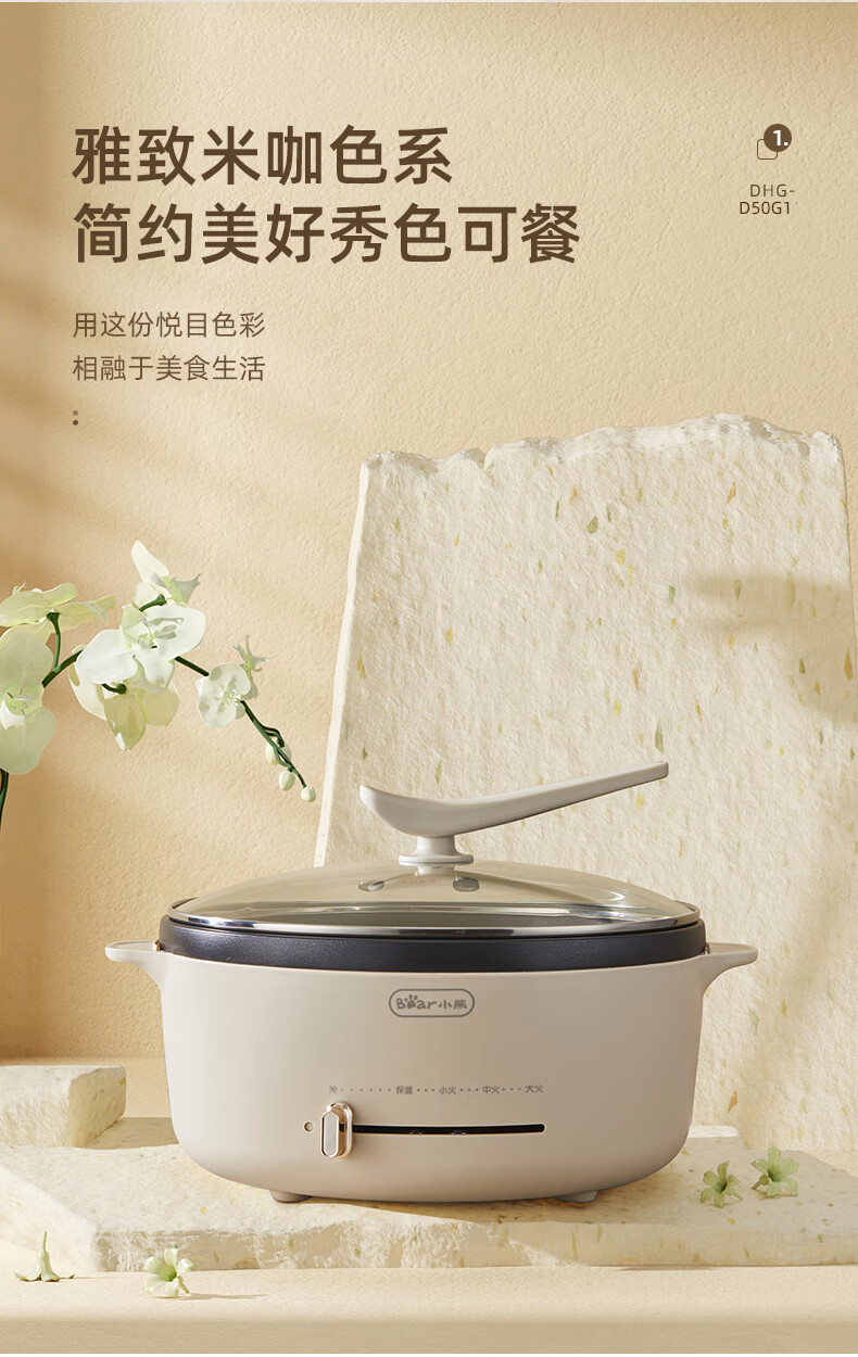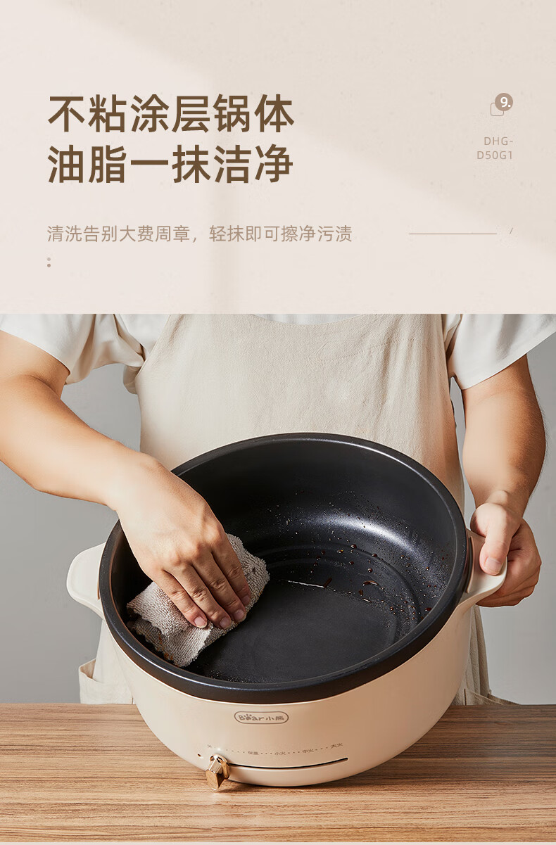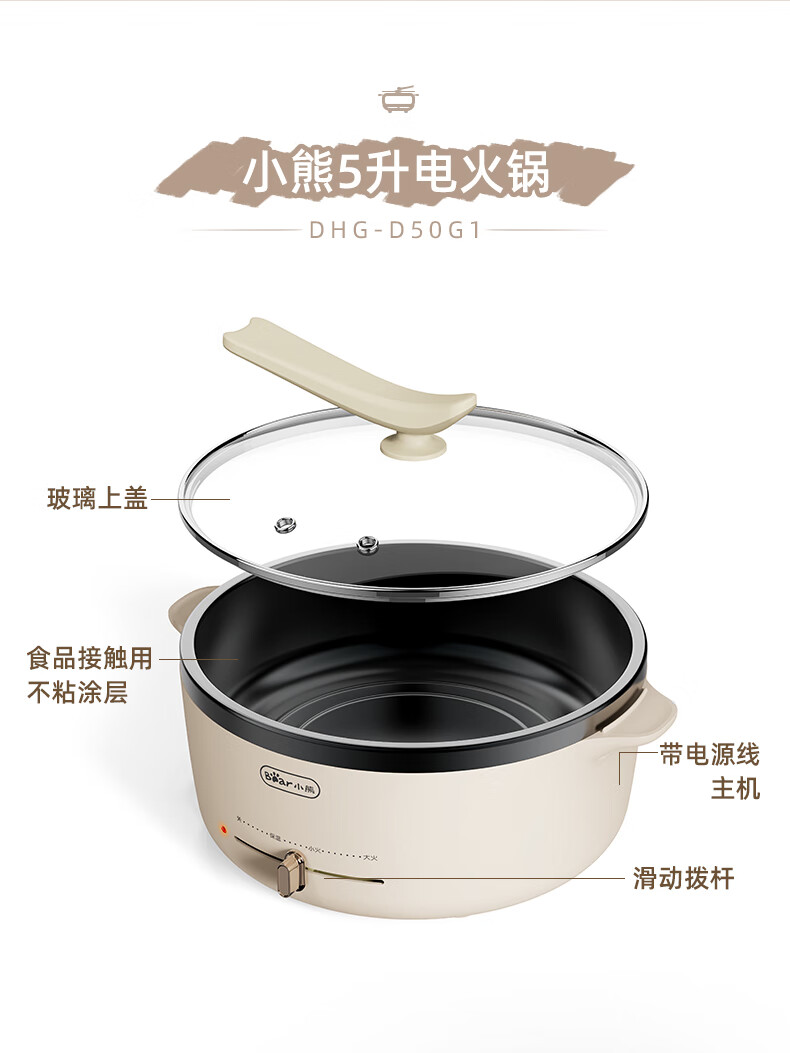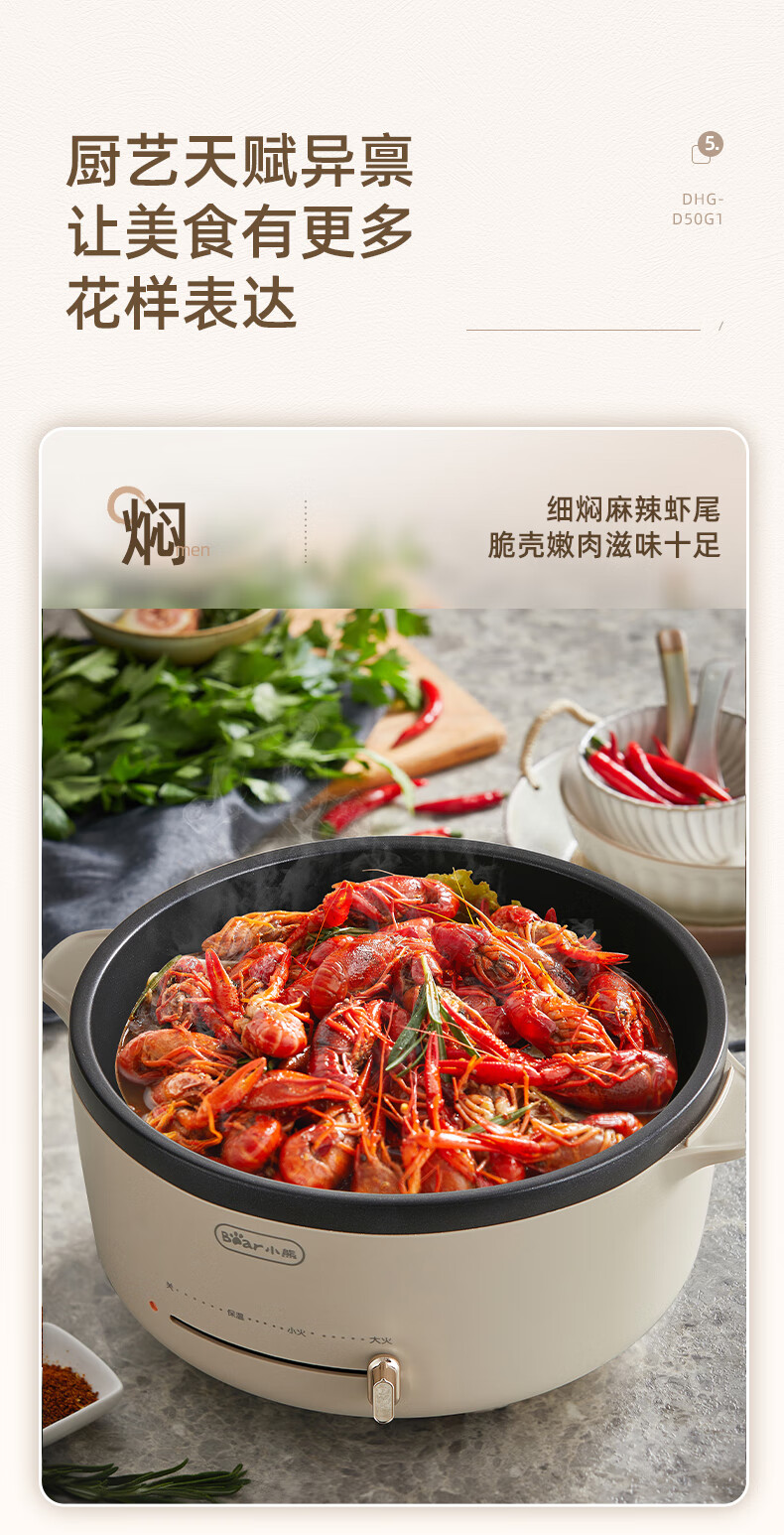 小熊(Bear) 电火锅电炒锅涮锅家用电煮锅多功能焖锅煎锅 大容量大功率电热锅【ZMD安心系列】 【5升拔杆调温】DHG-D50G1
