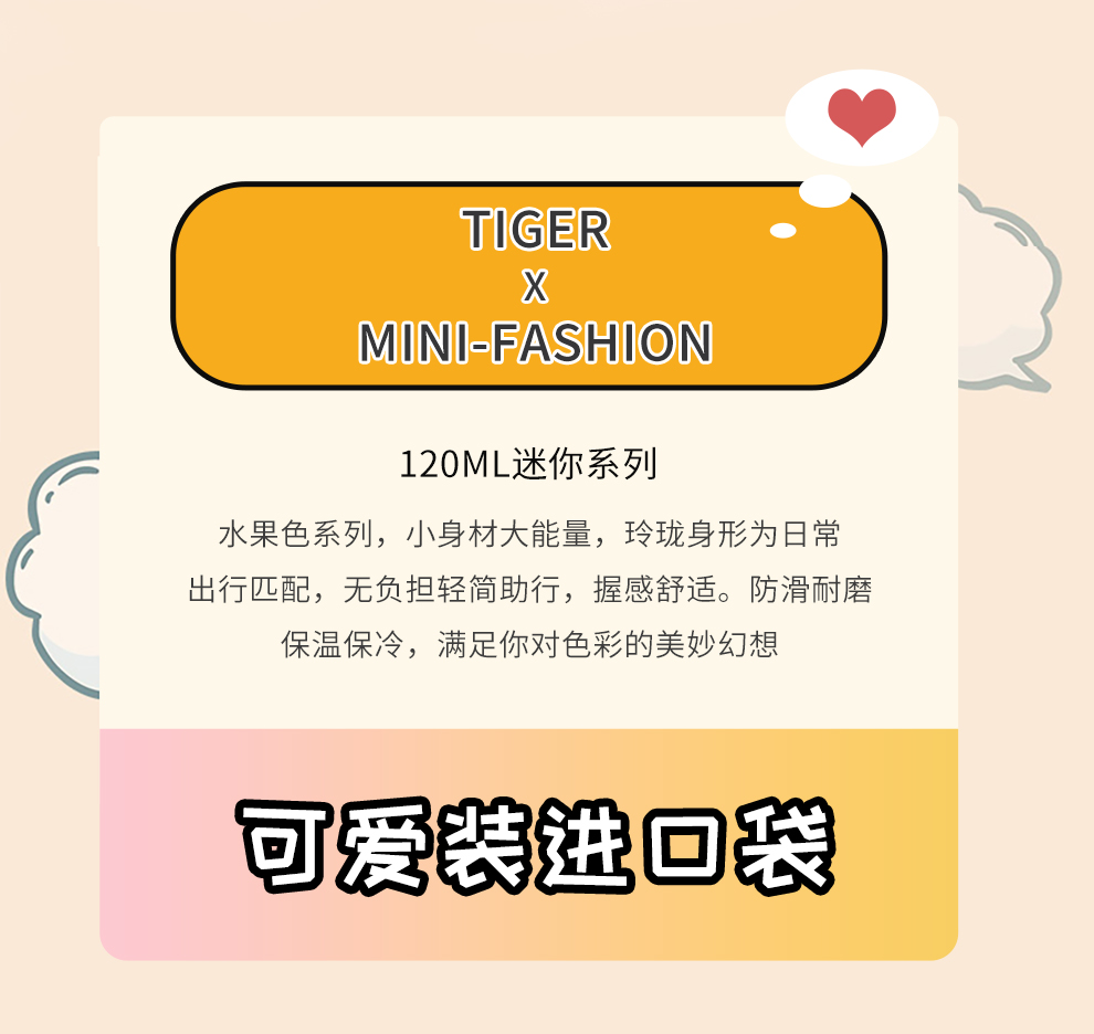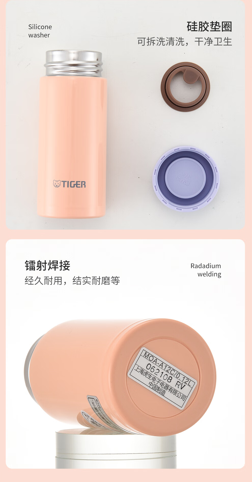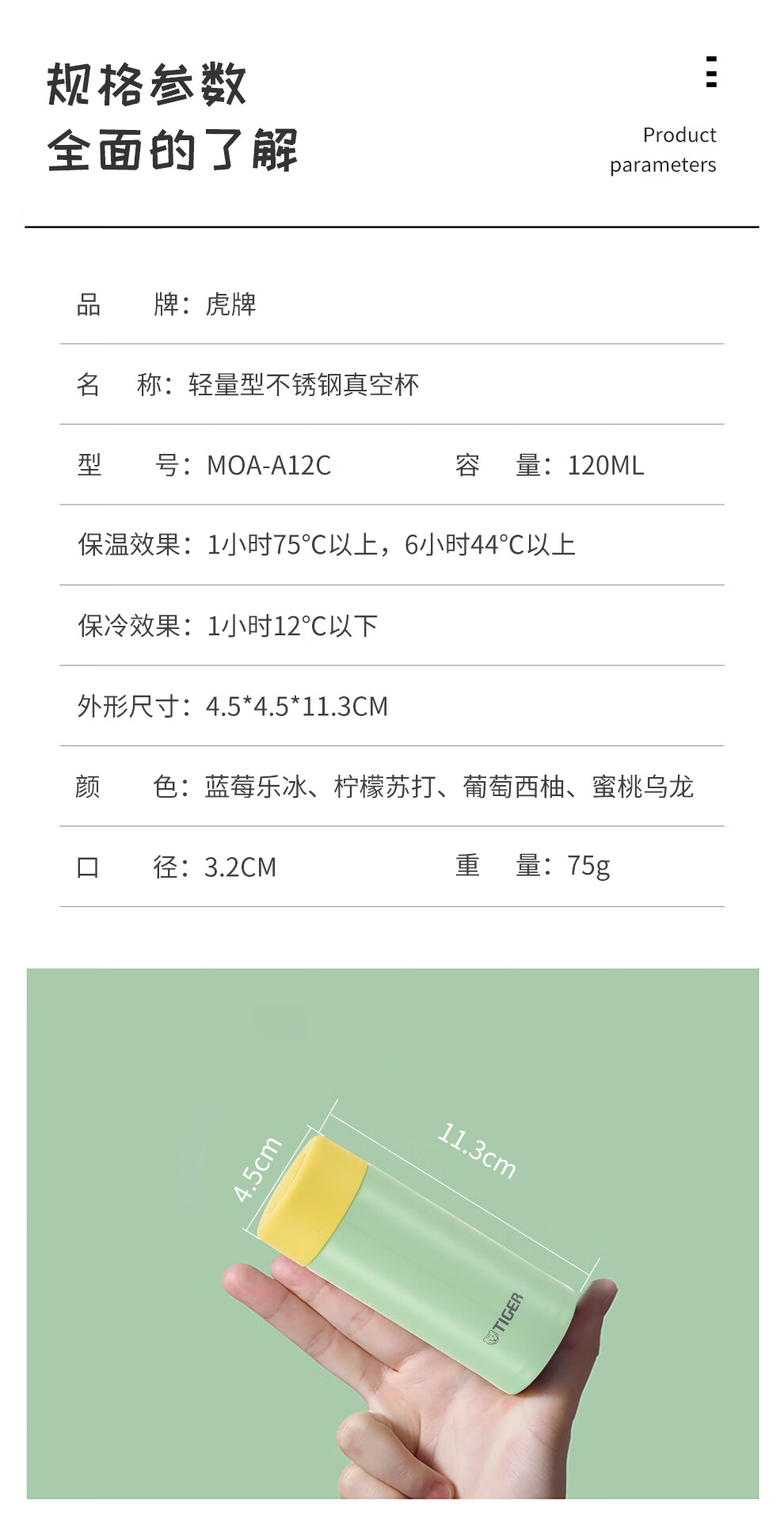 虎牌(TIGER) 保温杯真空保冷杯办公男女直饮杯保温杯水杯迷你口袋杯MOA-A12C 葡萄西柚-120ML