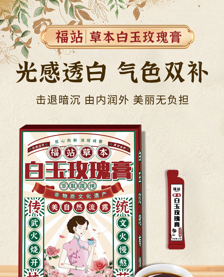 福站白玉玫瑰膏草本白玉膏正品焕亮全身肌肤传统养生古法熬制袋装
