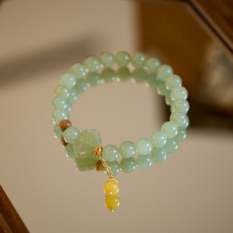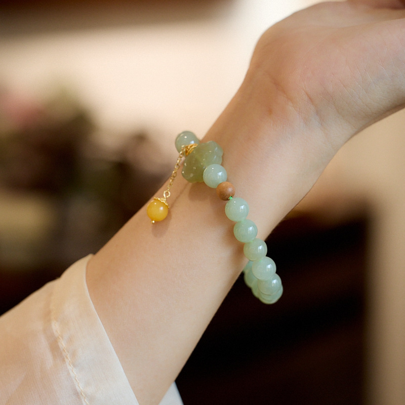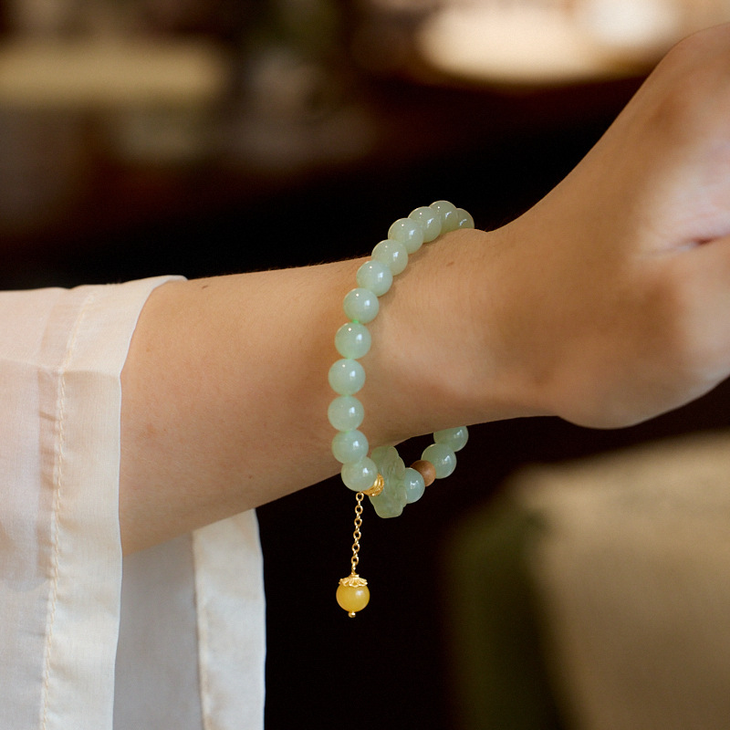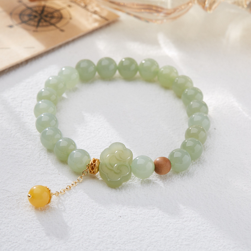 【普陀山】8MM和田玉 笑脸如意 蜜蜡流苏手链