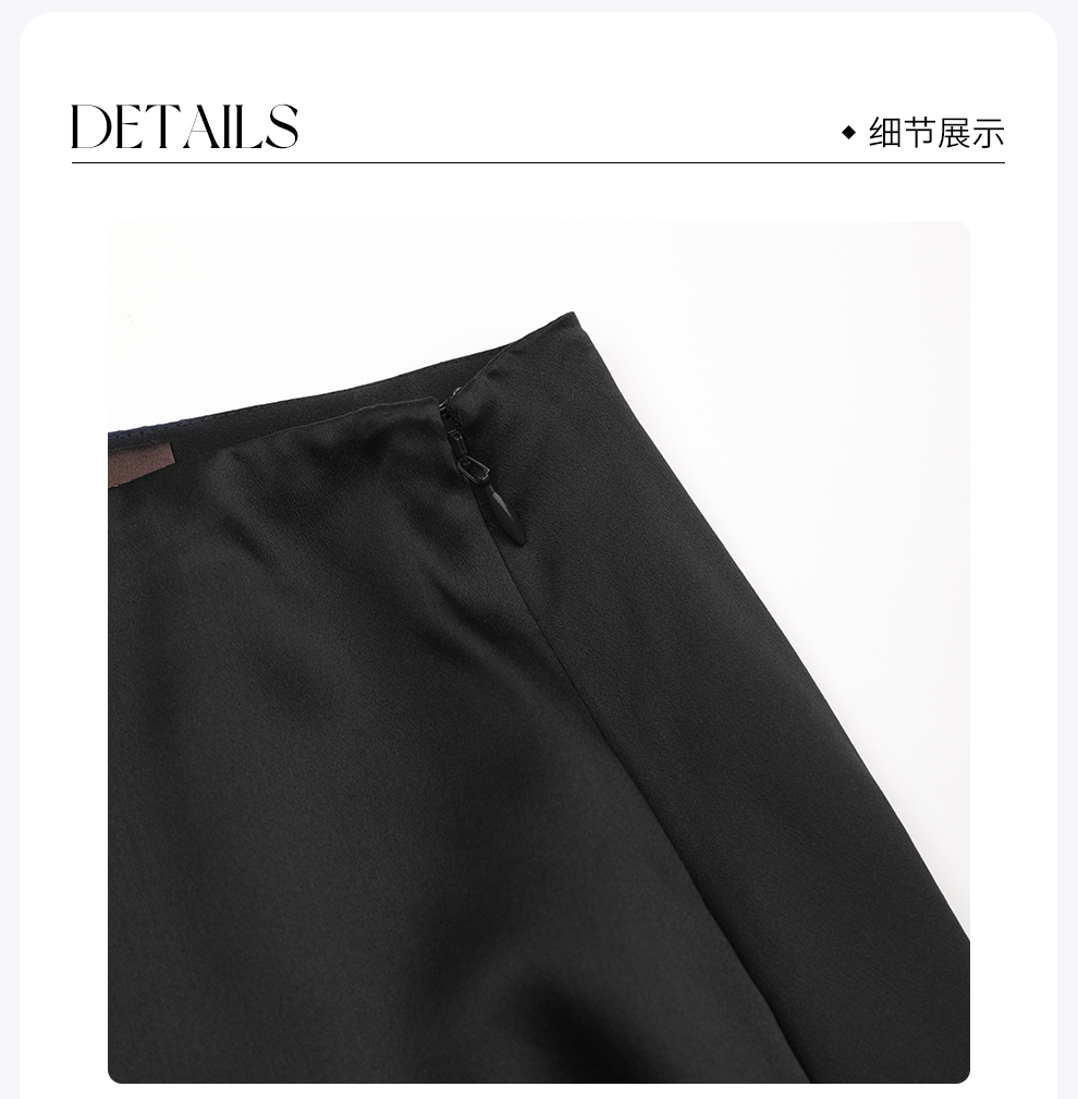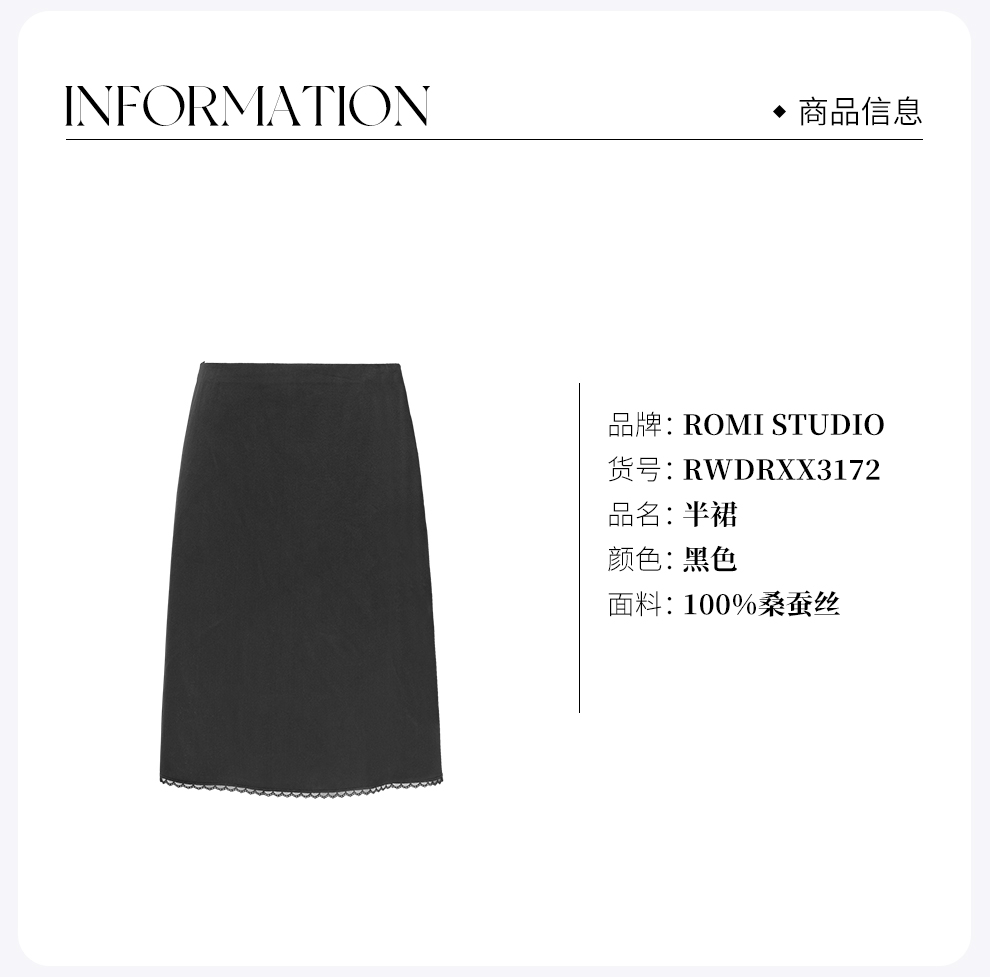 ROMI STUDIO100%桑蚕丝素绉缎蕾丝花边微A半身裙RWDRXX3172
