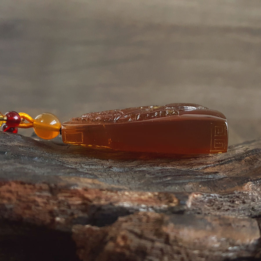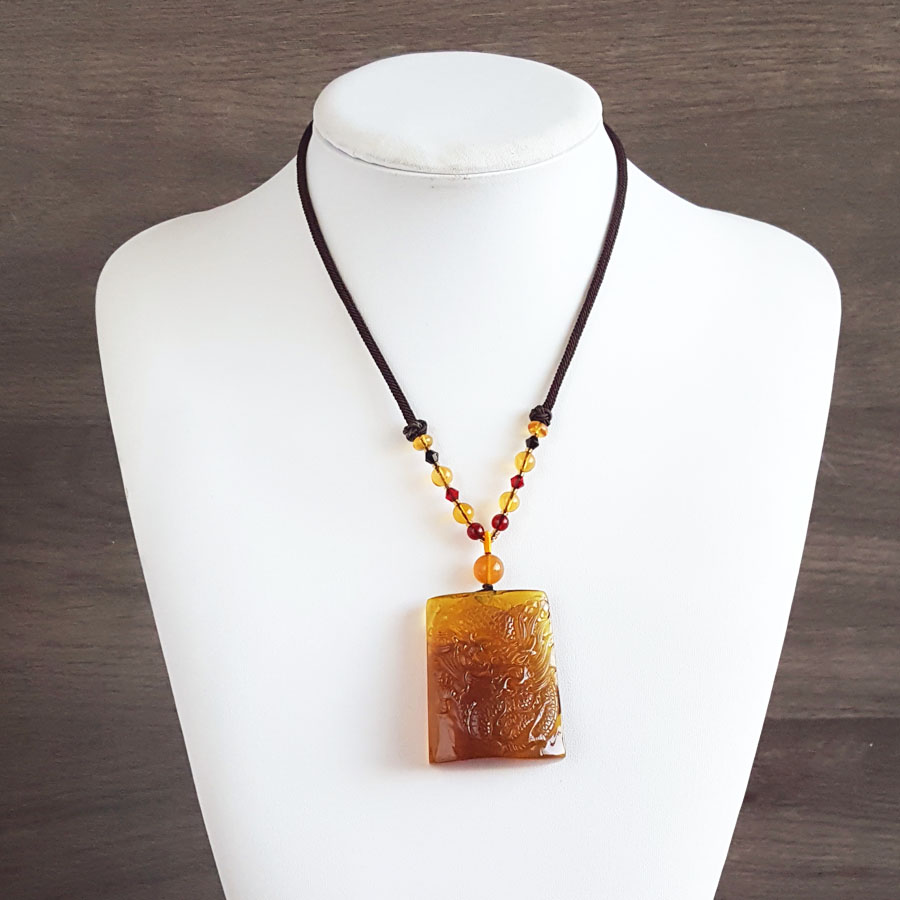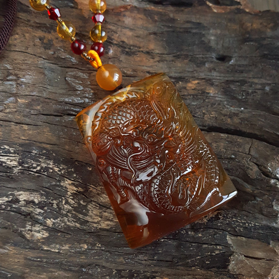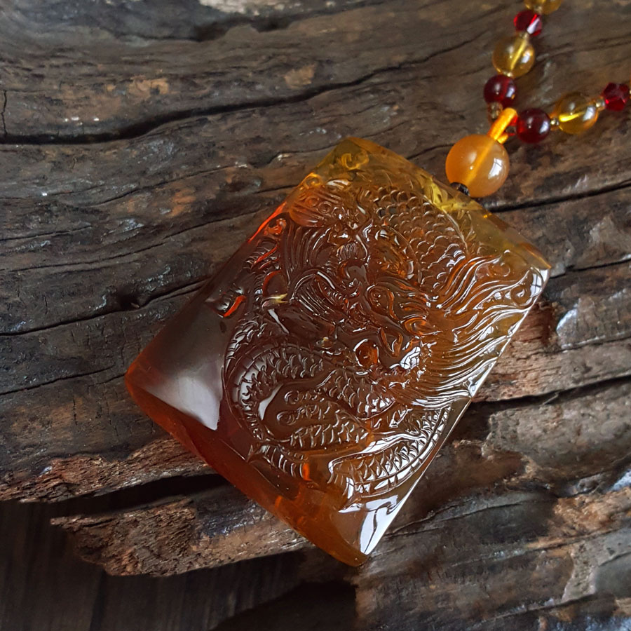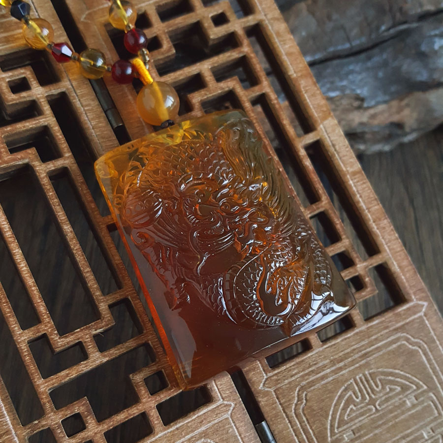 名称 | 天然无杂裂雕龙形平安无事牌(生意兴隆、财源滚滚)墨西哥蓝珀吊坠项链 |