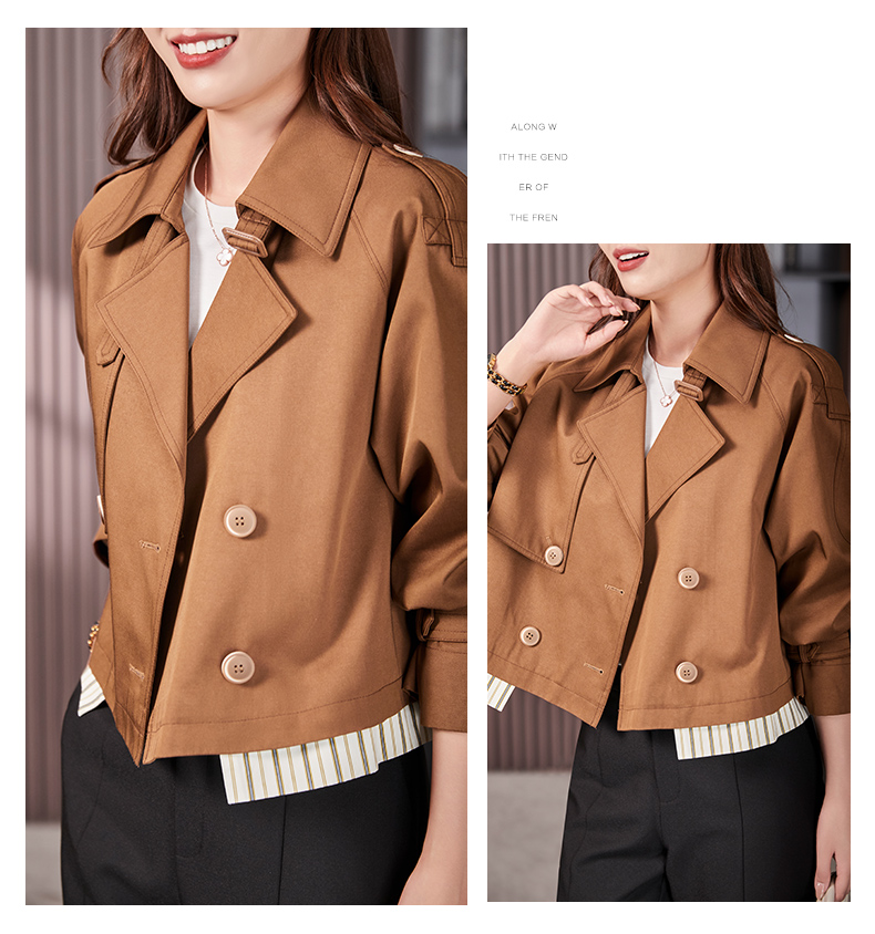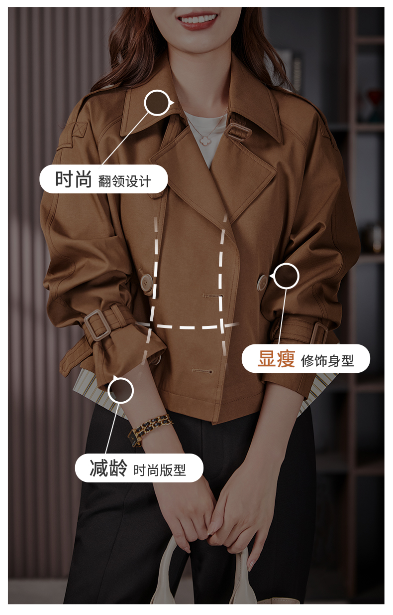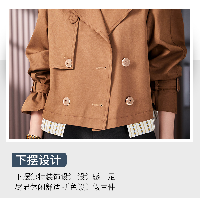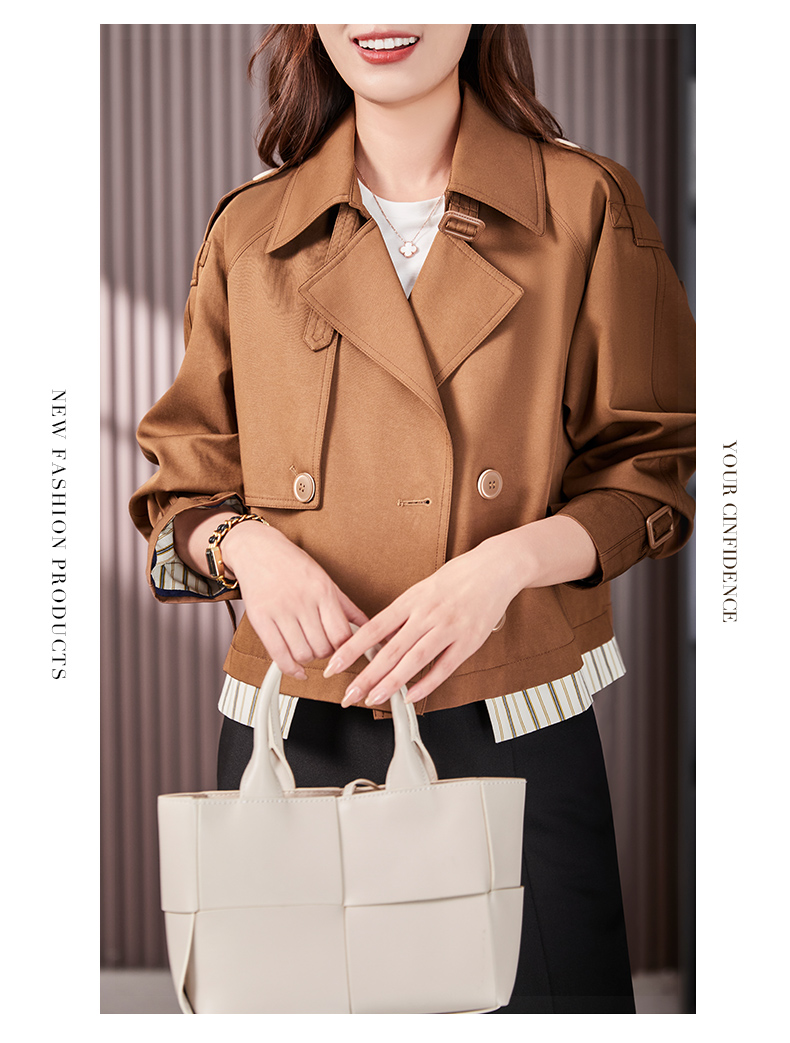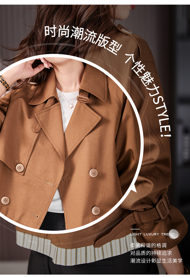 90226原形英伦风设计感假两件拼接休闲短风衣女2024秋季新款上衣短外套
