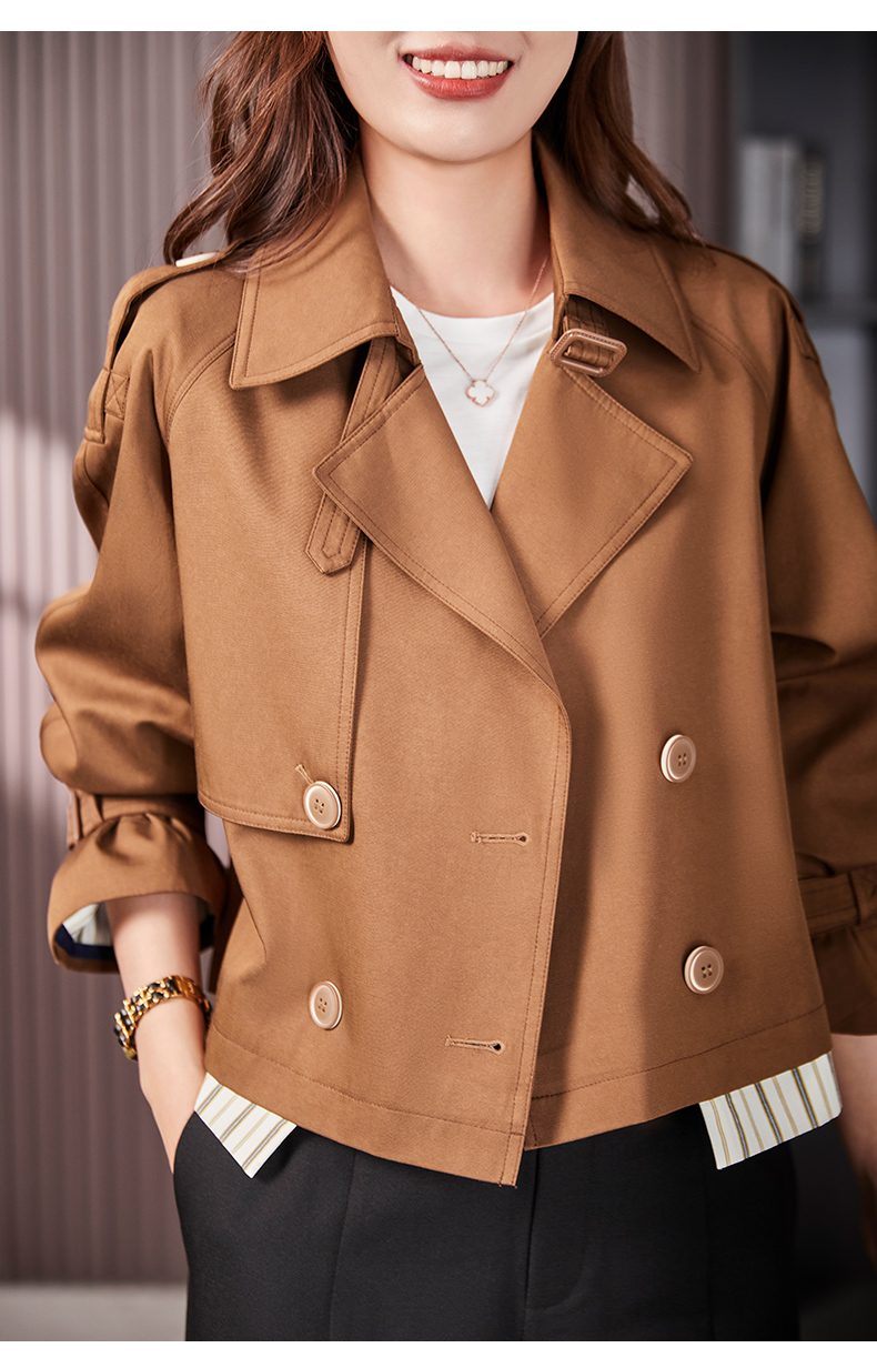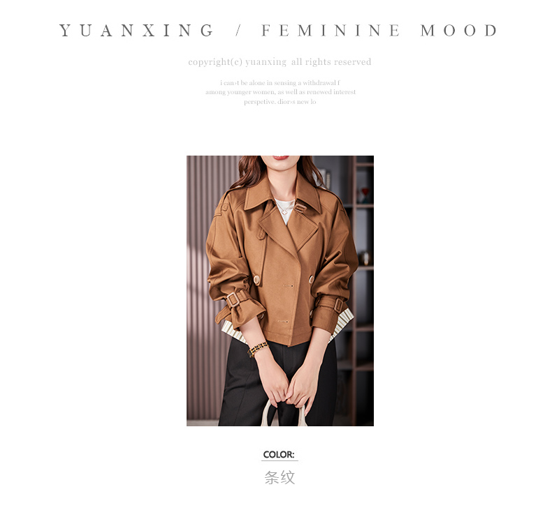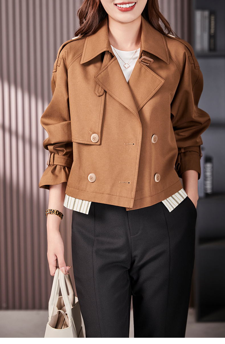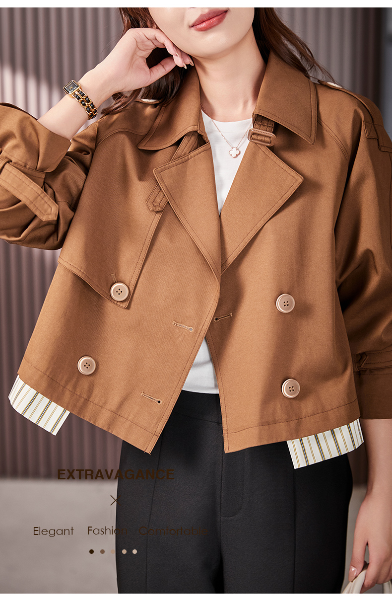 90226原形英伦风设计感假两件拼接休闲短风衣女2024秋季新款上衣短外套
