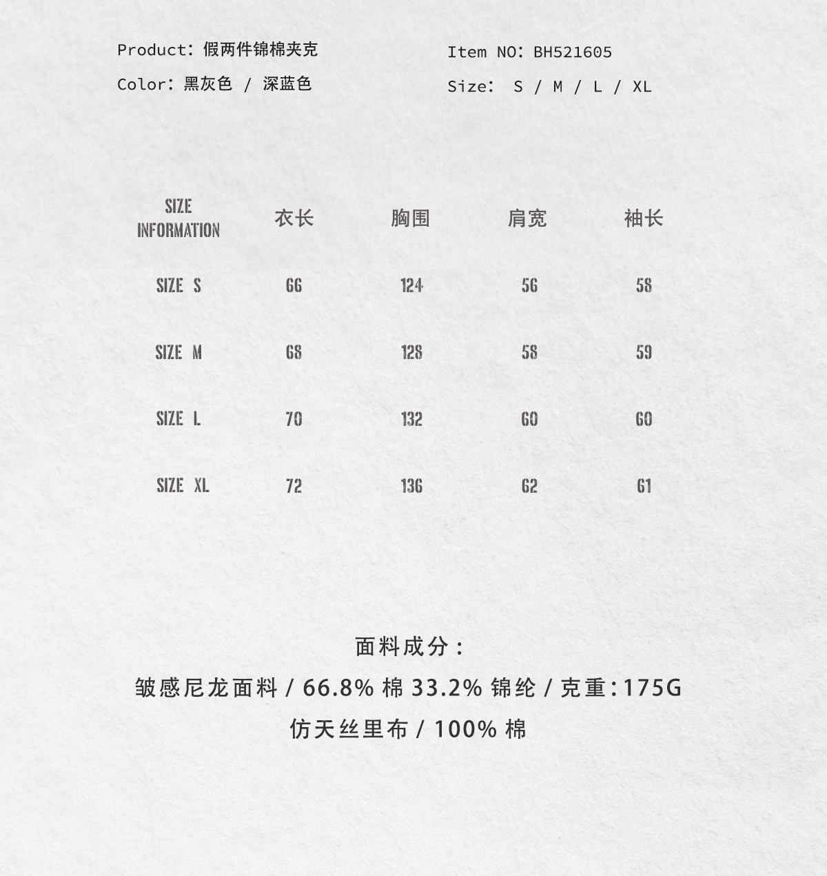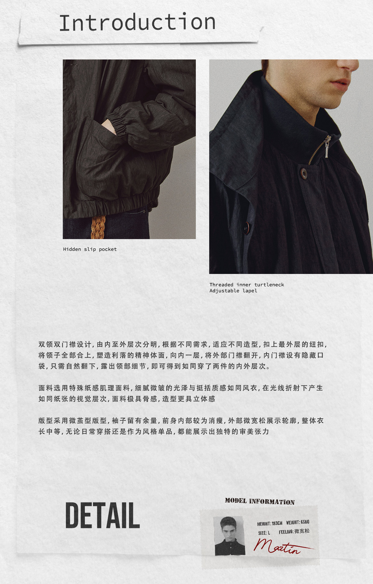 714street高端线 BEHALF 日本和纸感 LM风双领层次3M新雪丽夹克